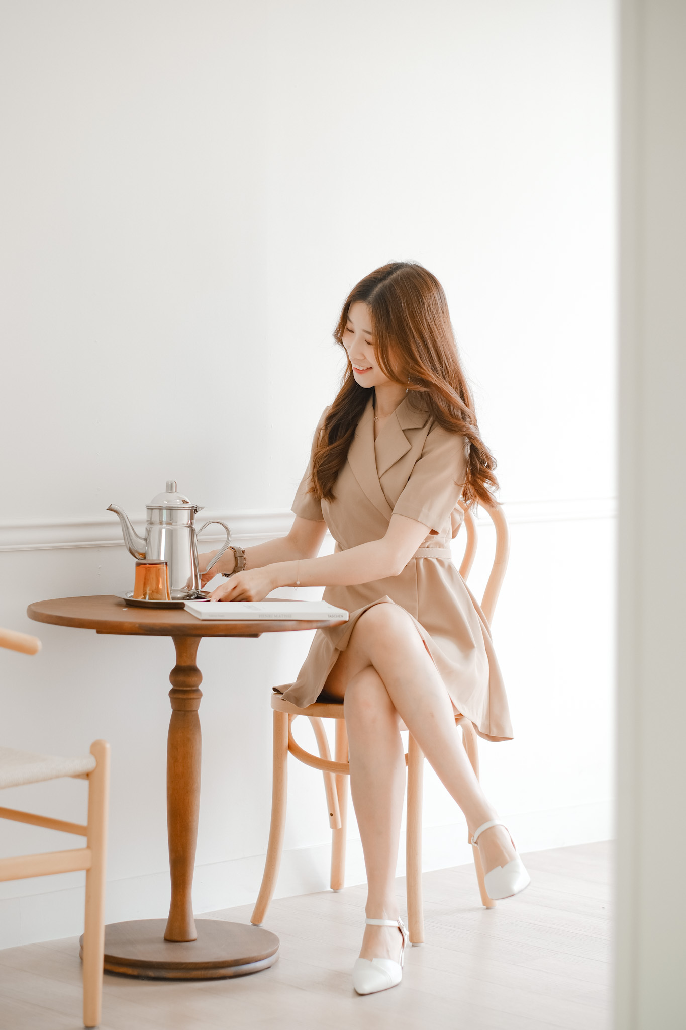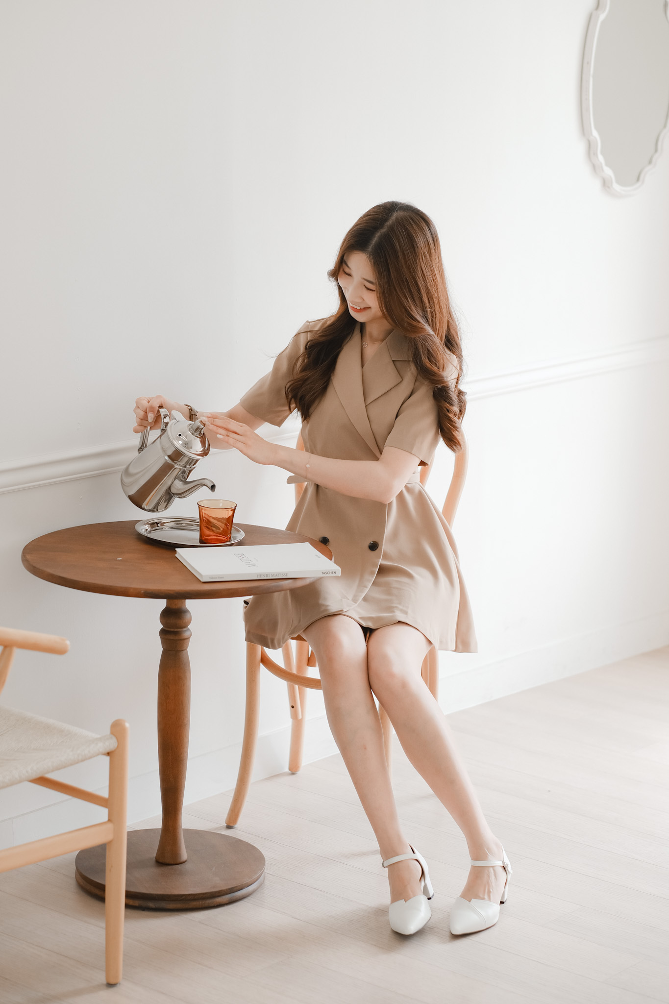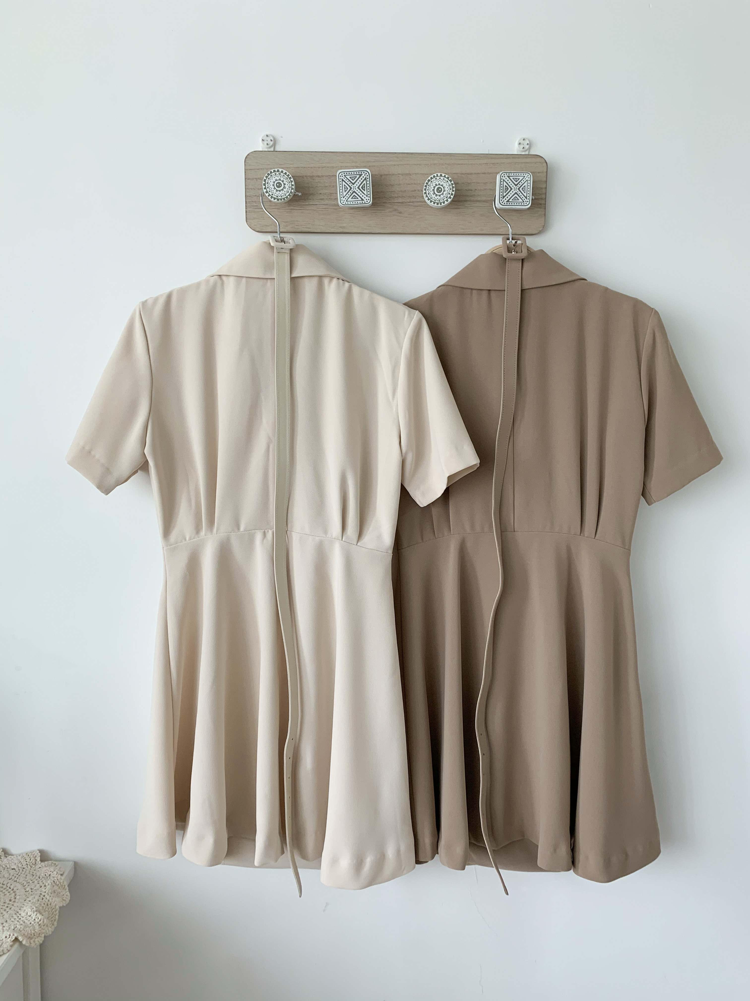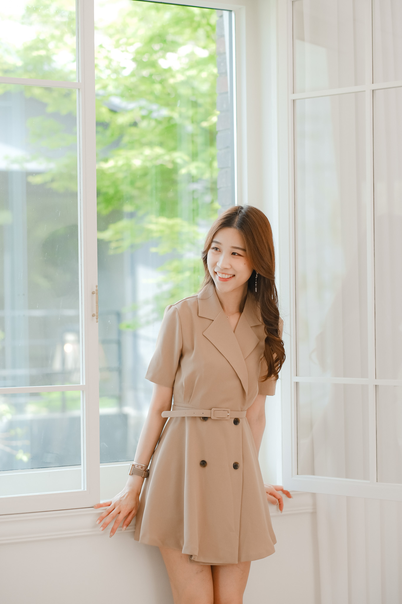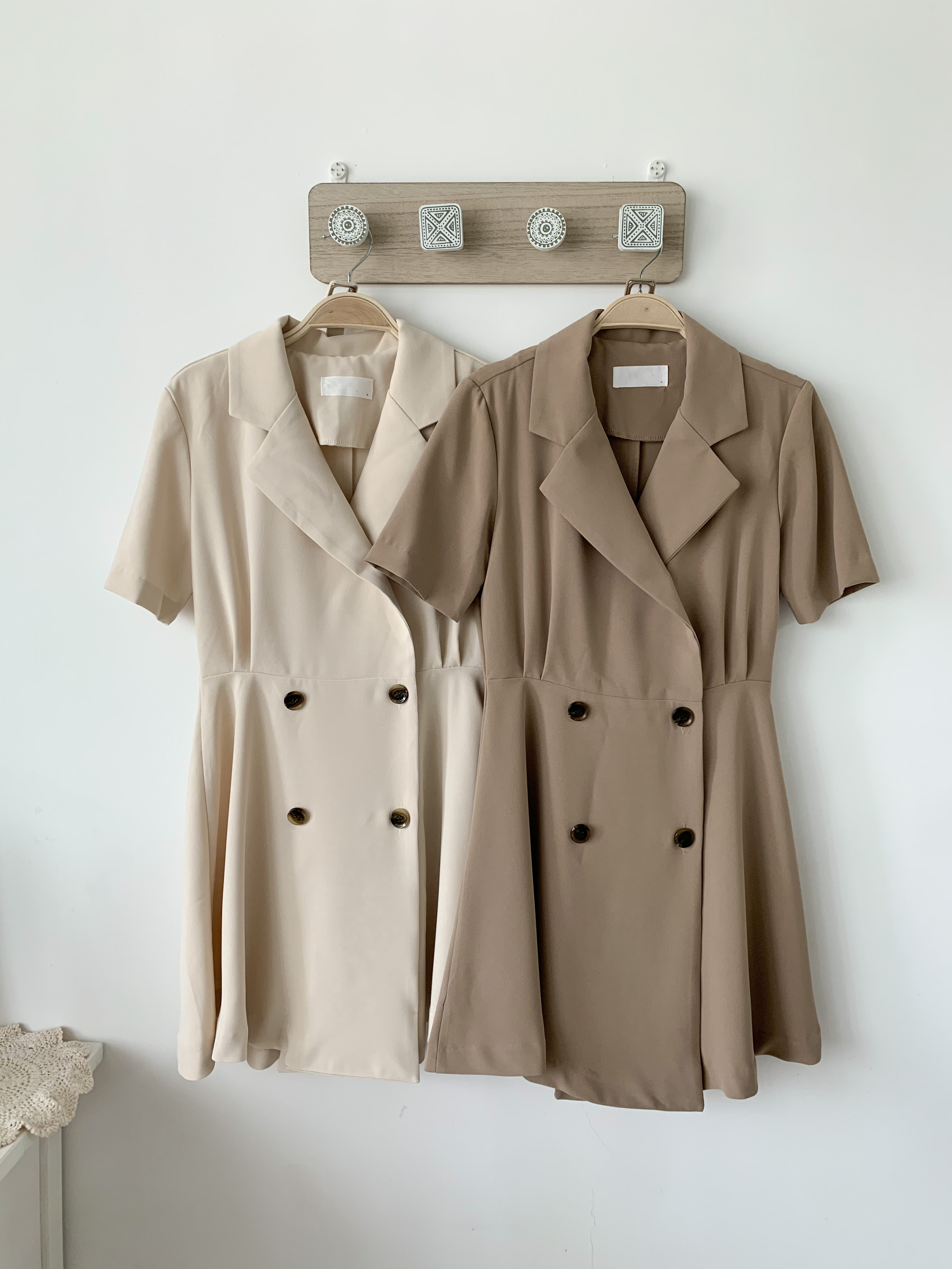 【Jeviss獨家發售】西裝領雙排鈕短洋裝 (淺杏/深杏) OP023