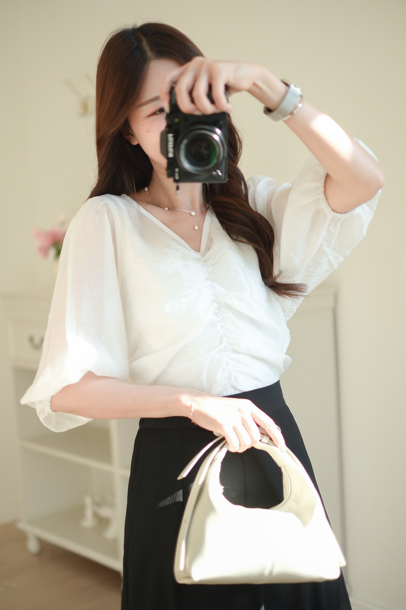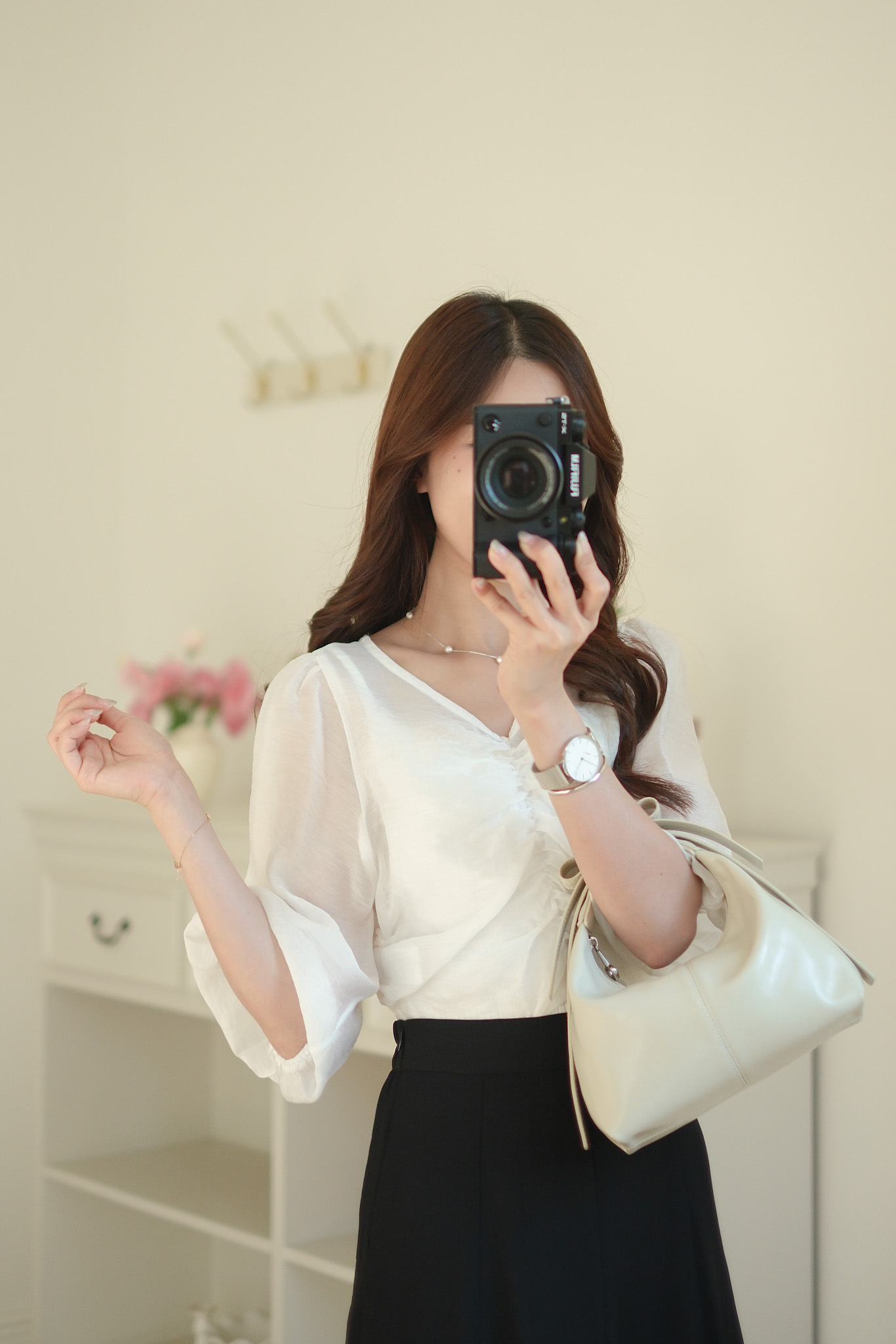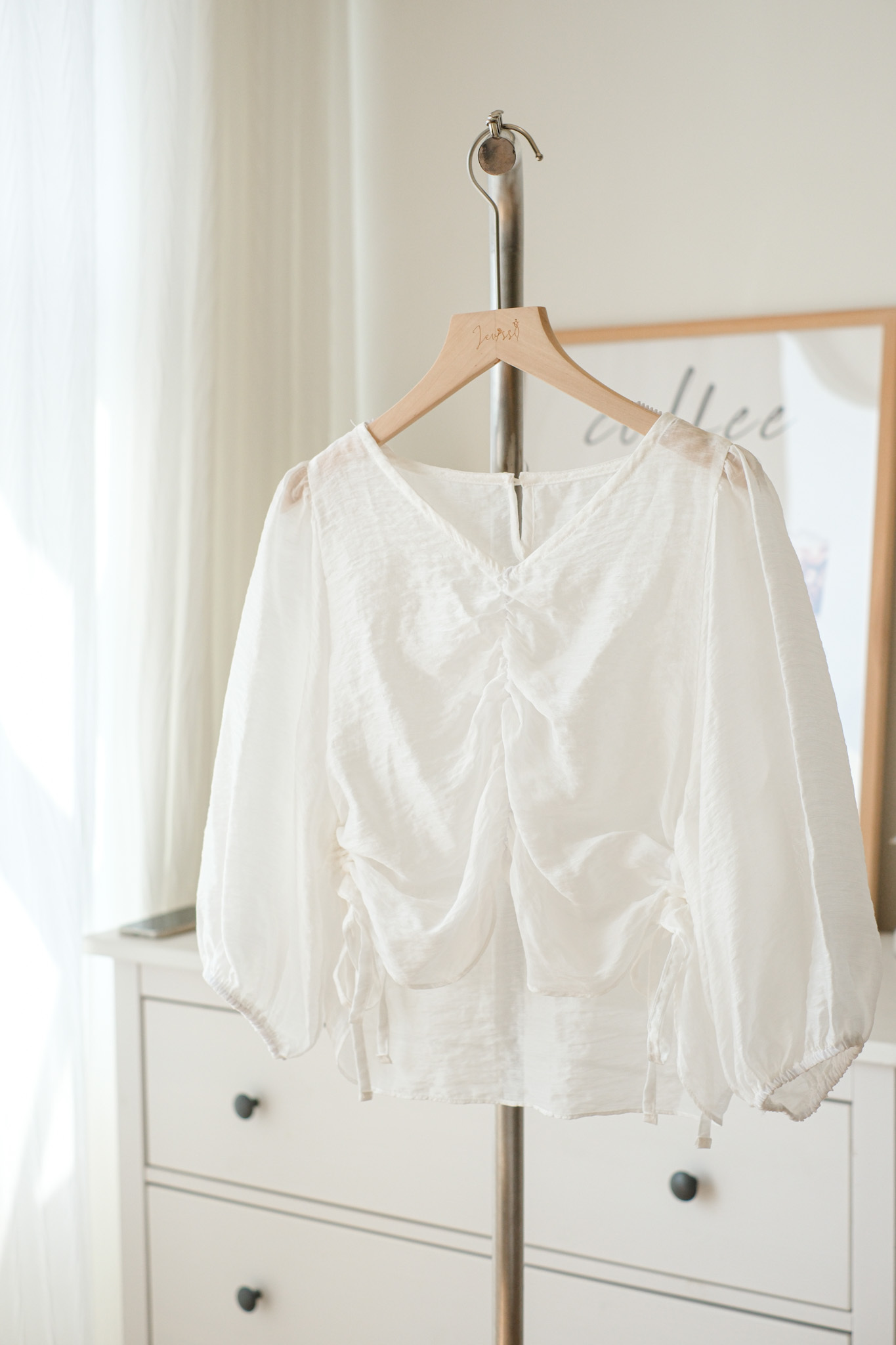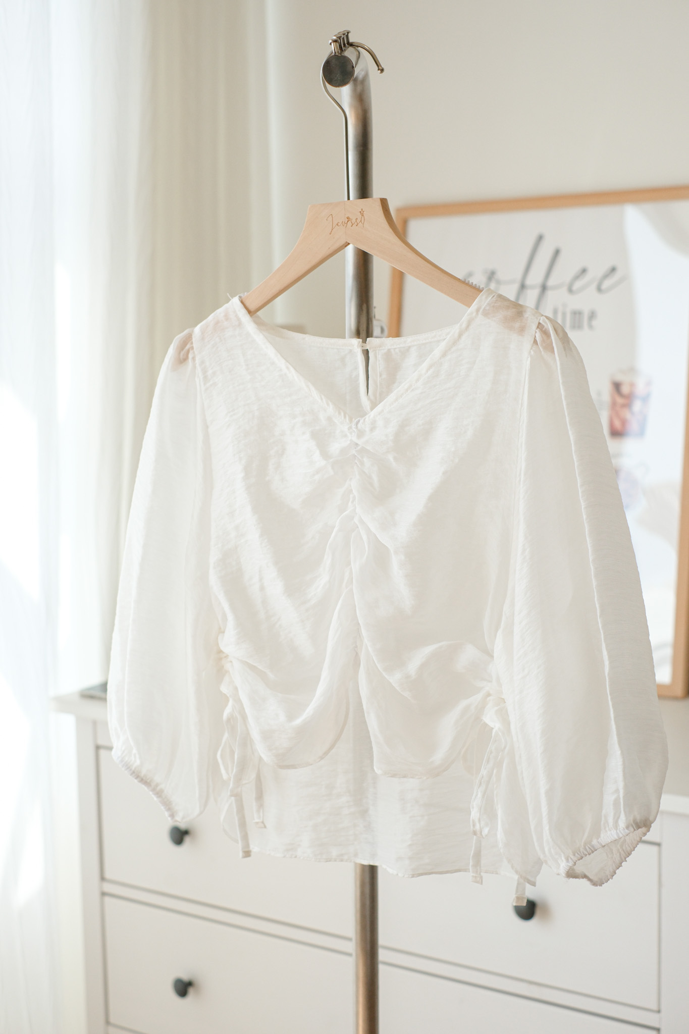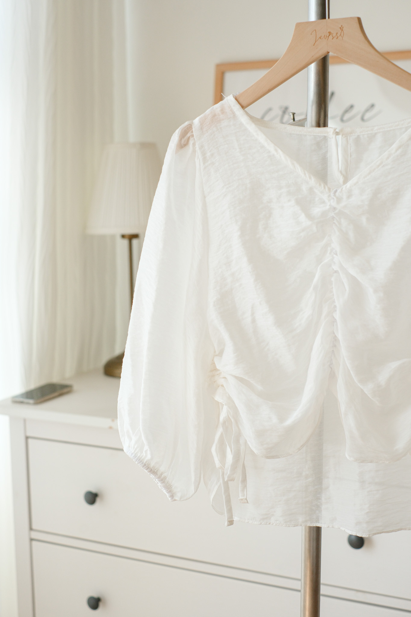 氣質滿滿!V領束束綁結上衣 (純白/淺杏/黑) TOP320