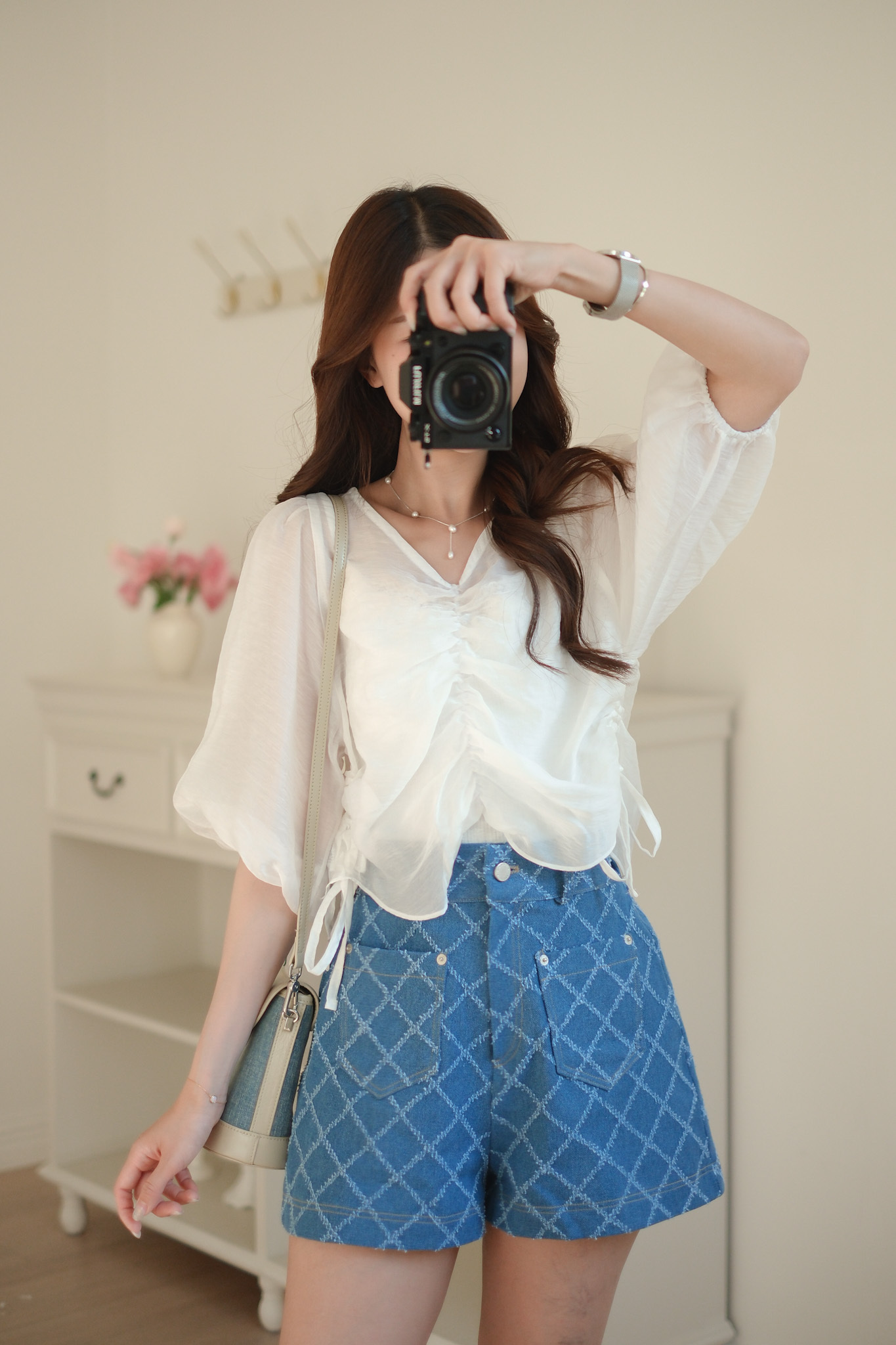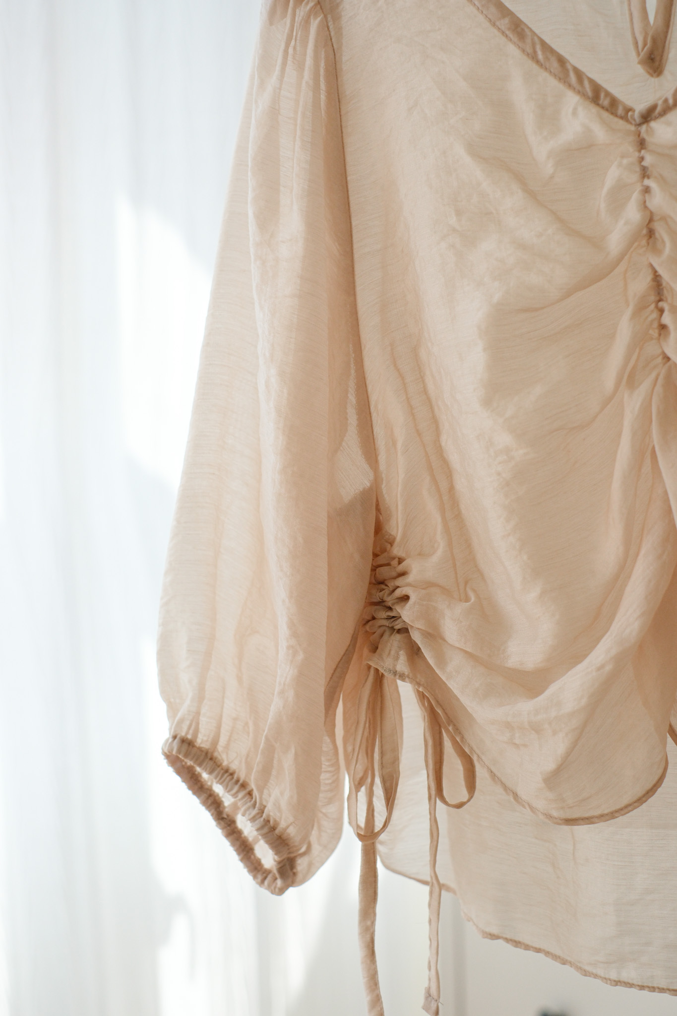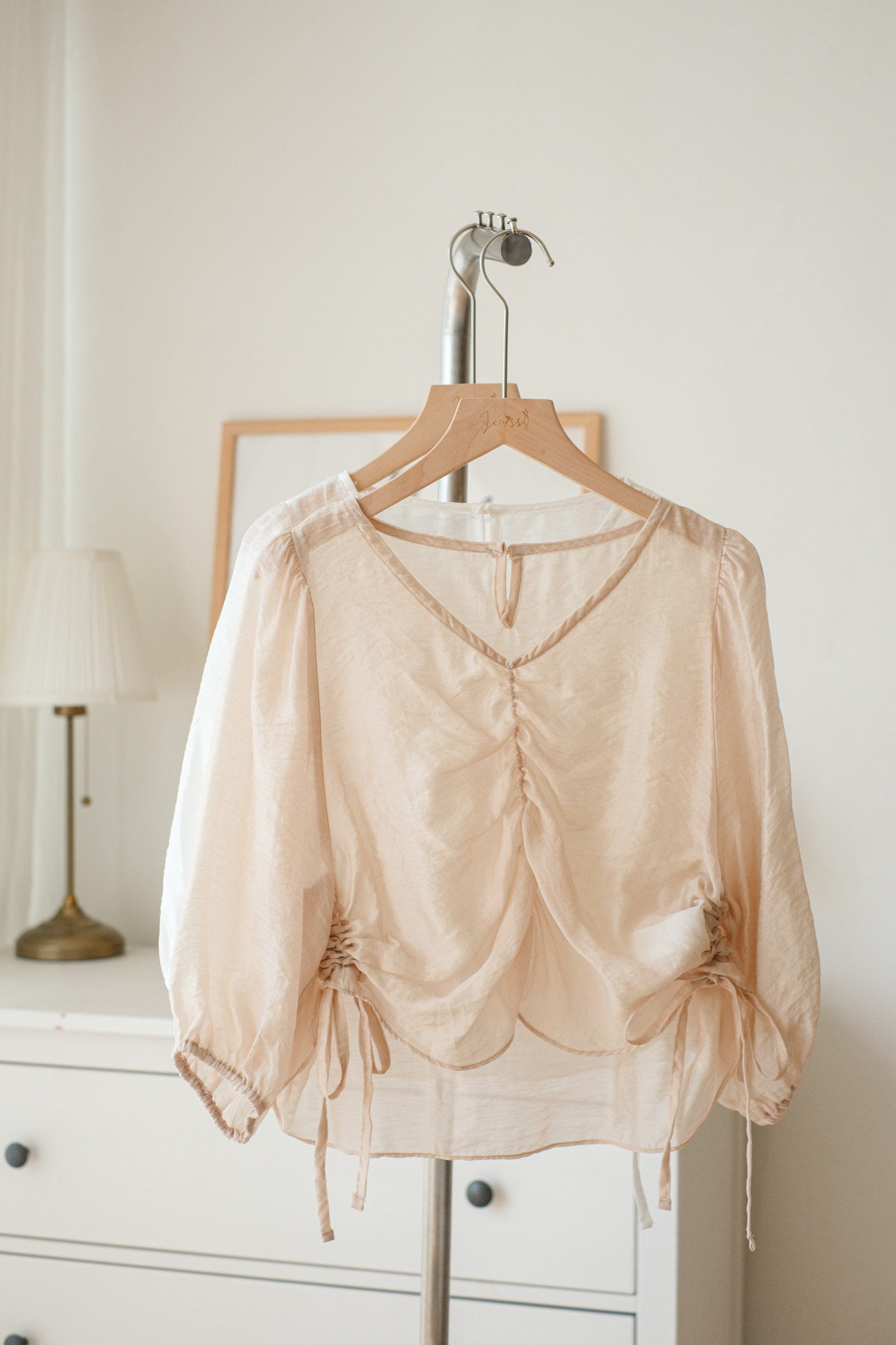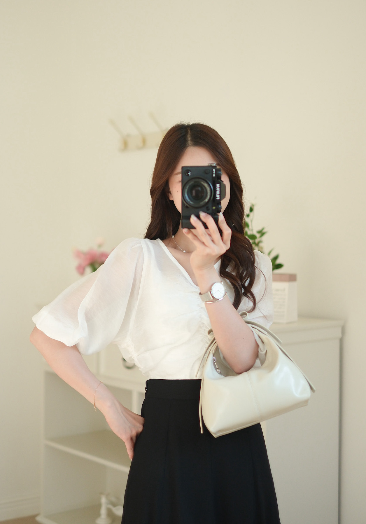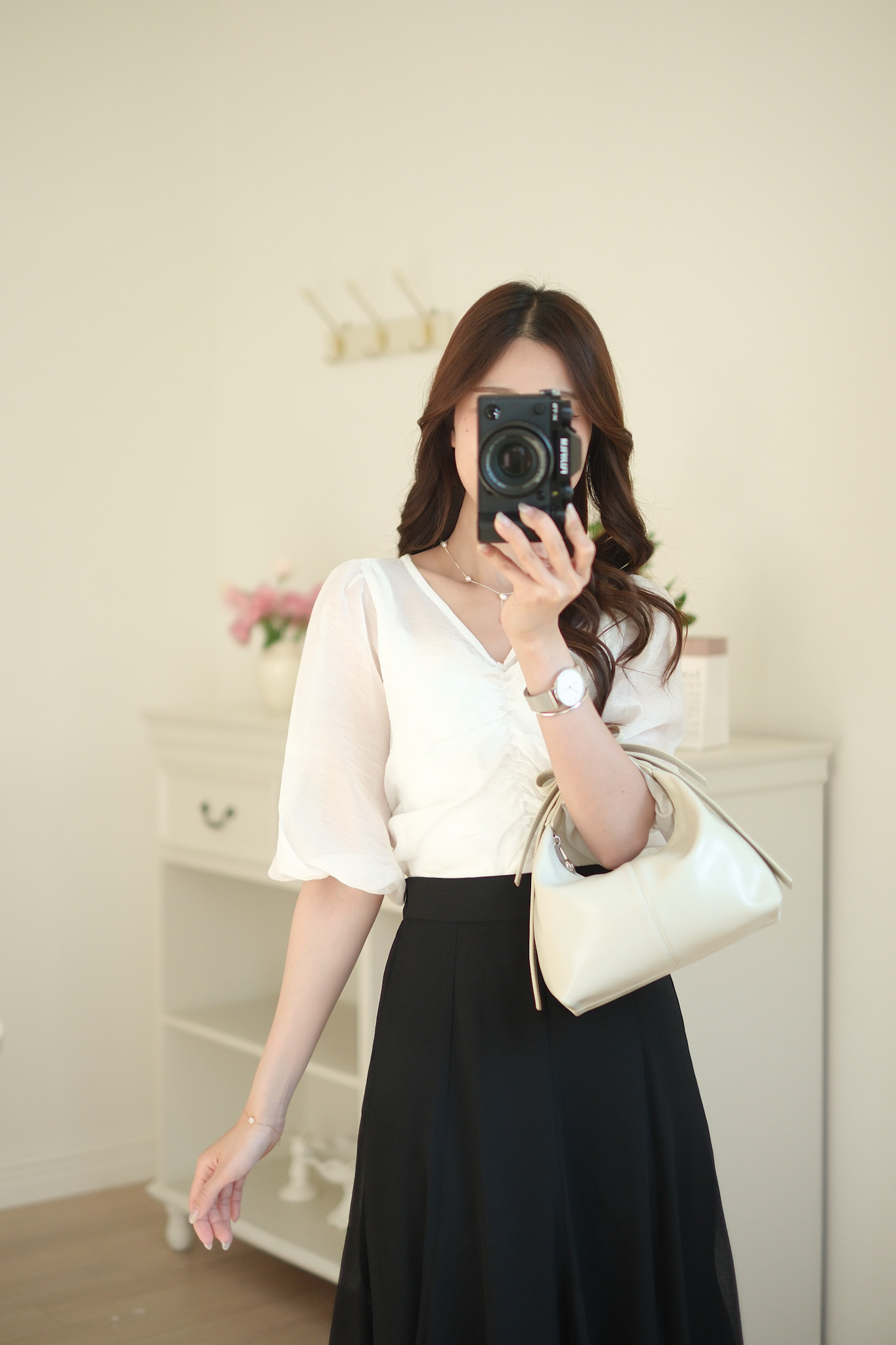 氣質滿滿!V領束束綁結上衣 (純白/淺杏/黑) TOP320