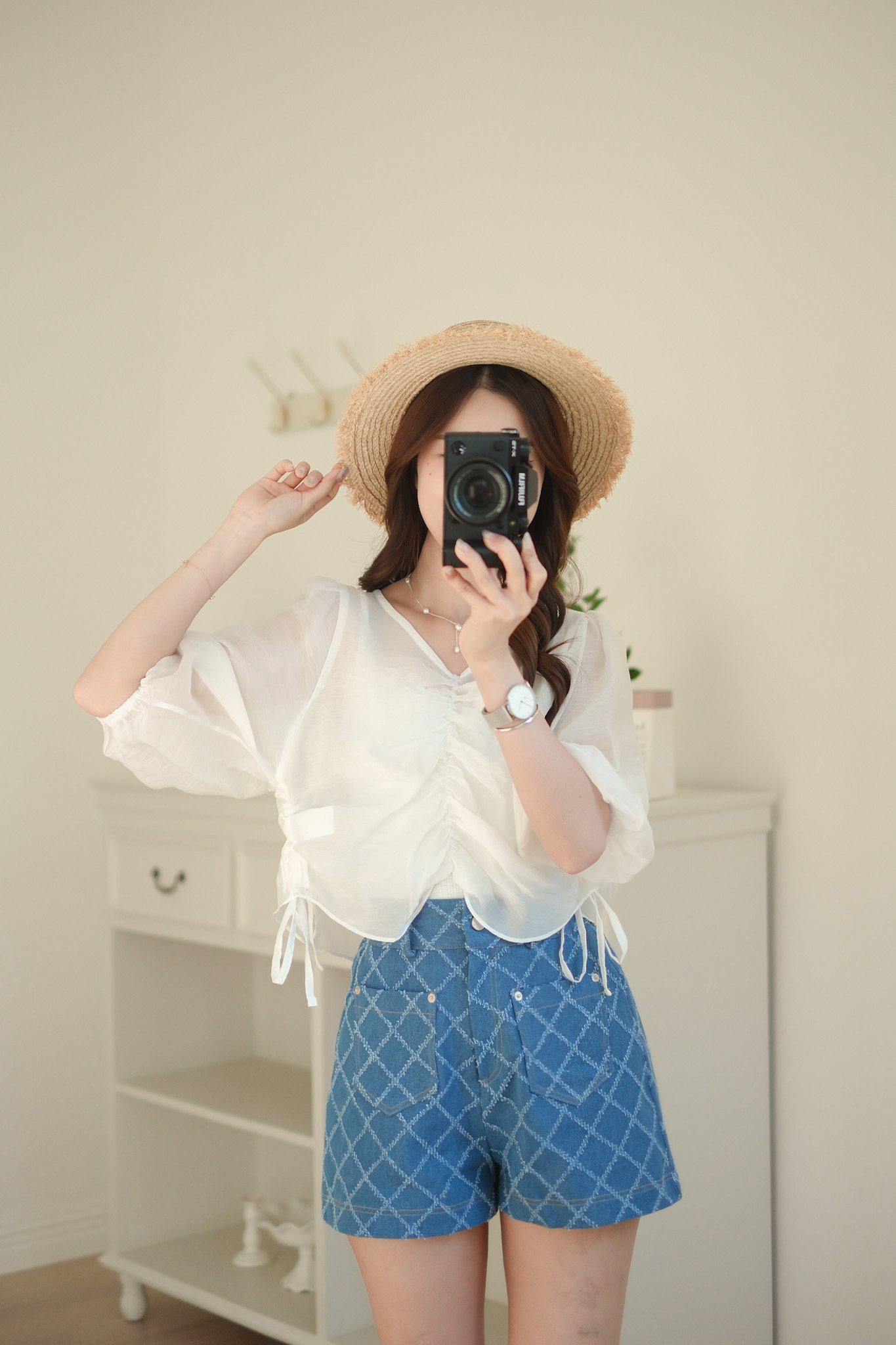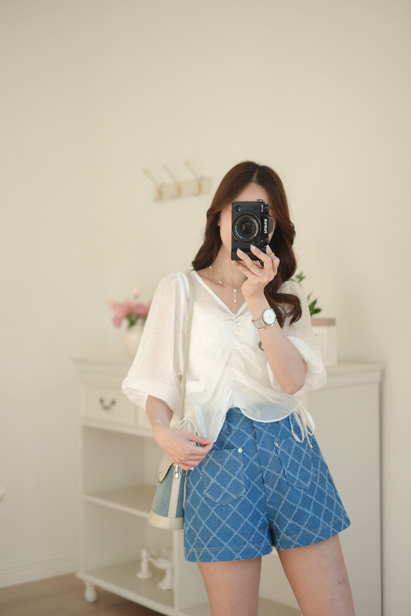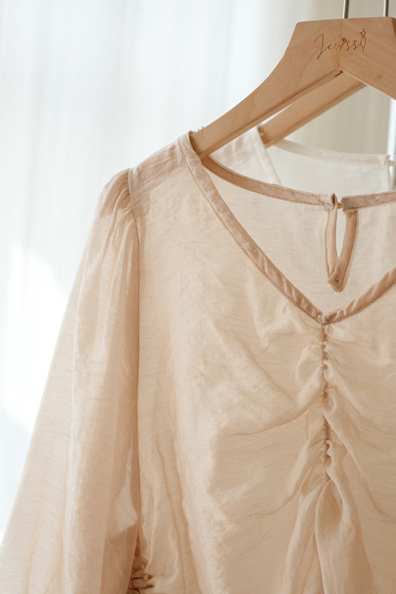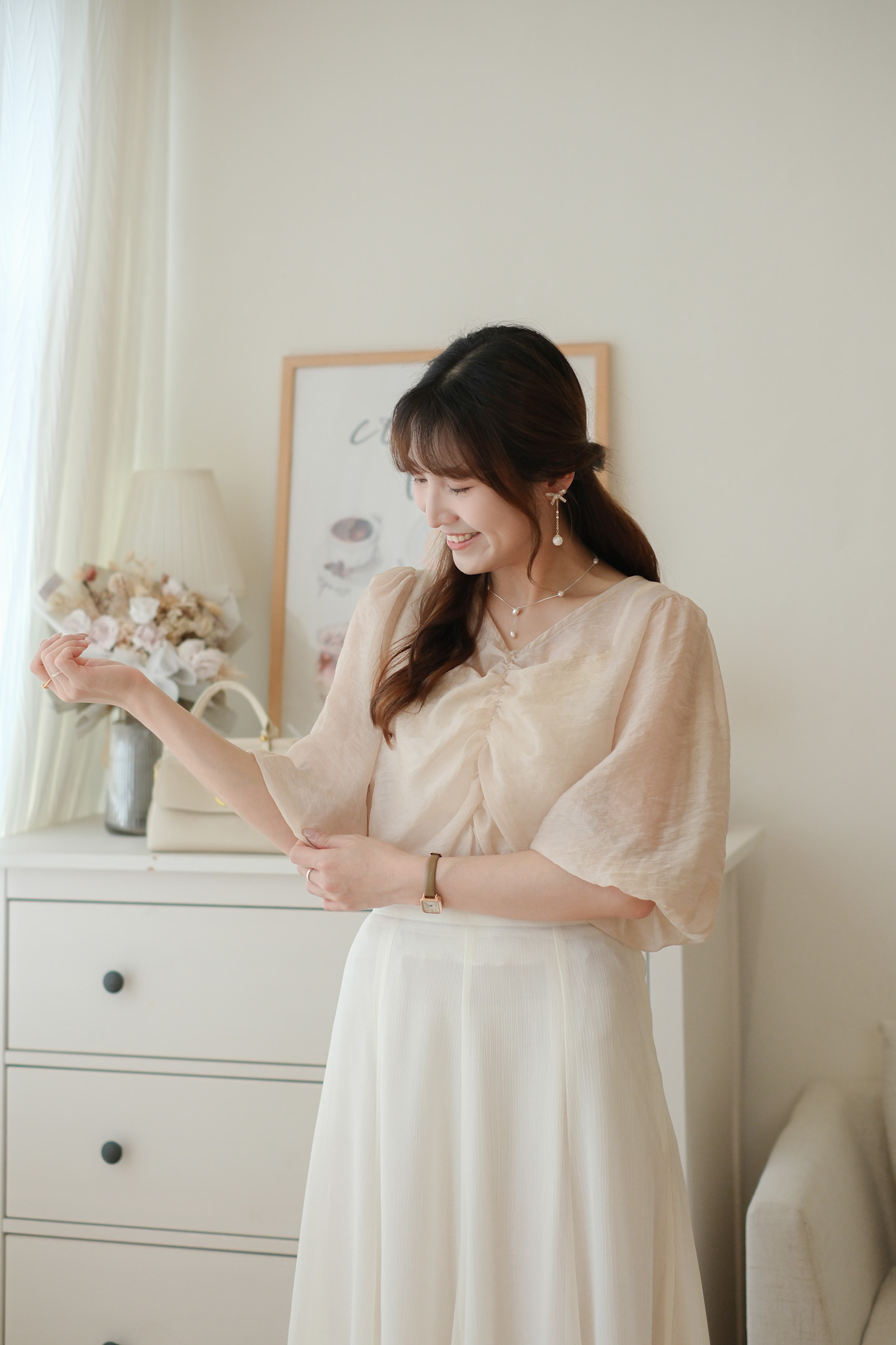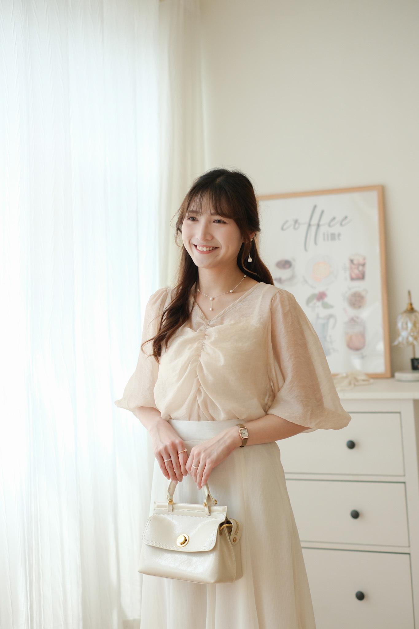 氣質滿滿!V領束束綁結上衣 (純白/淺杏/黑) TOP320