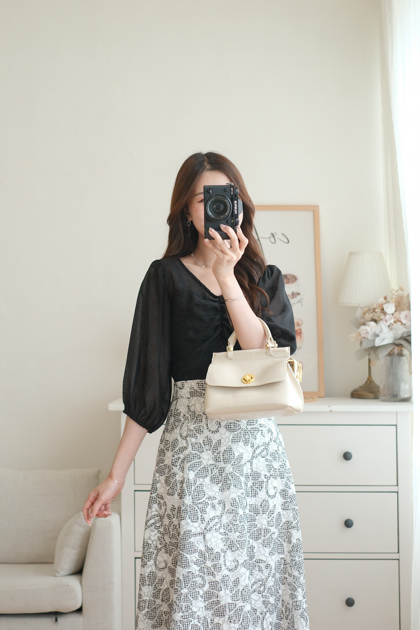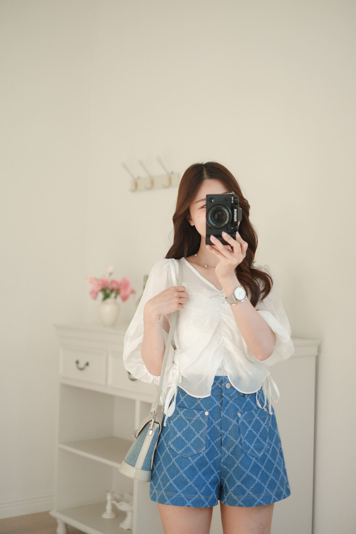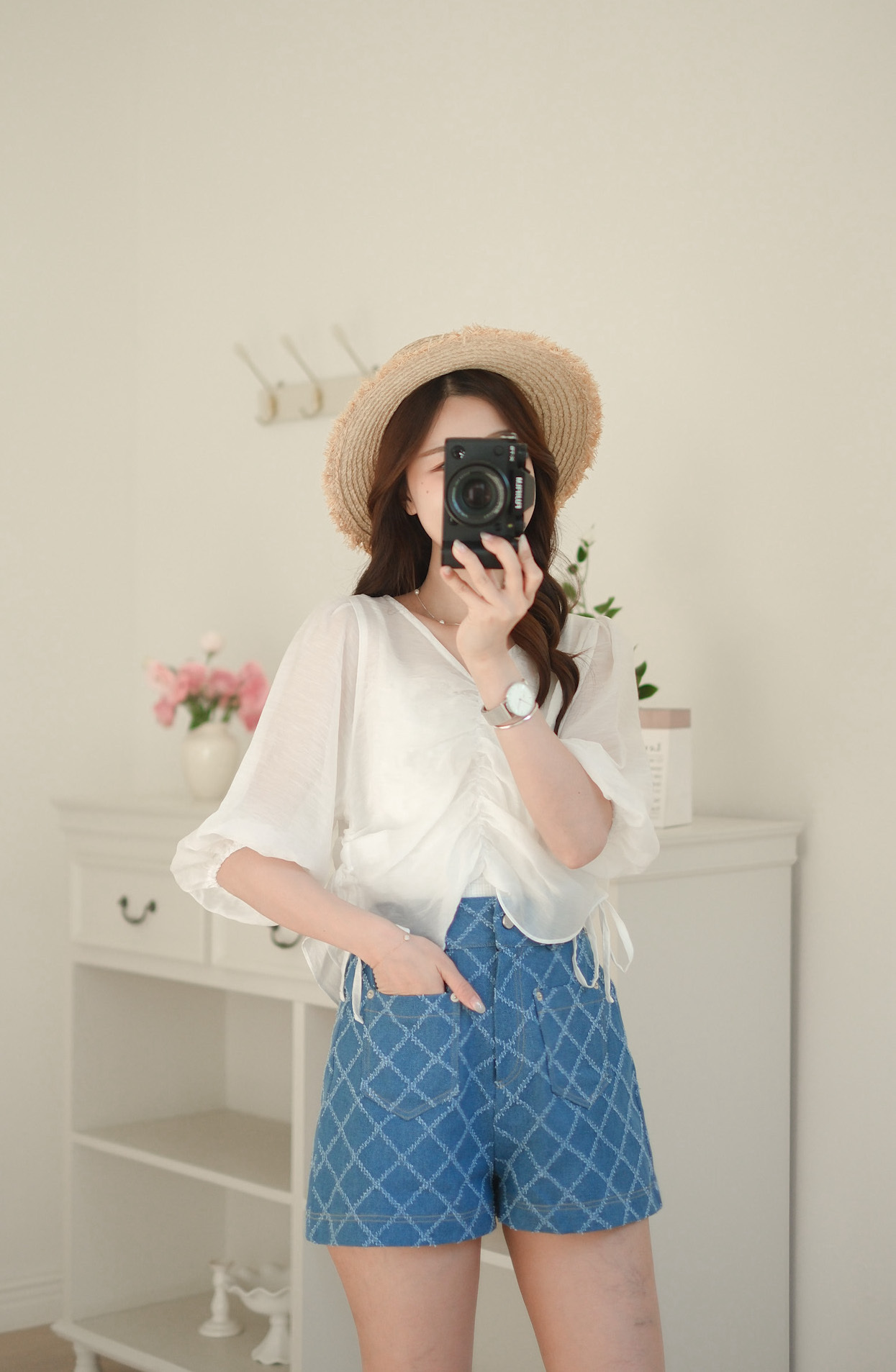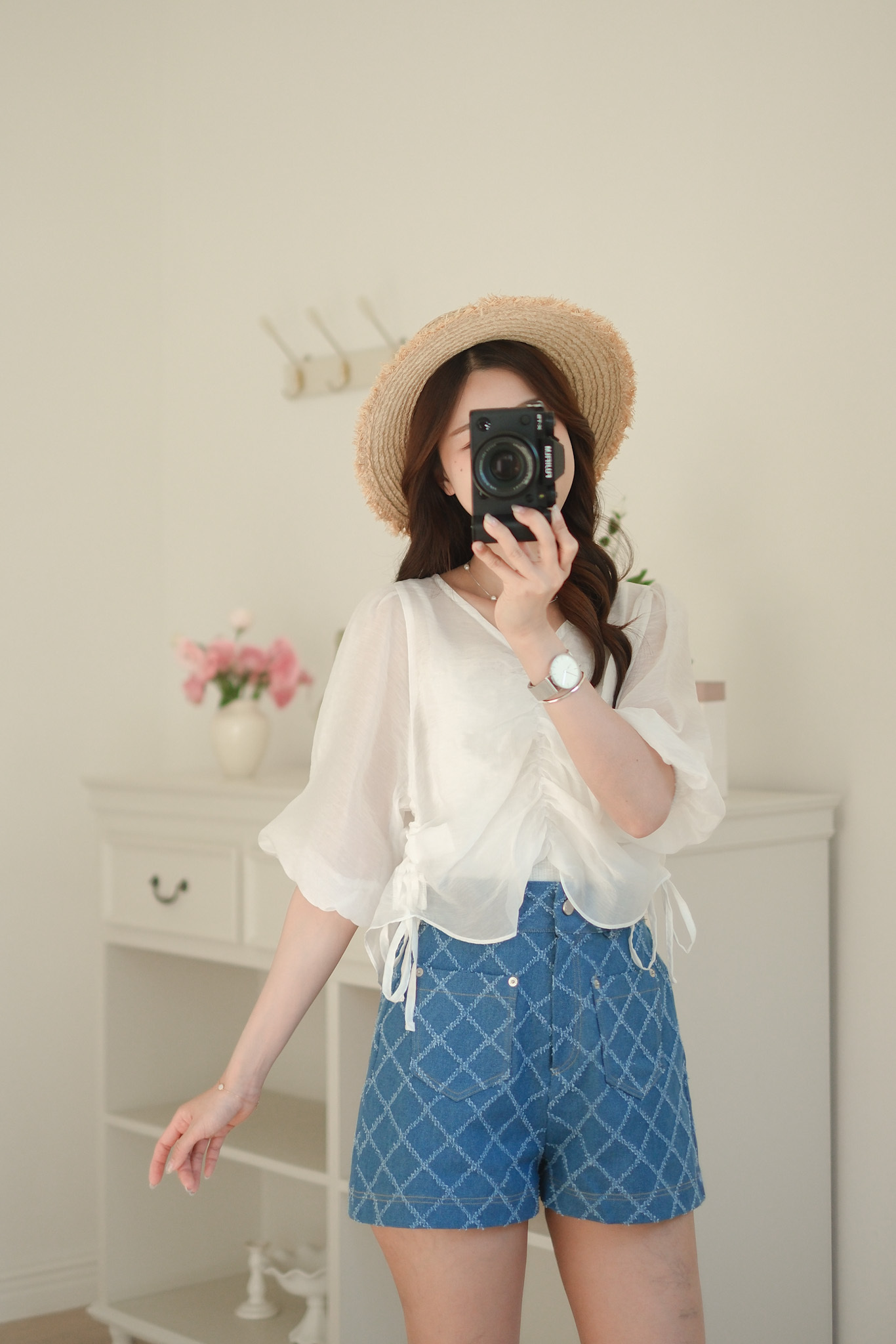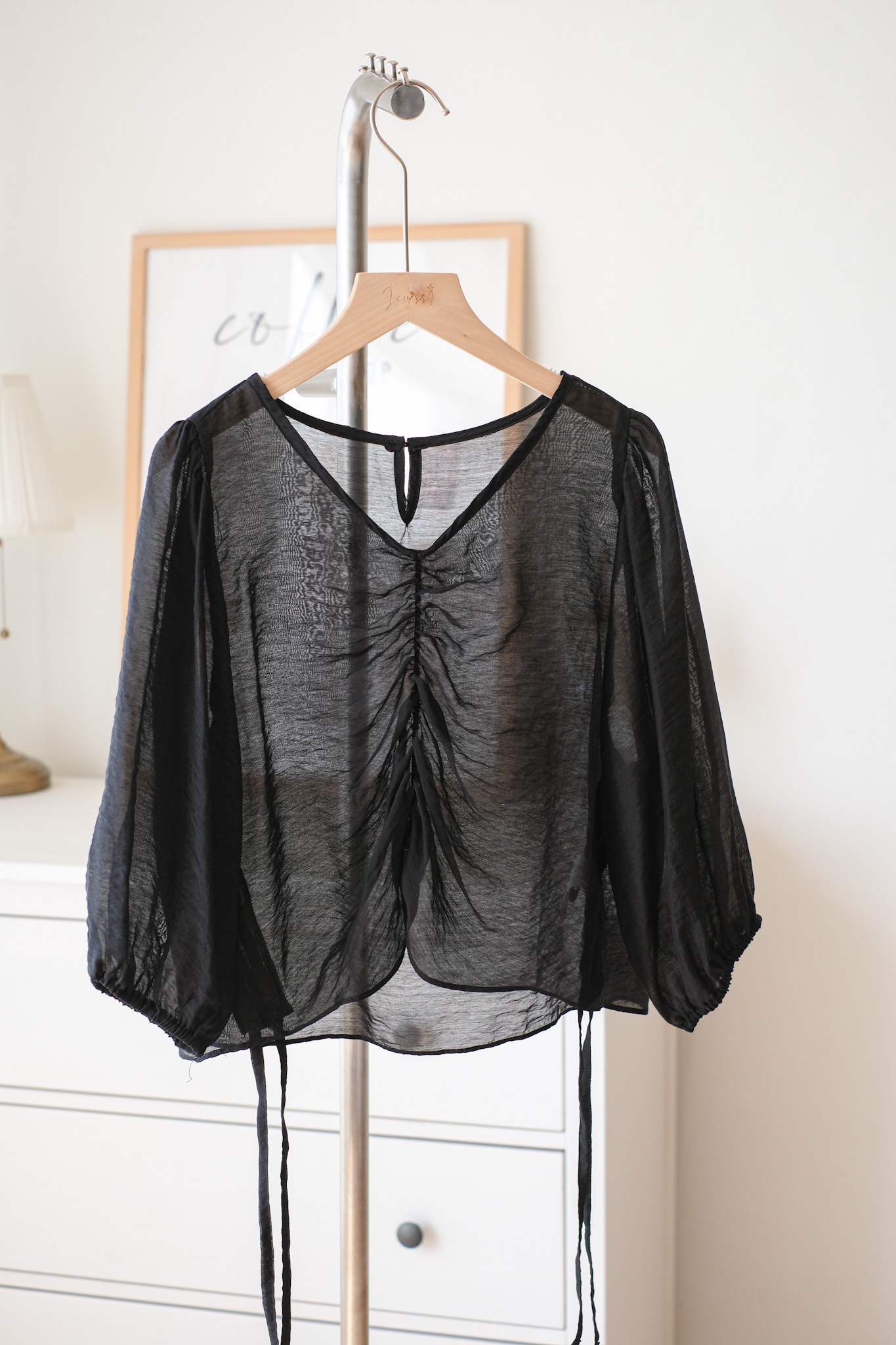 氣質滿滿!V領束束綁結上衣 (純白/淺杏/黑) TOP320