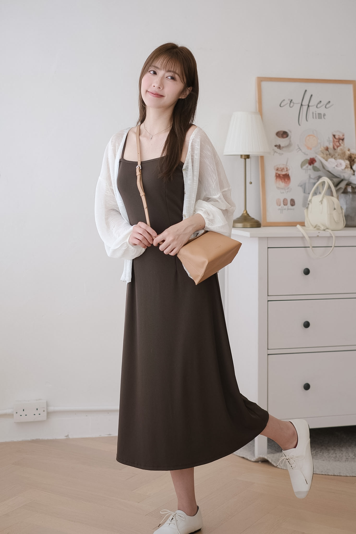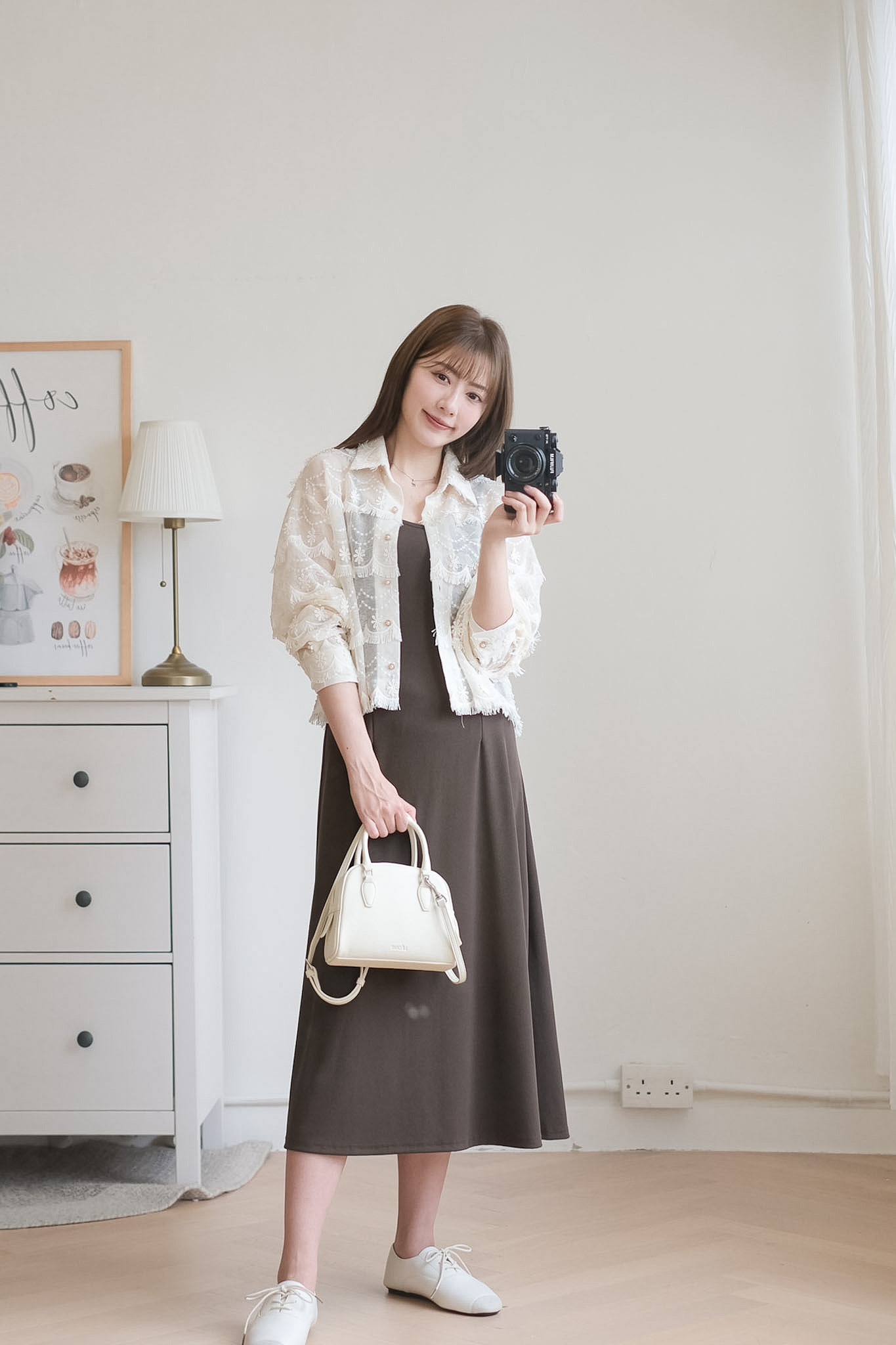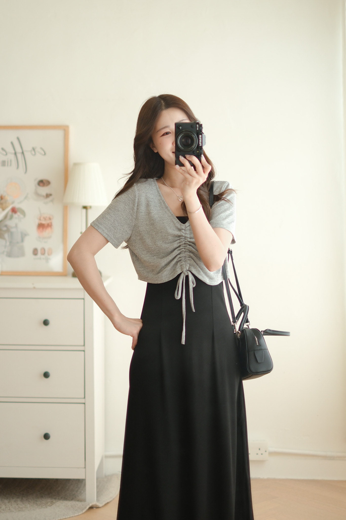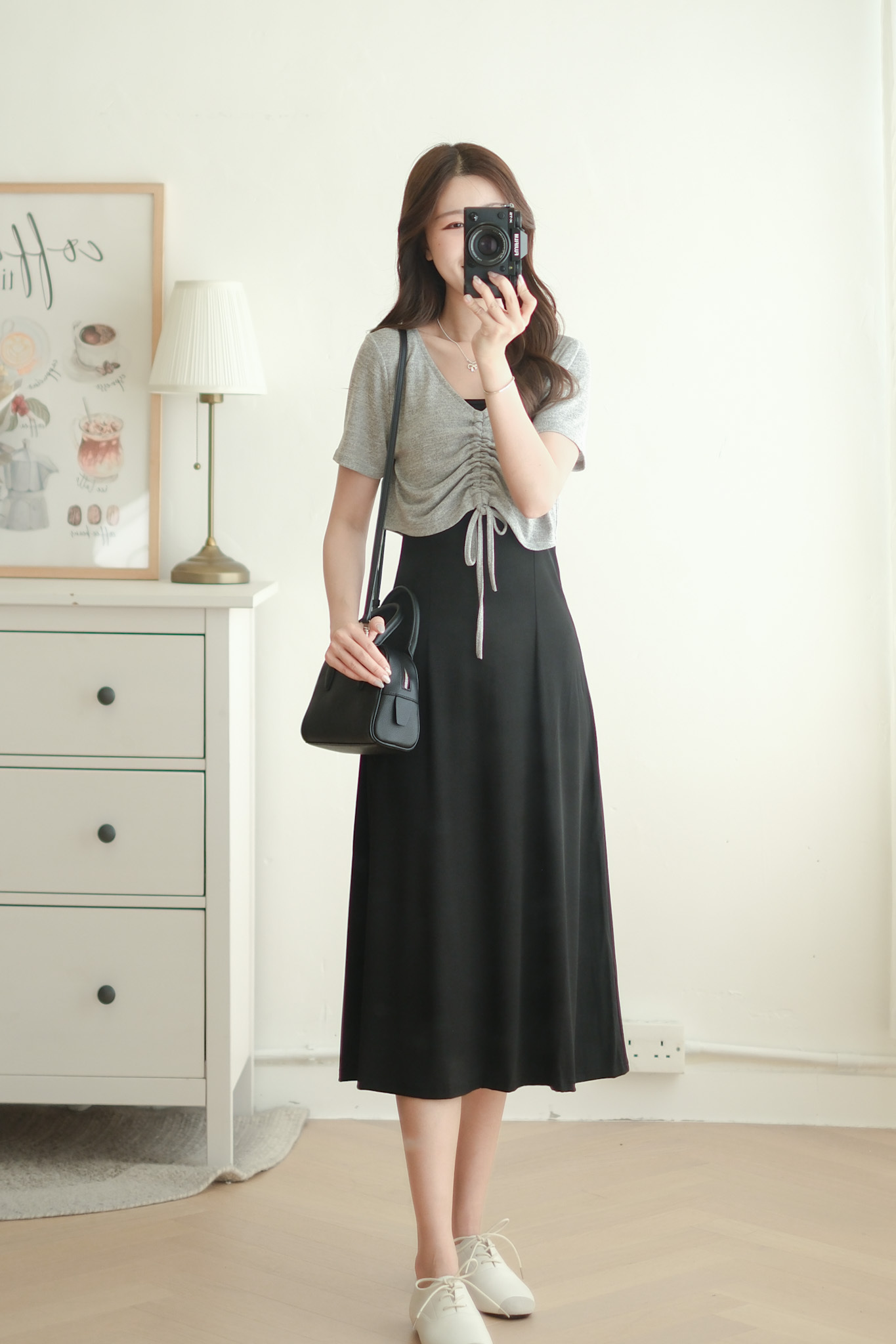 完美比例吊帶裙套裝 (黑灰/棕) OPS183