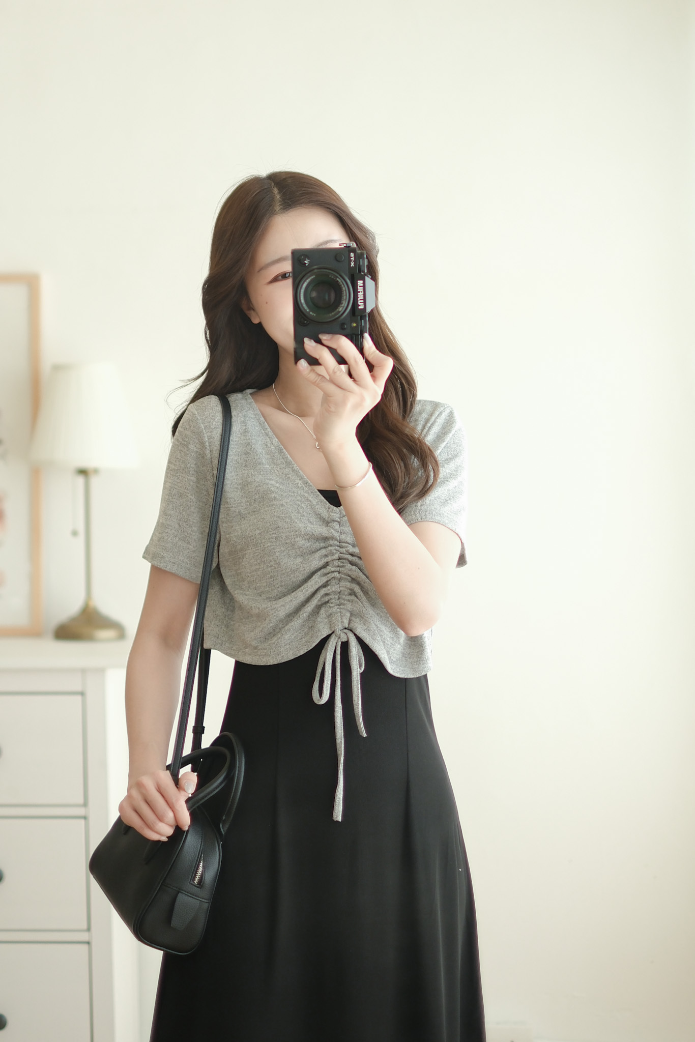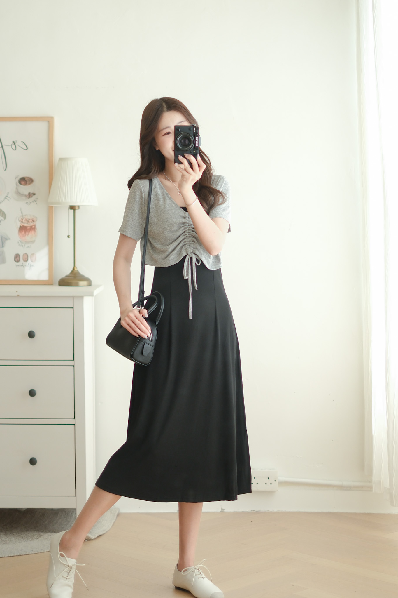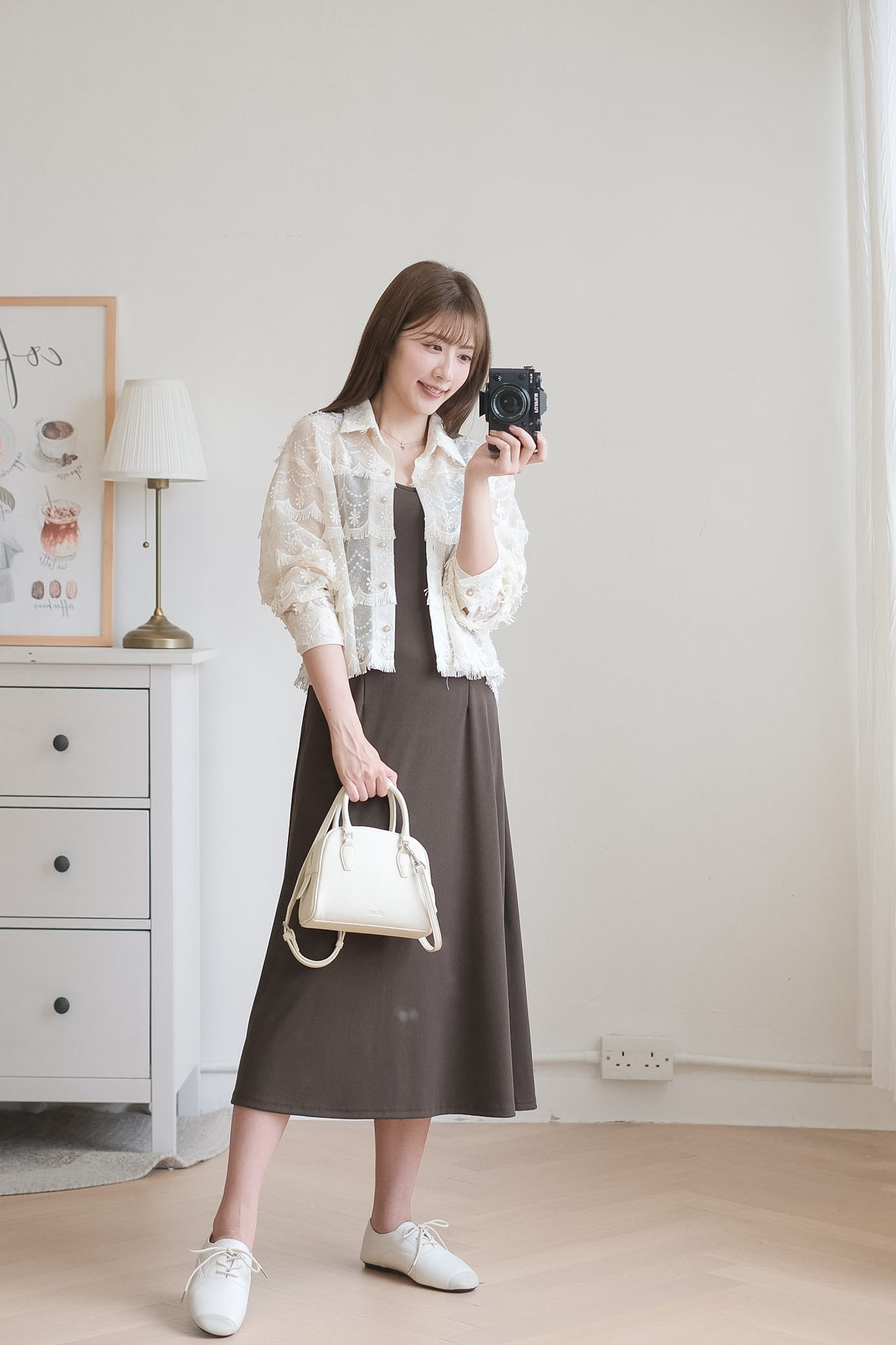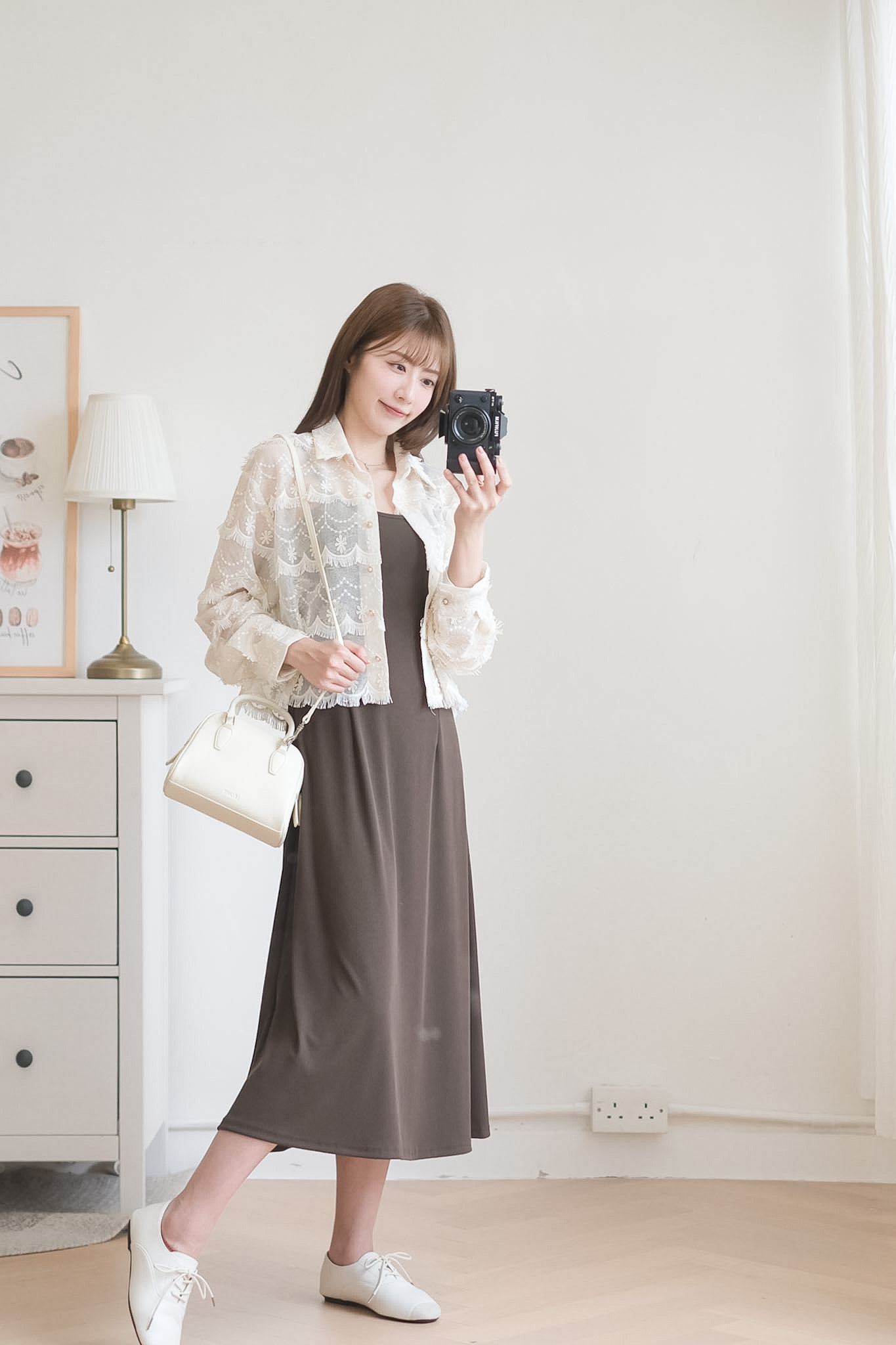 完美比例吊帶裙套裝 (黑灰/棕) OPS183