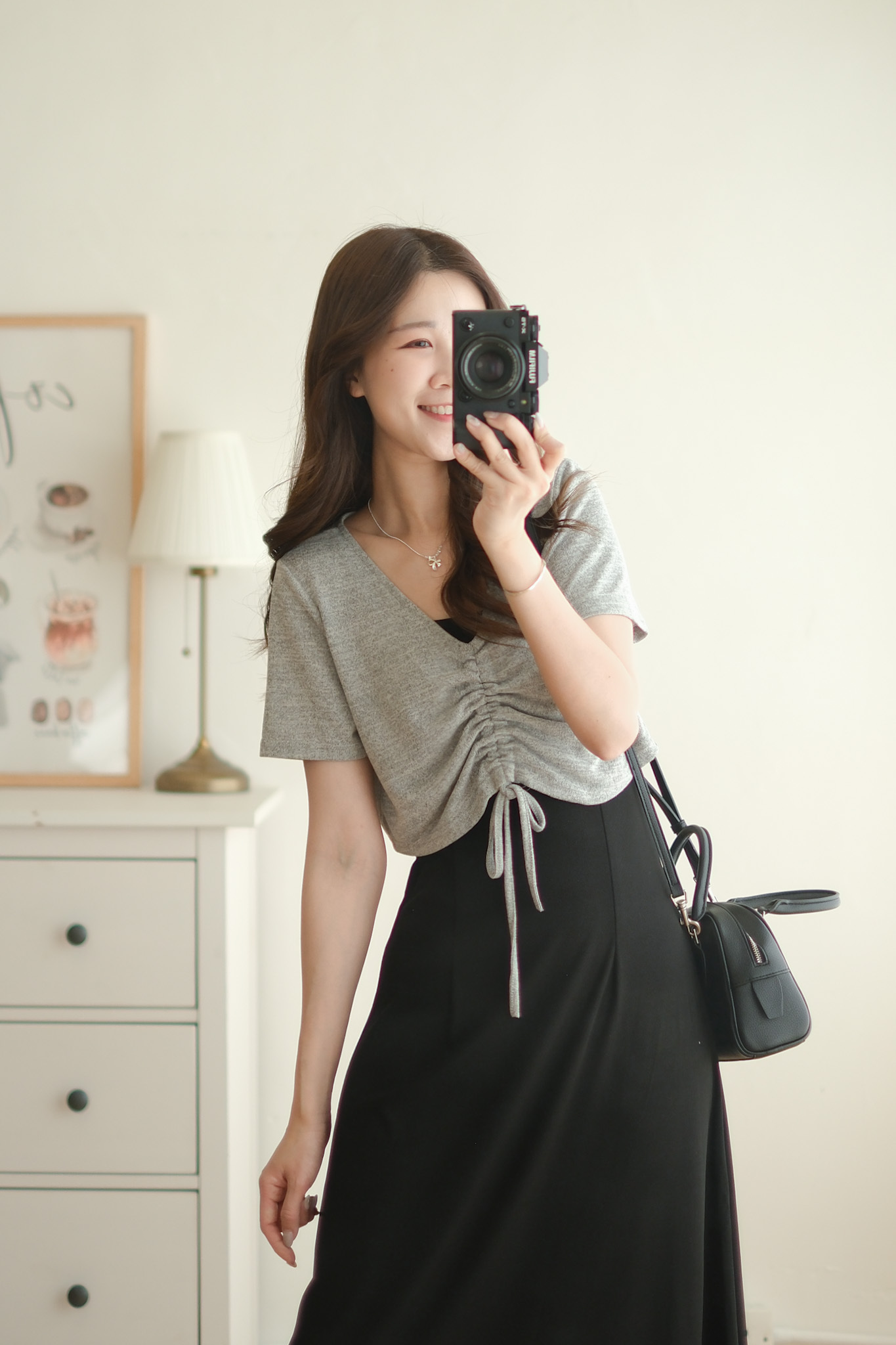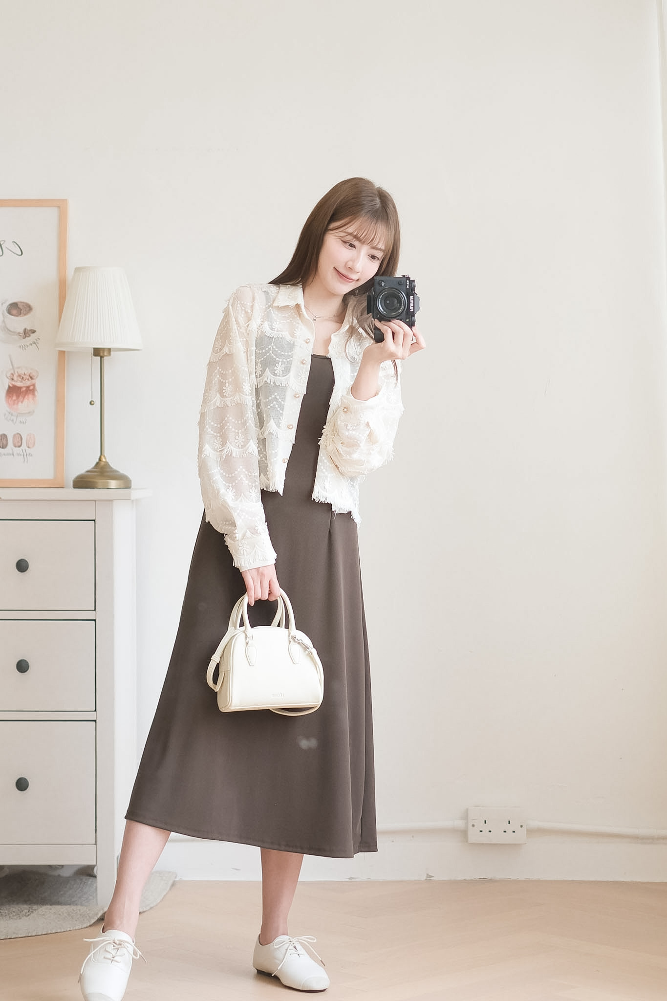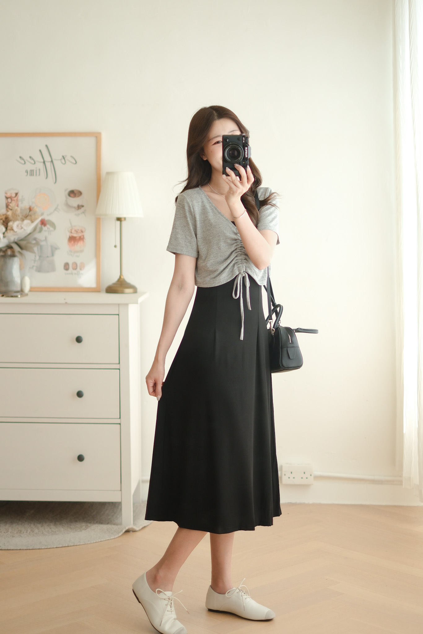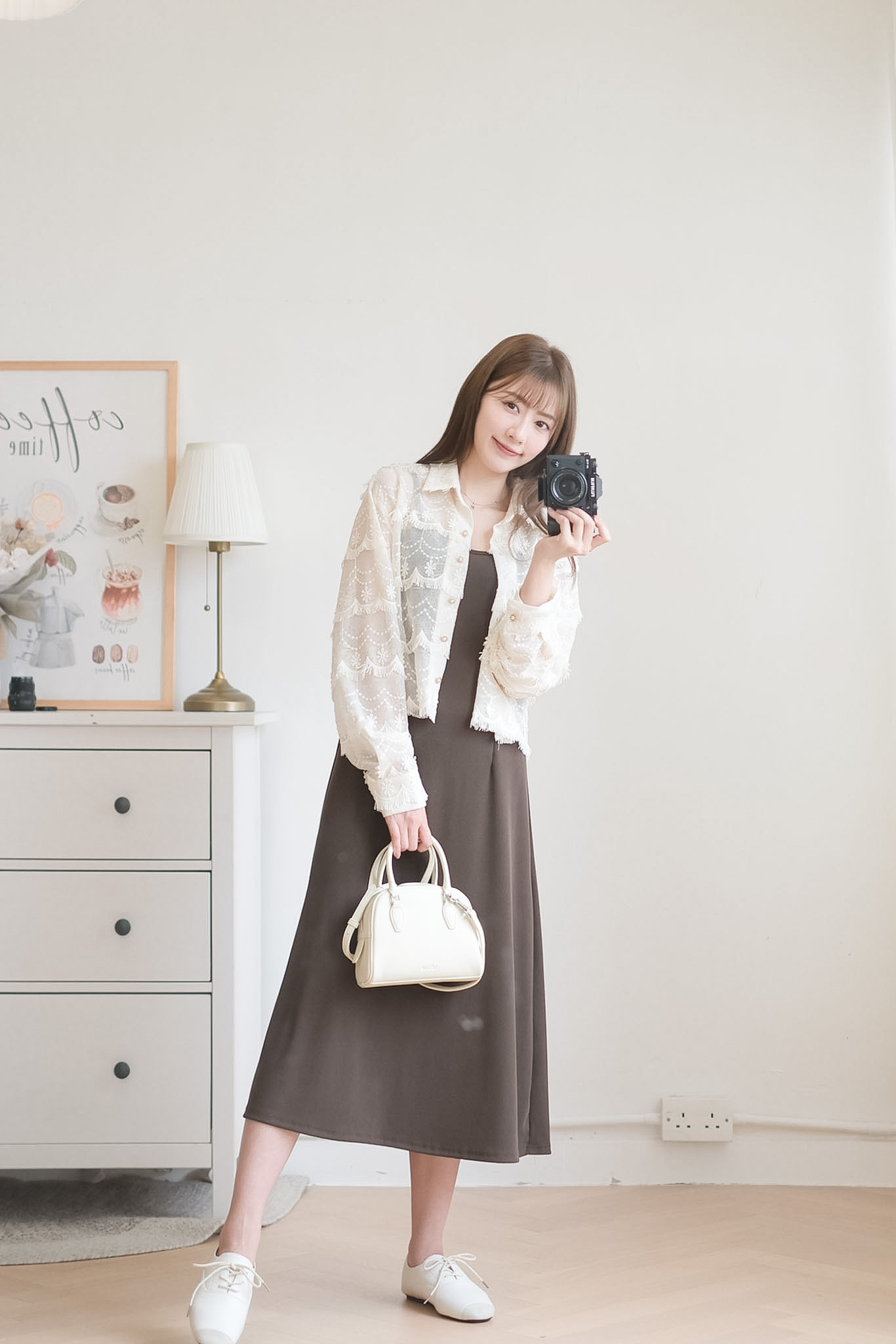 完美比例吊帶裙套裝 (黑灰/棕) OPS183