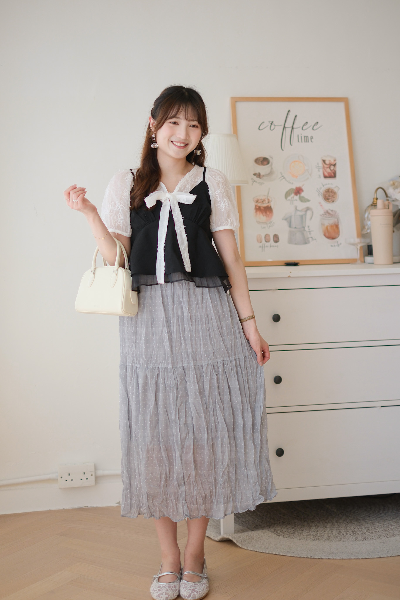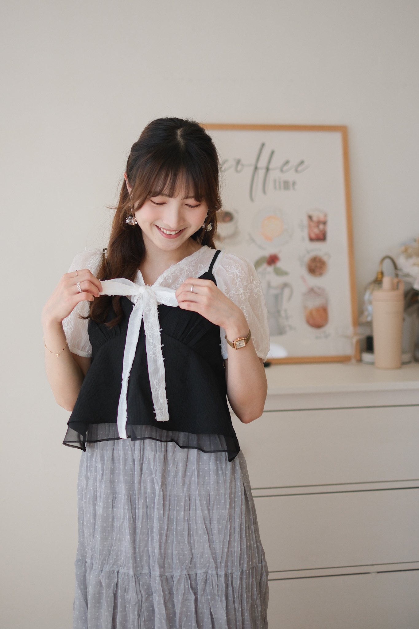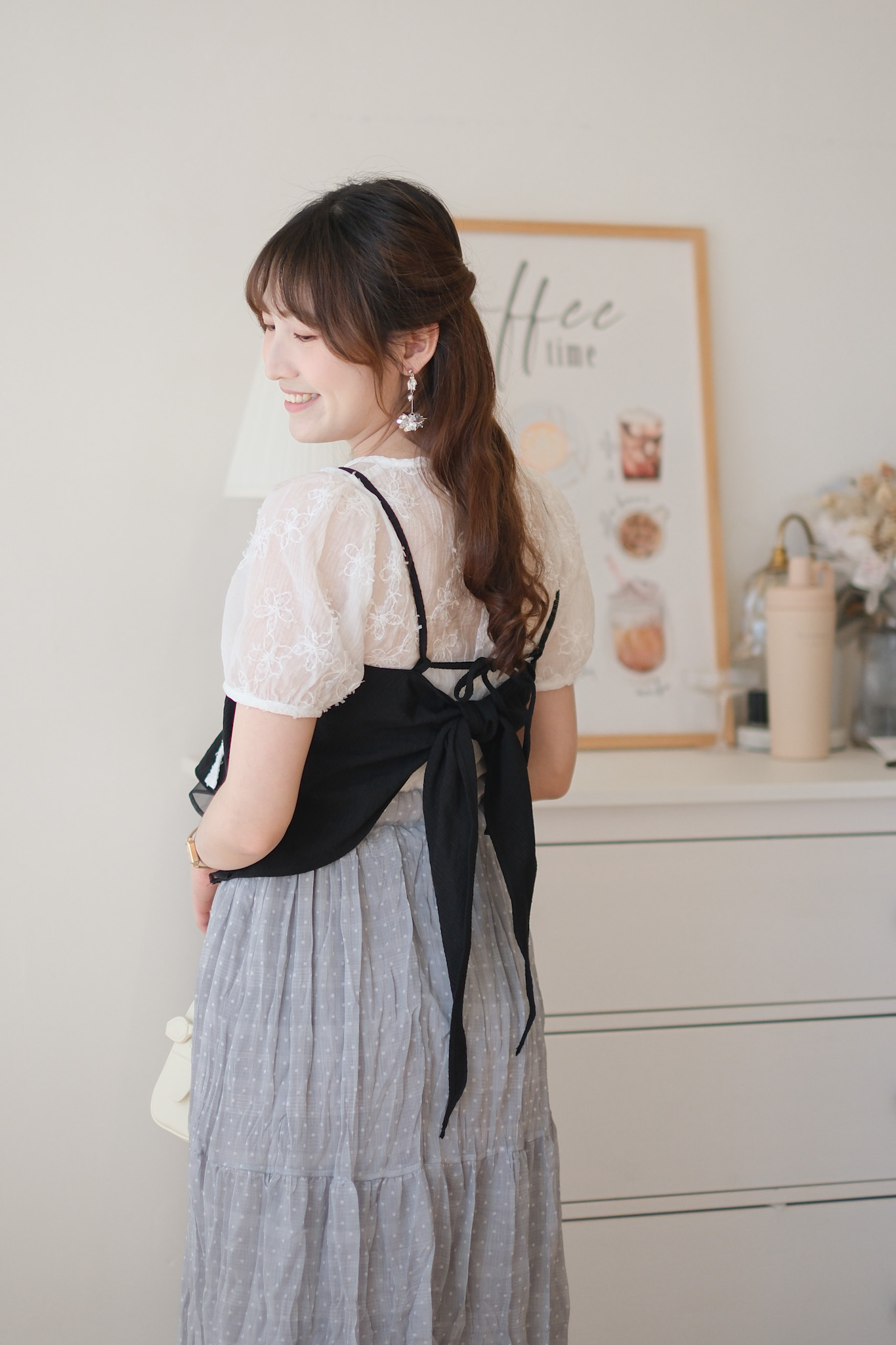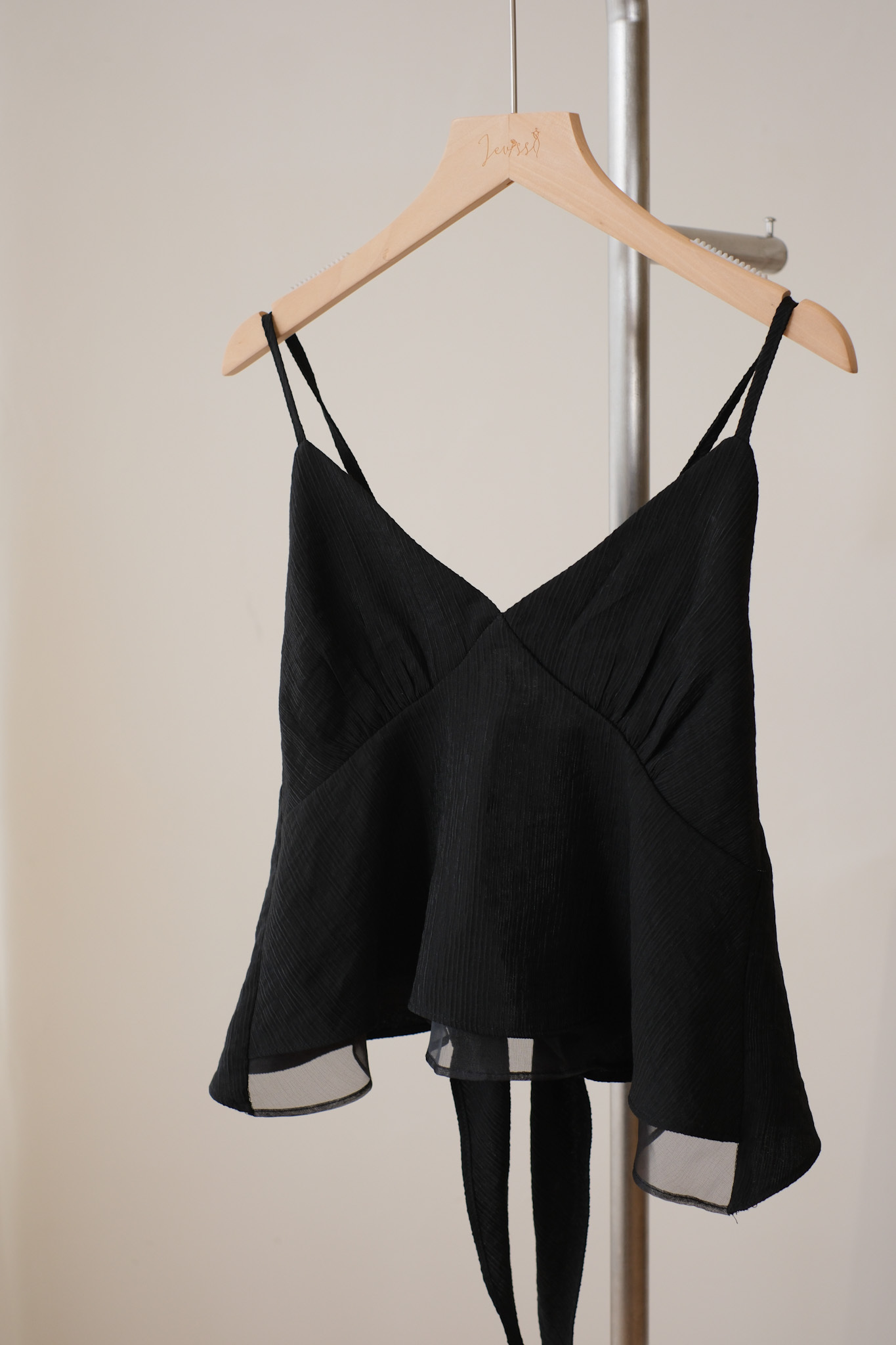 背面超美的層次小吊帶 (米白/黑) TOP492