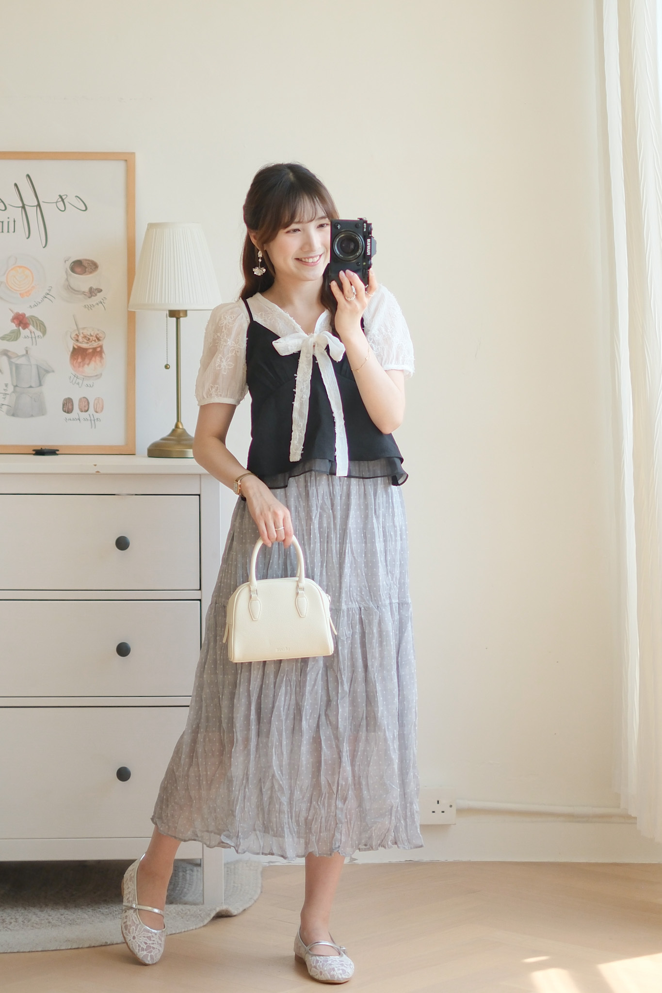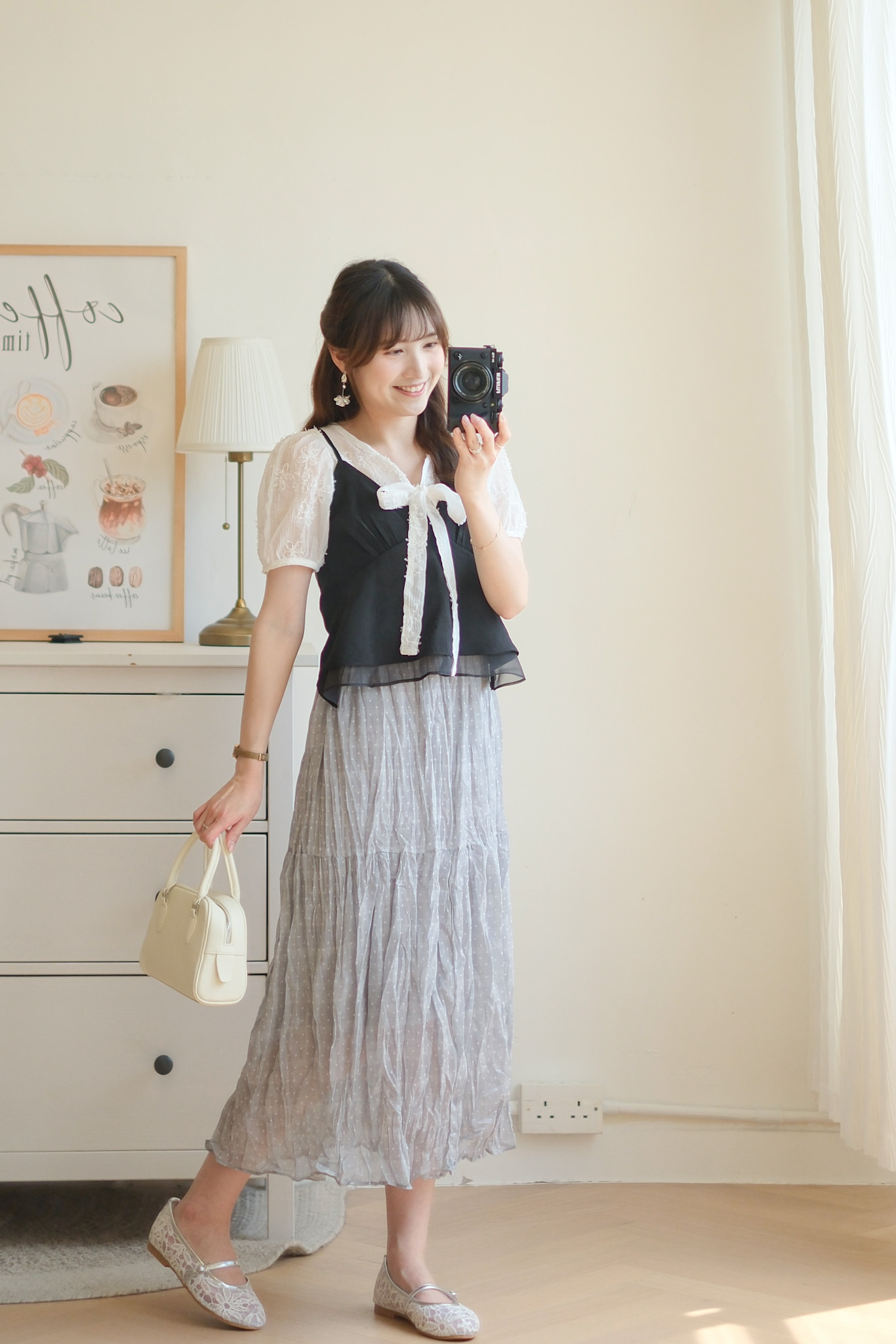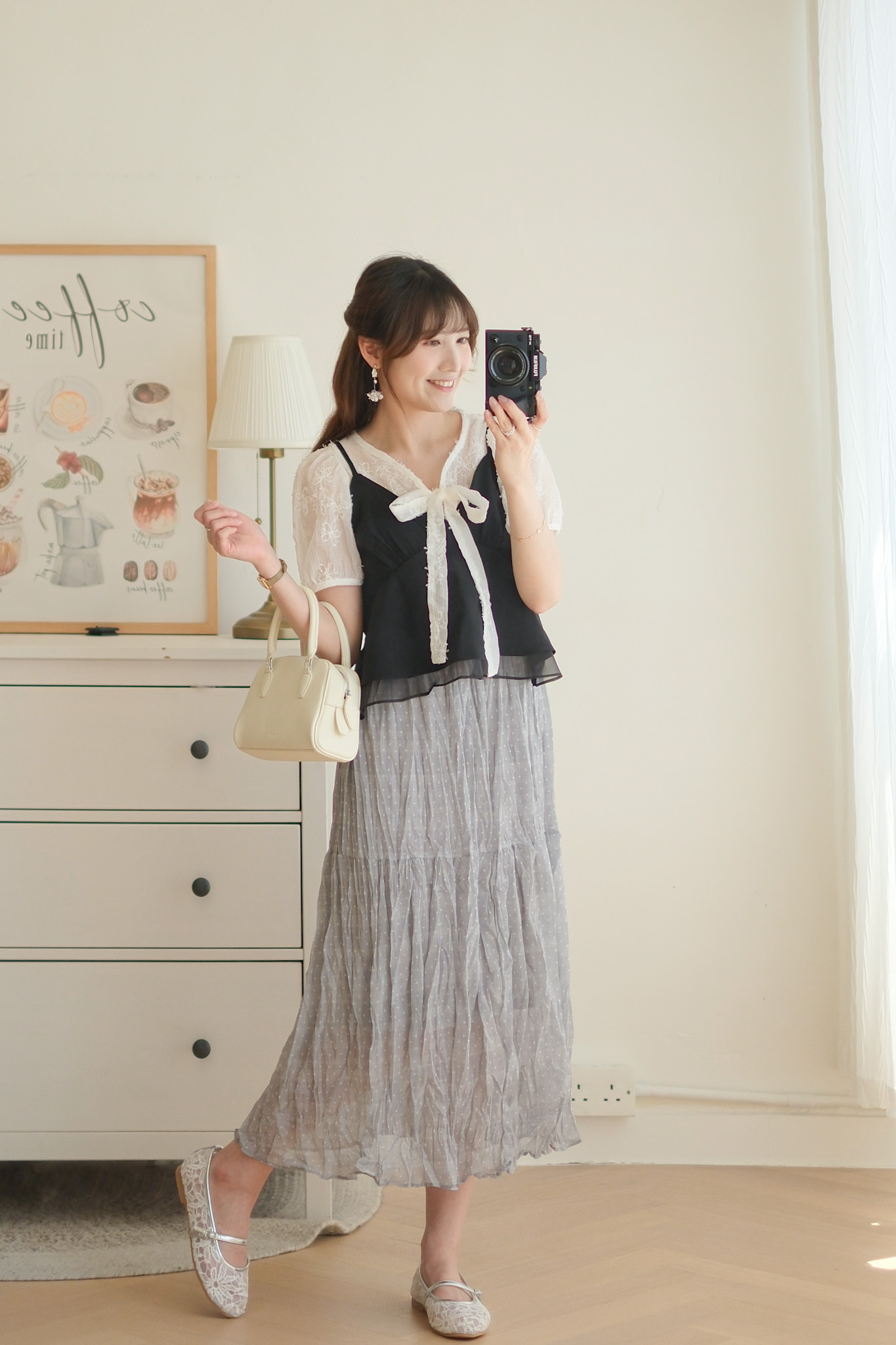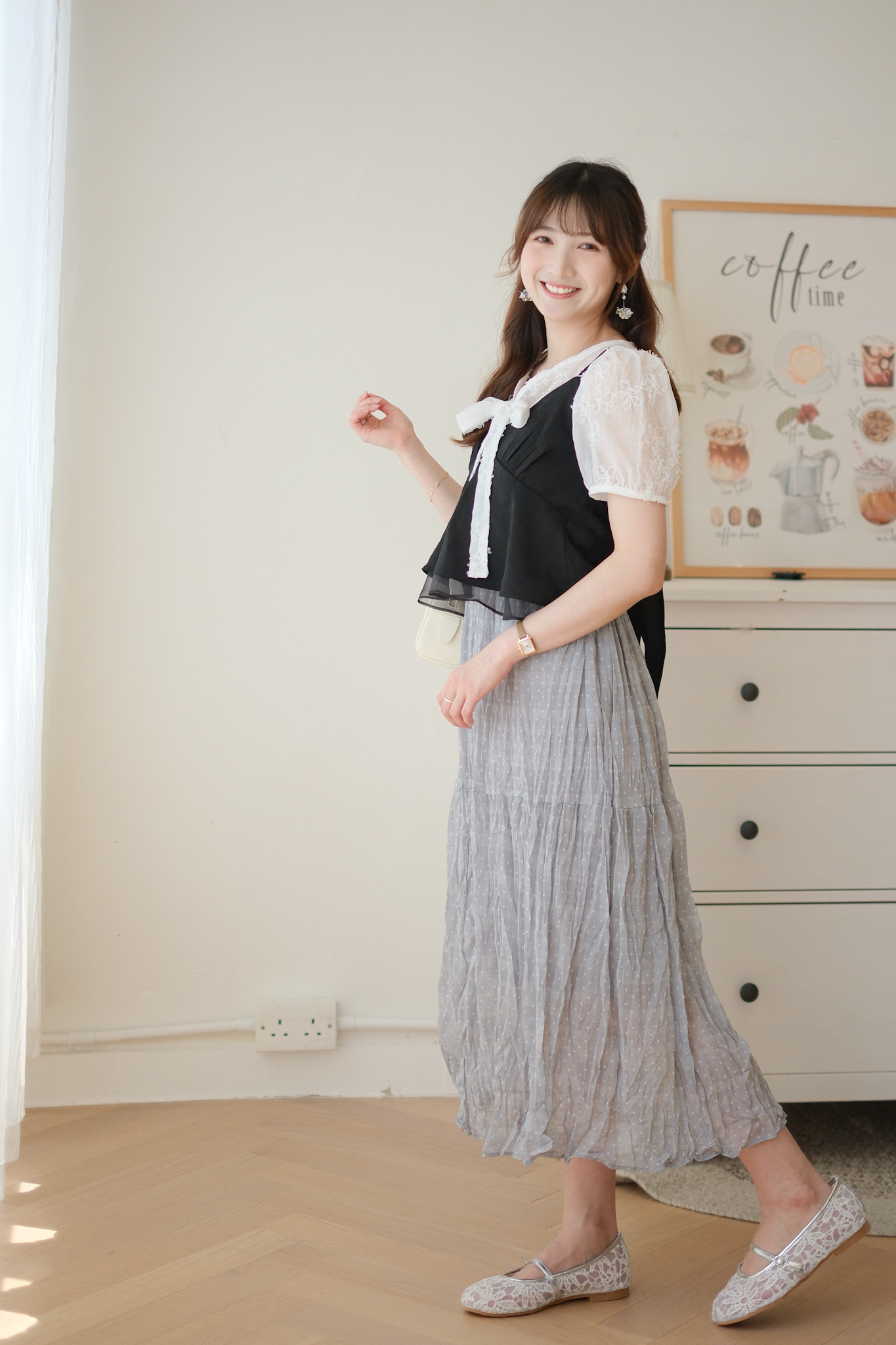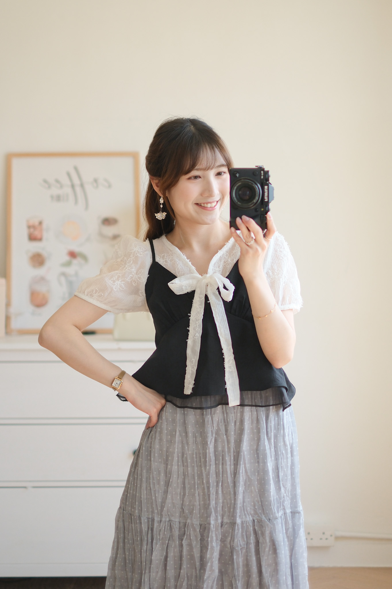背面超美的層次小吊帶 (米白/黑) TOP492