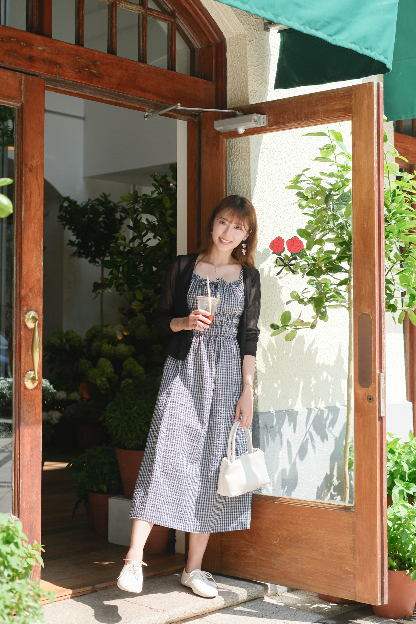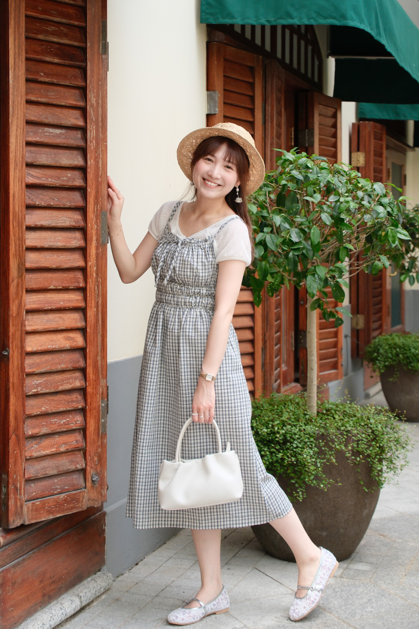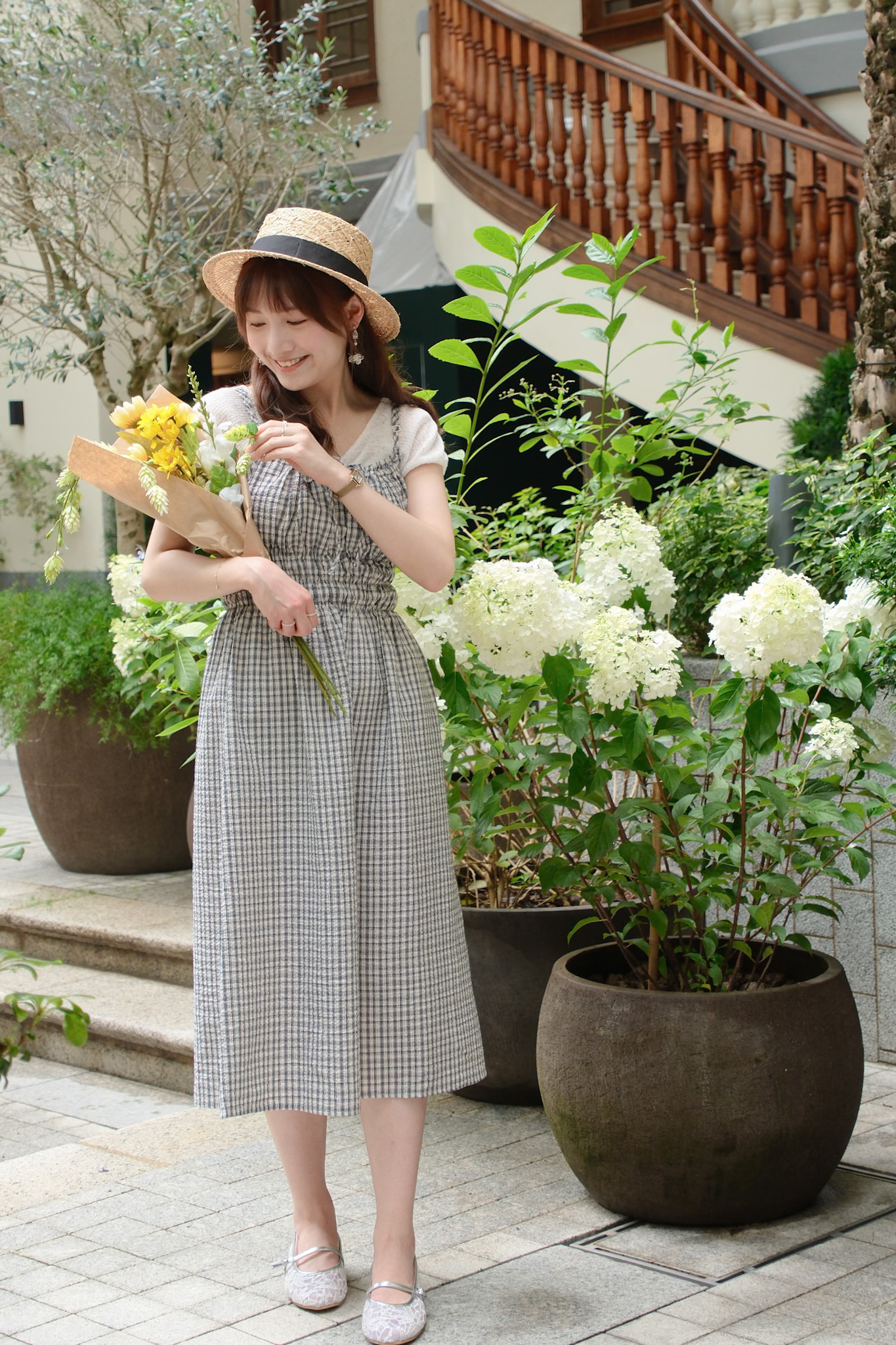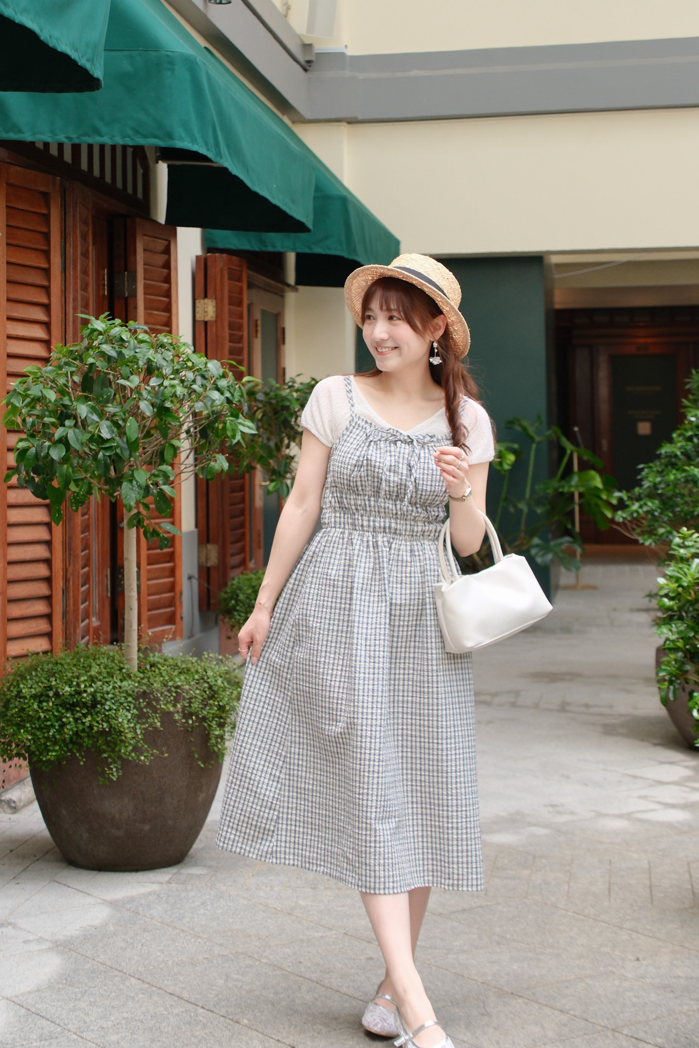 肩帶可調小格紋束腰吊帶裙 (淺色/深色) OPS189