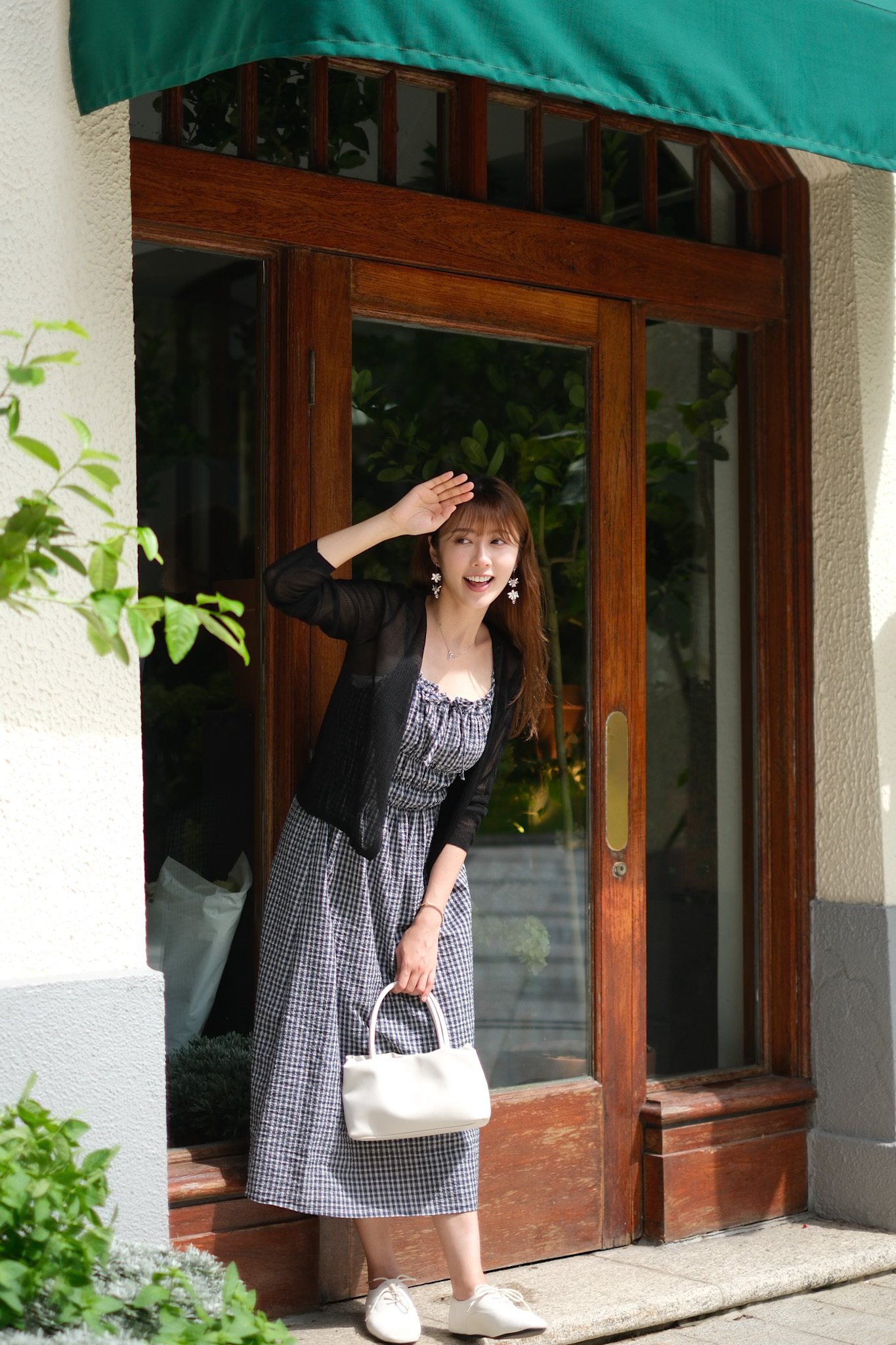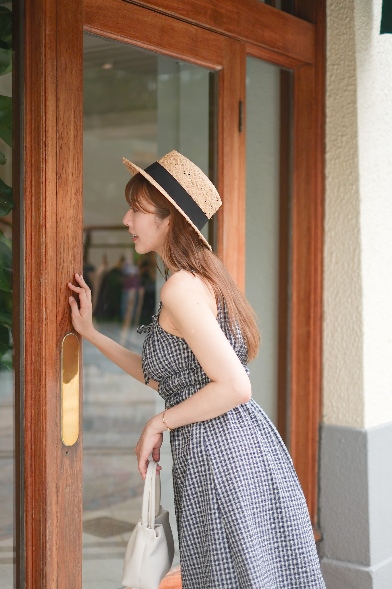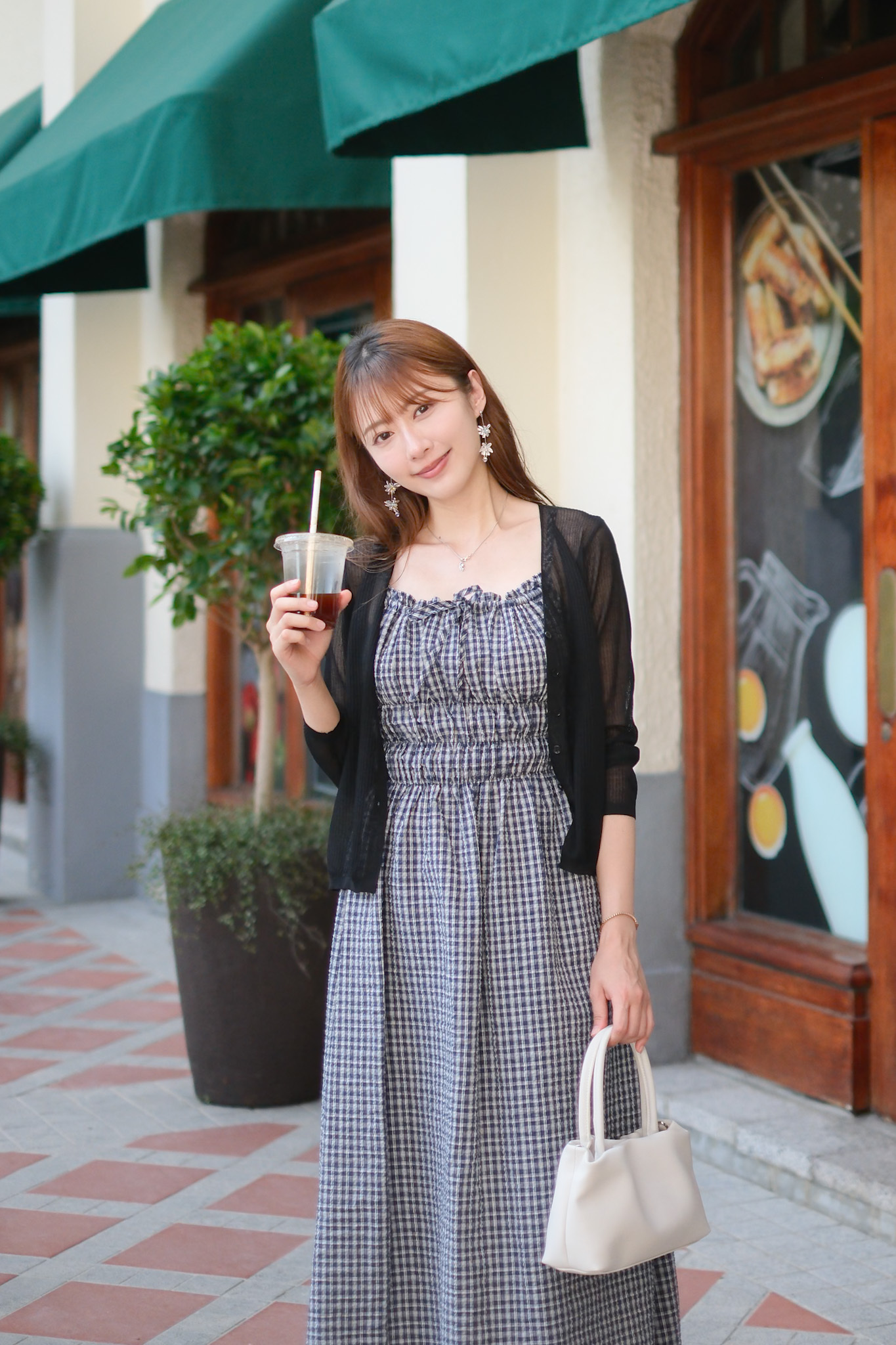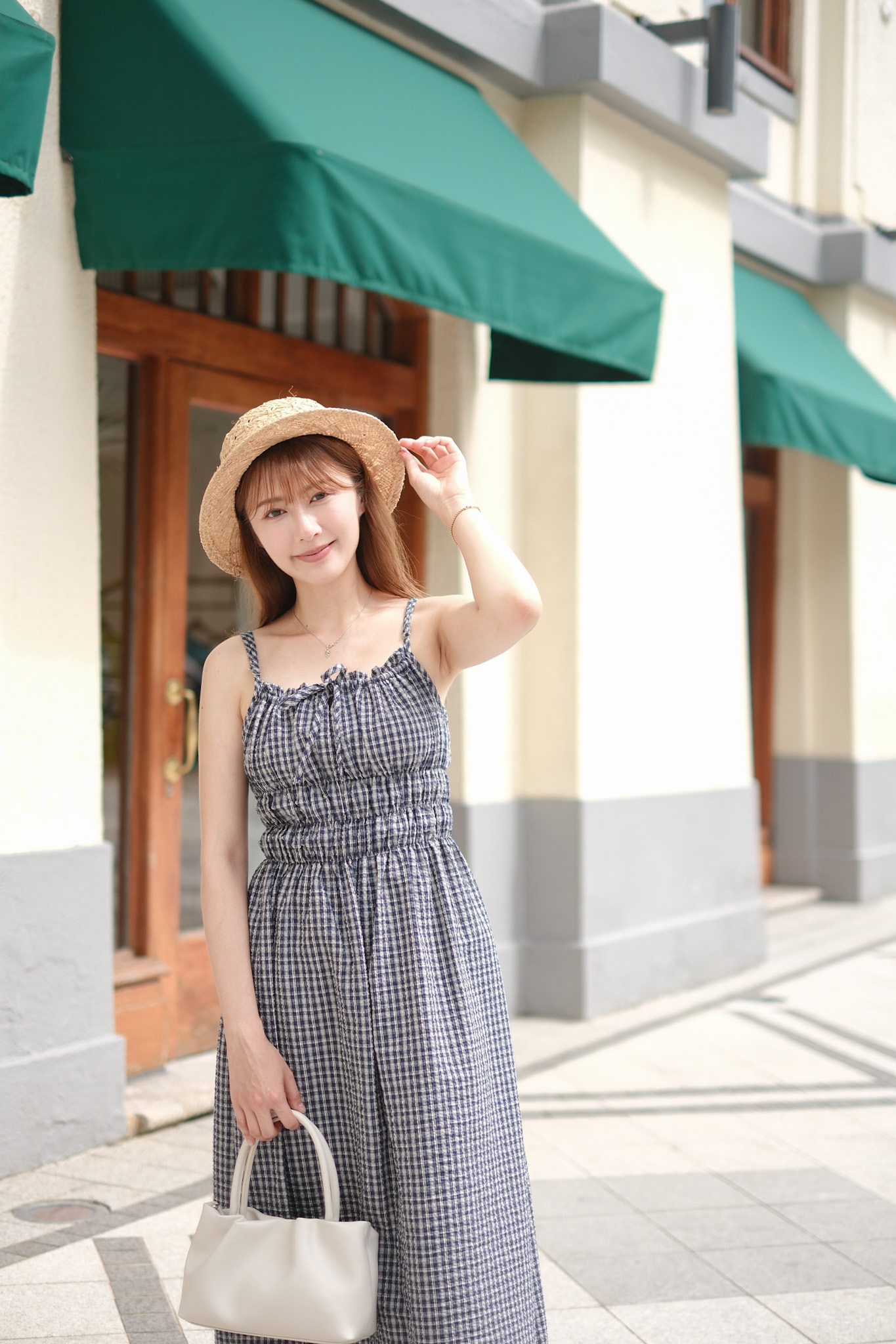 肩帶可調小格紋束腰吊帶裙 (淺色/深色) OPS189