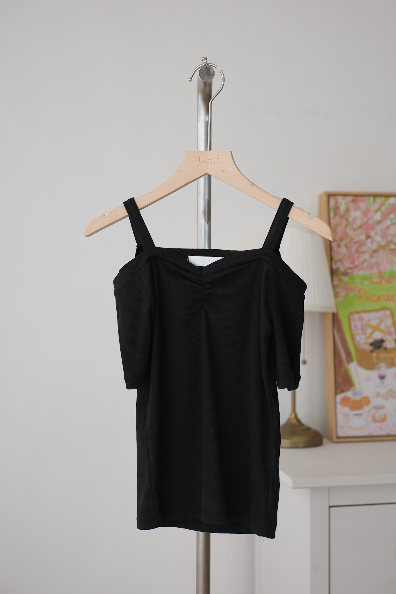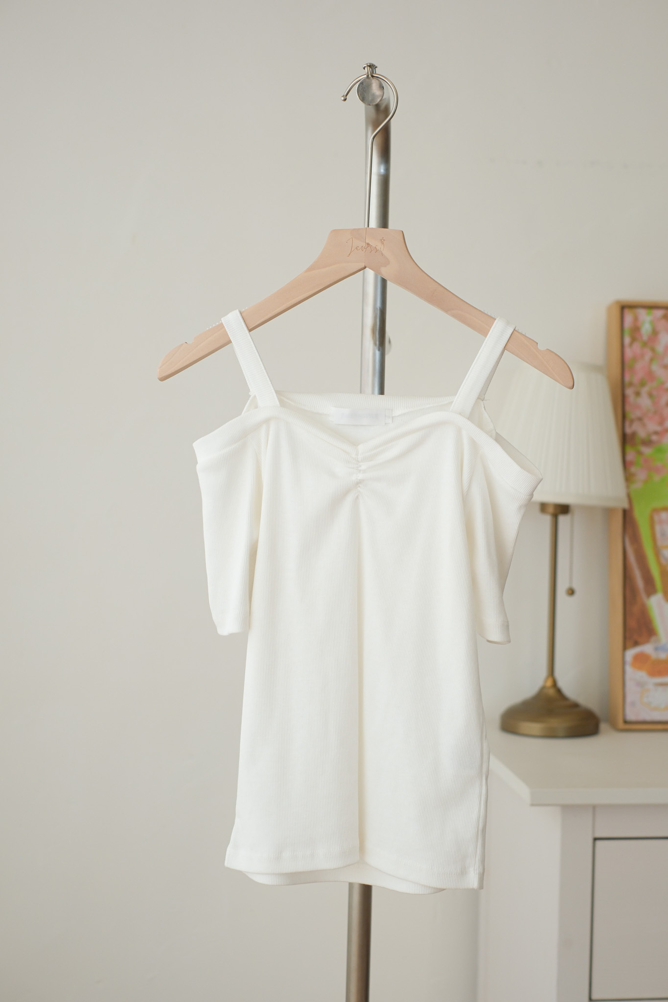 小露肩吊帶修身上衣 (純白/黑) TOP541