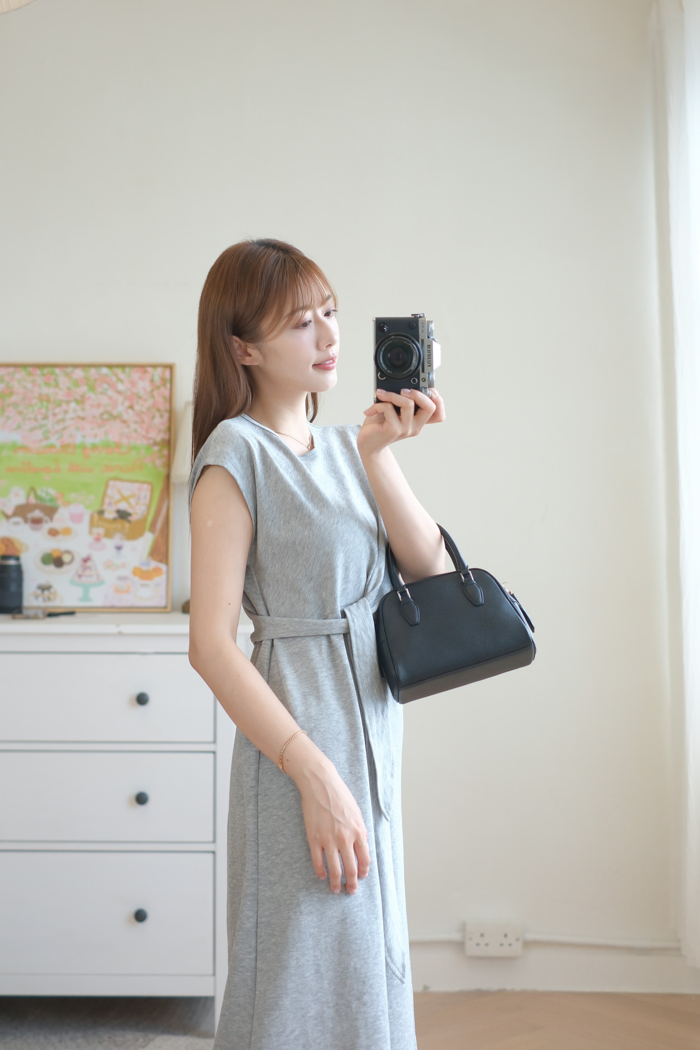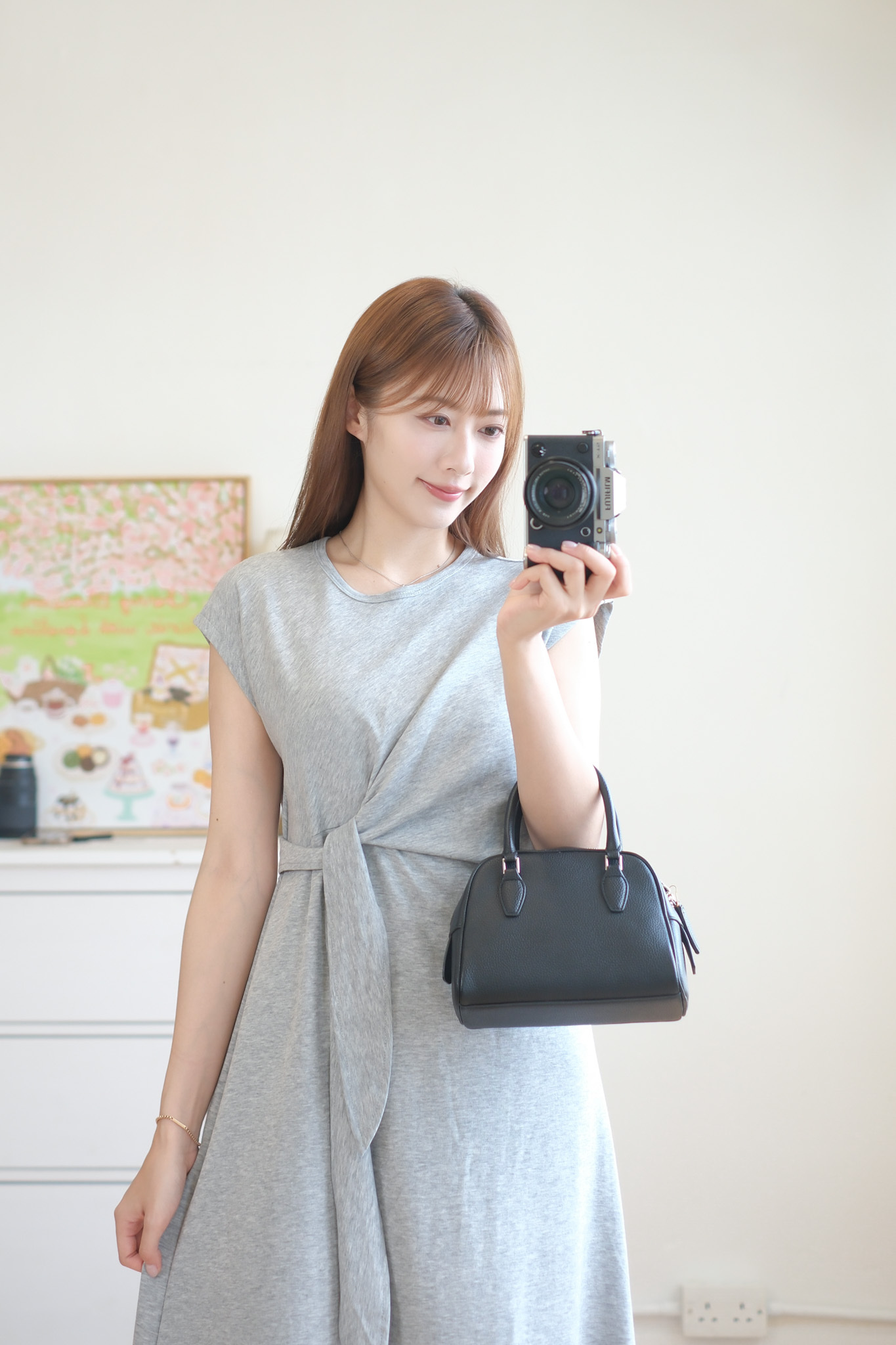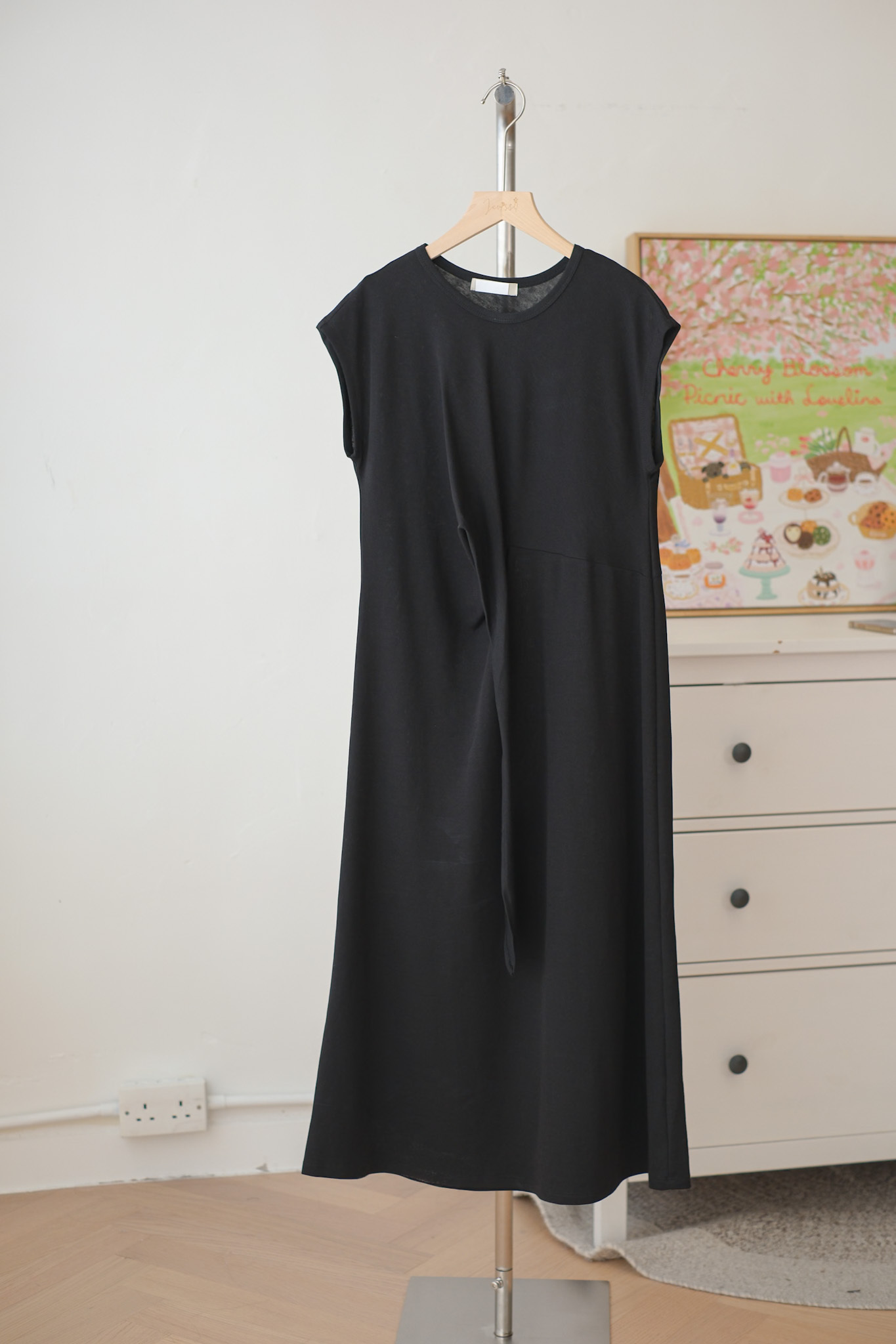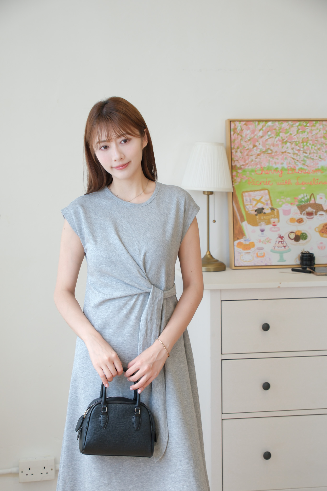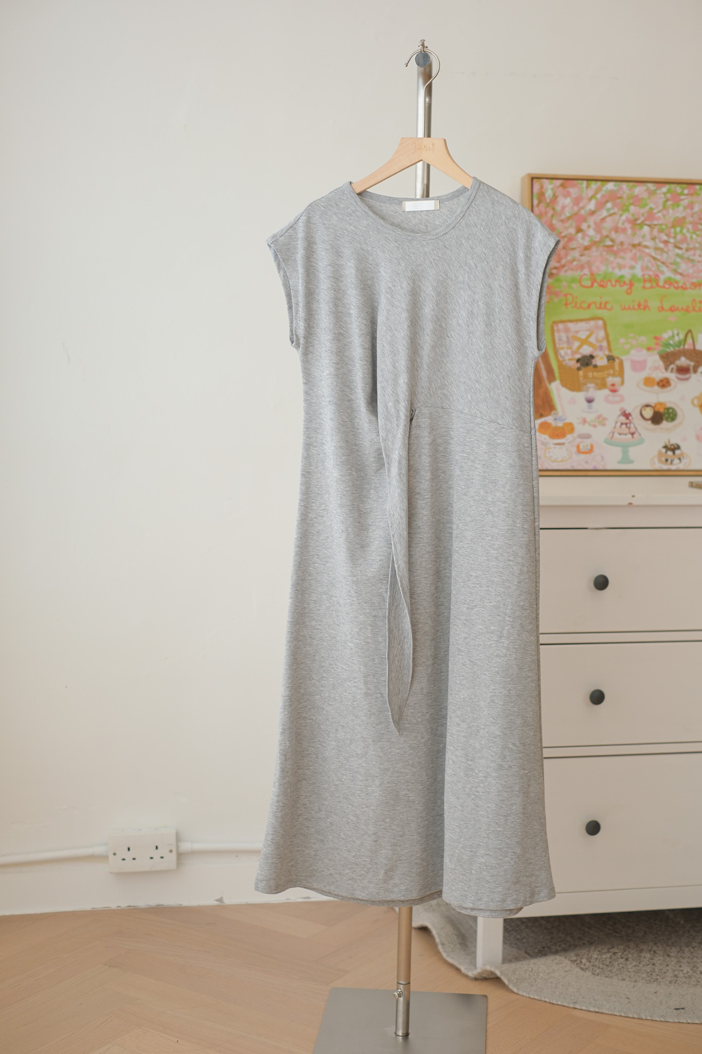 腰綁結隨性休閒連身裙 (灰/黑) OPS196