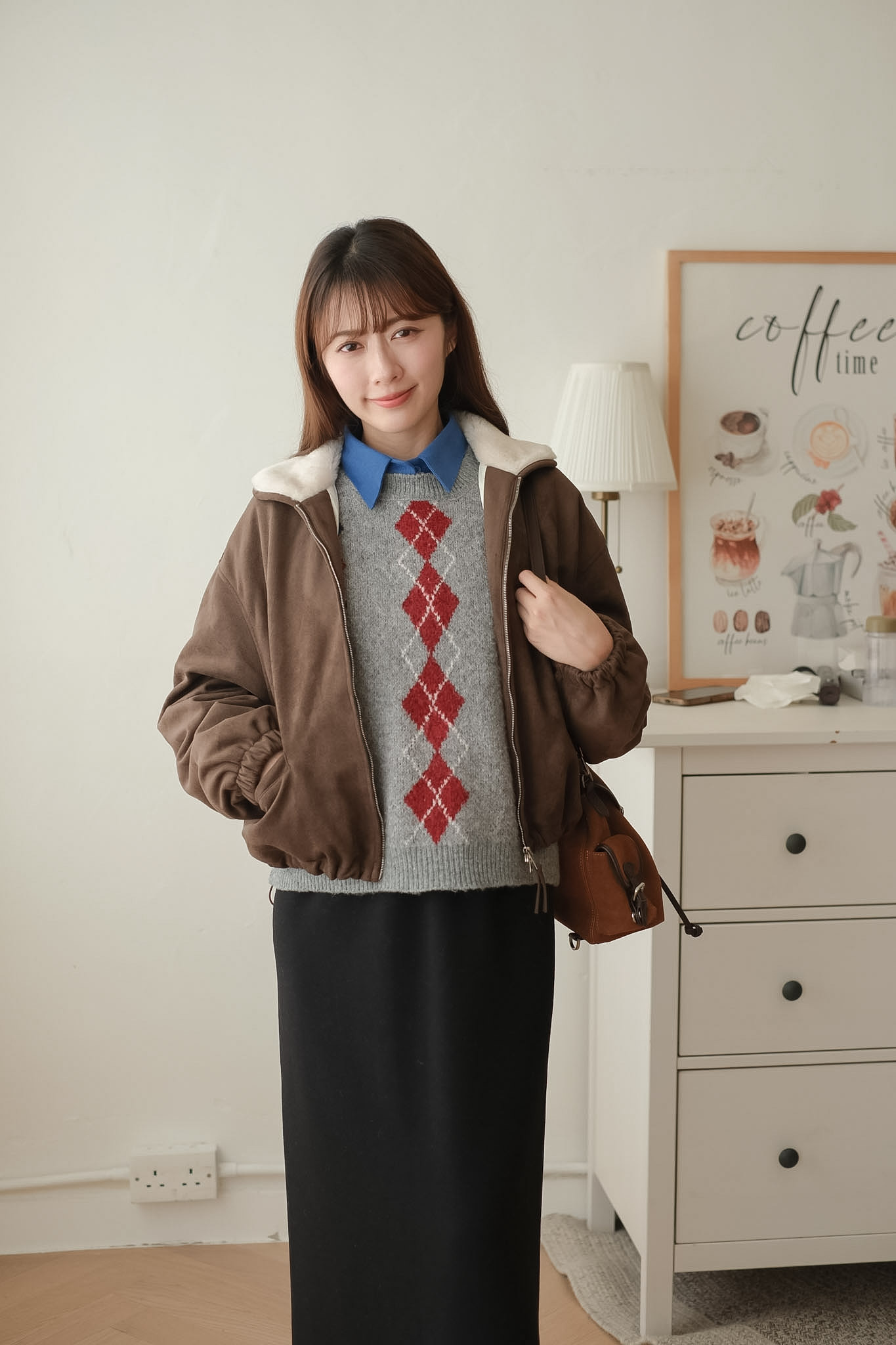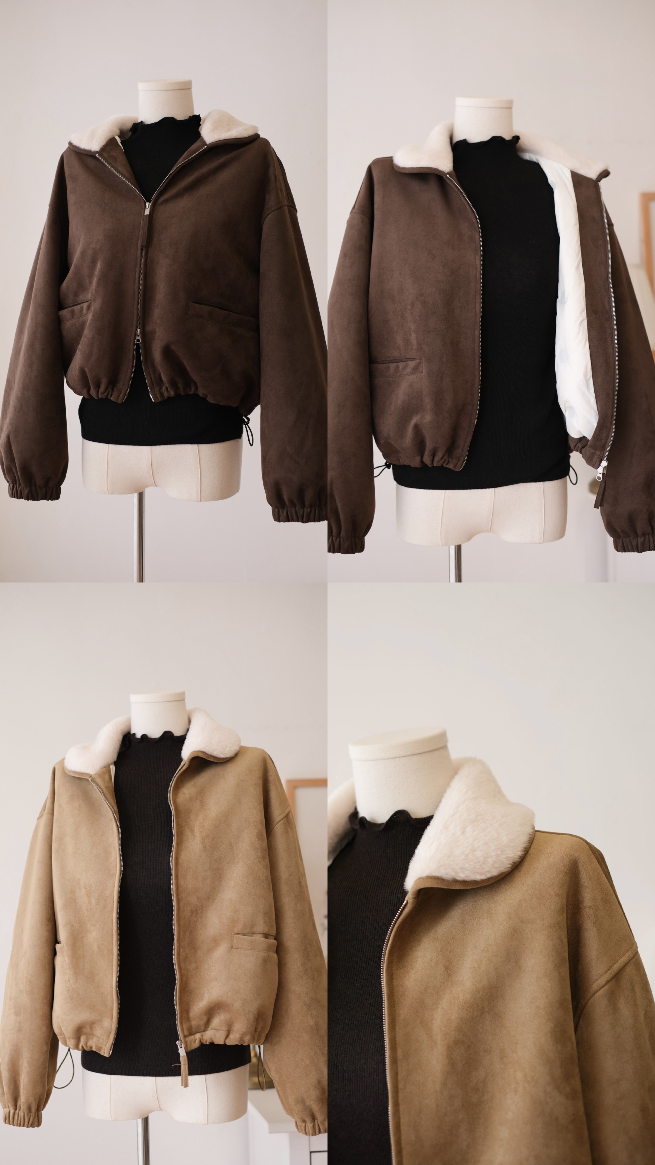 毛毛反領夾棉猄皮外套 (姜餅/深棕) Top582