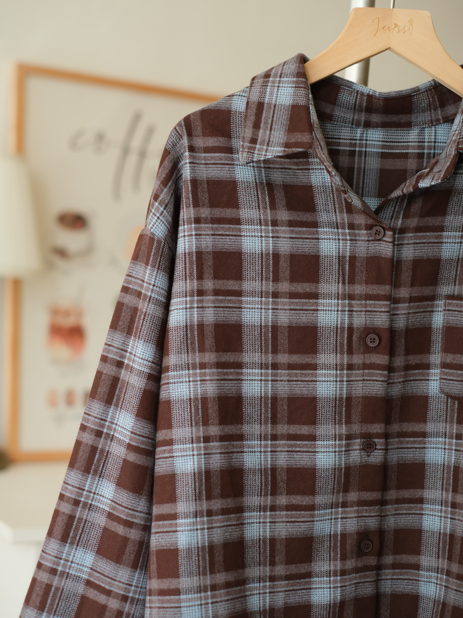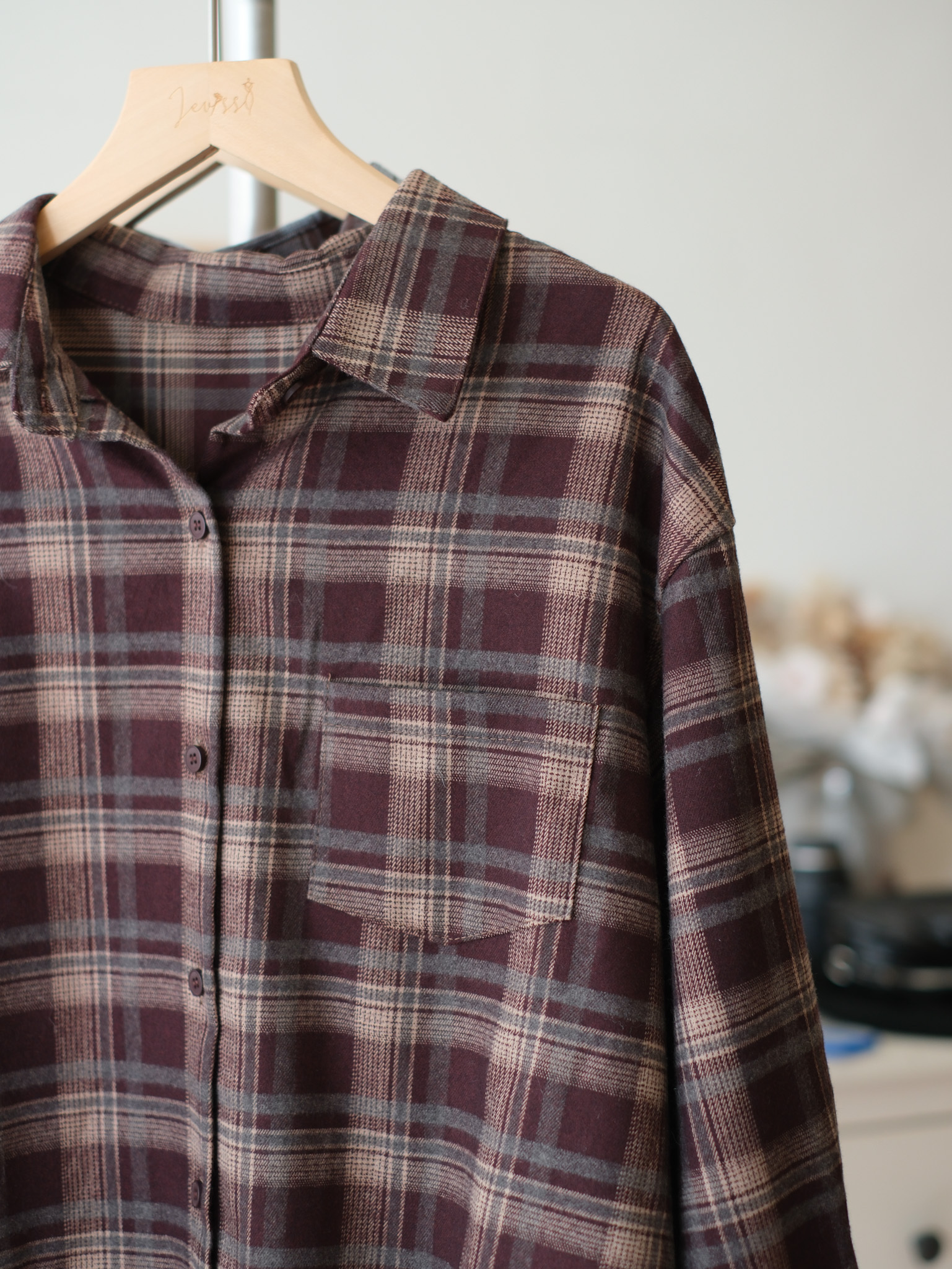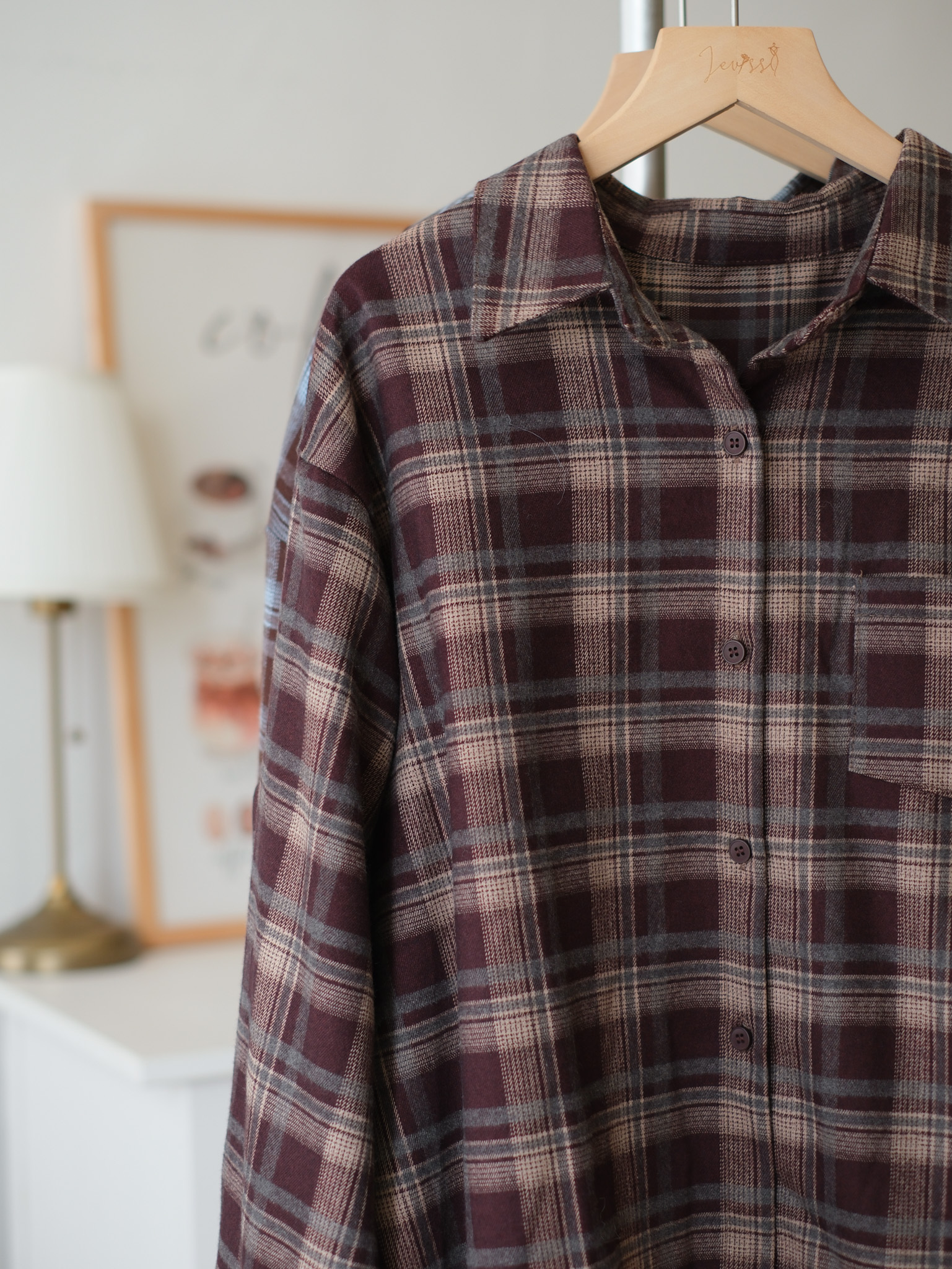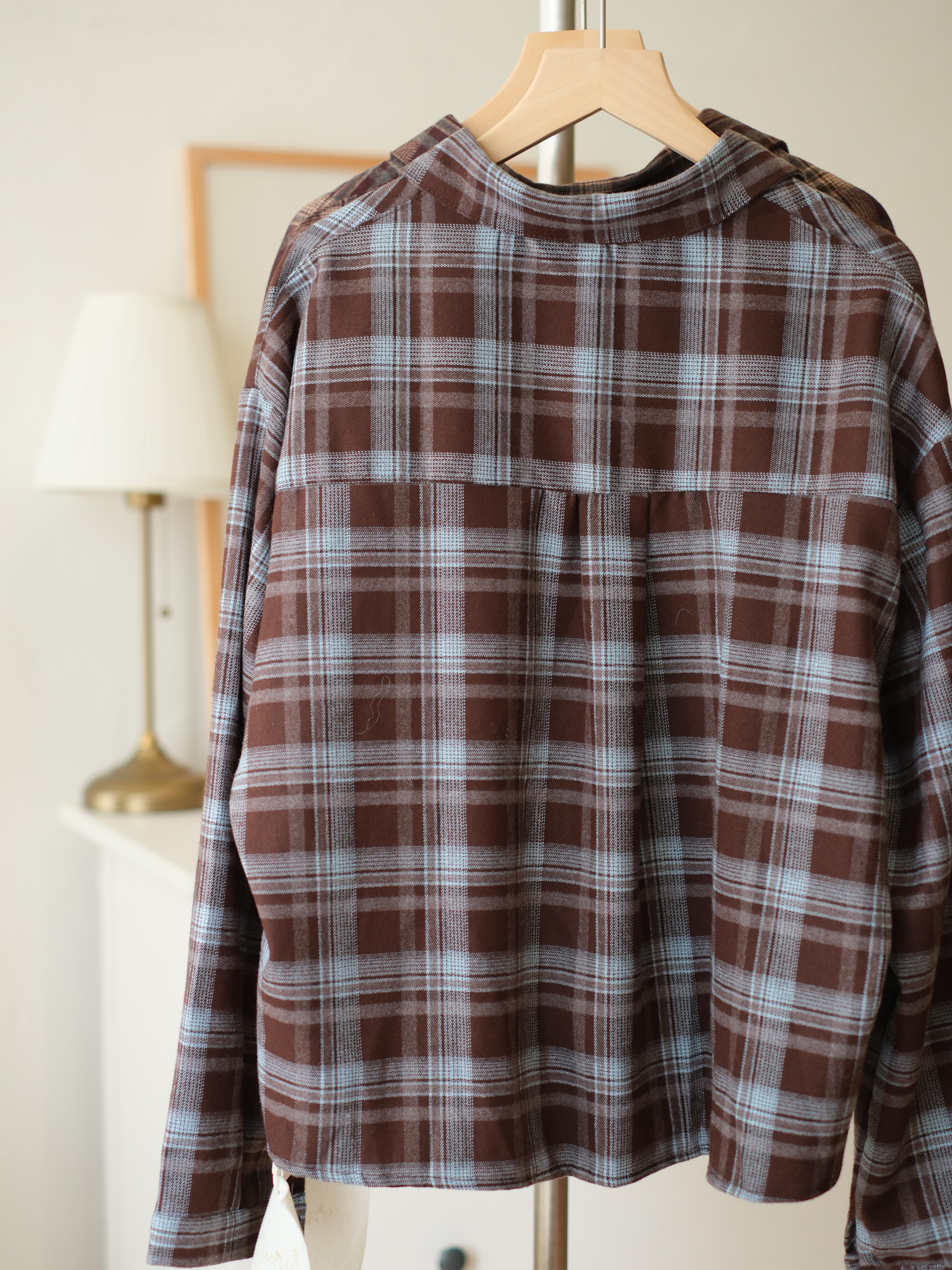 混色格紋寬鬆感襯衣 (混紅/混藍) Top589