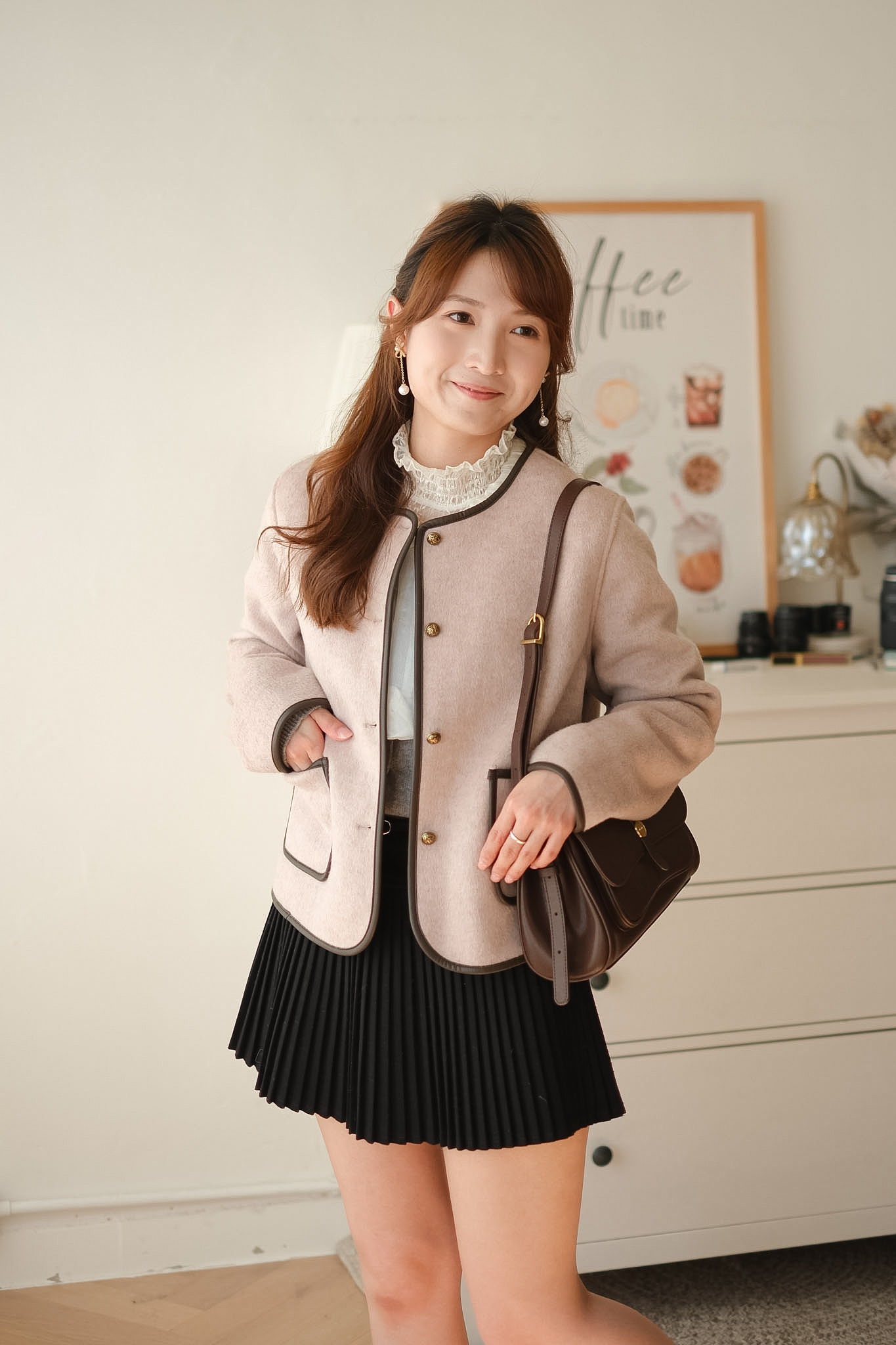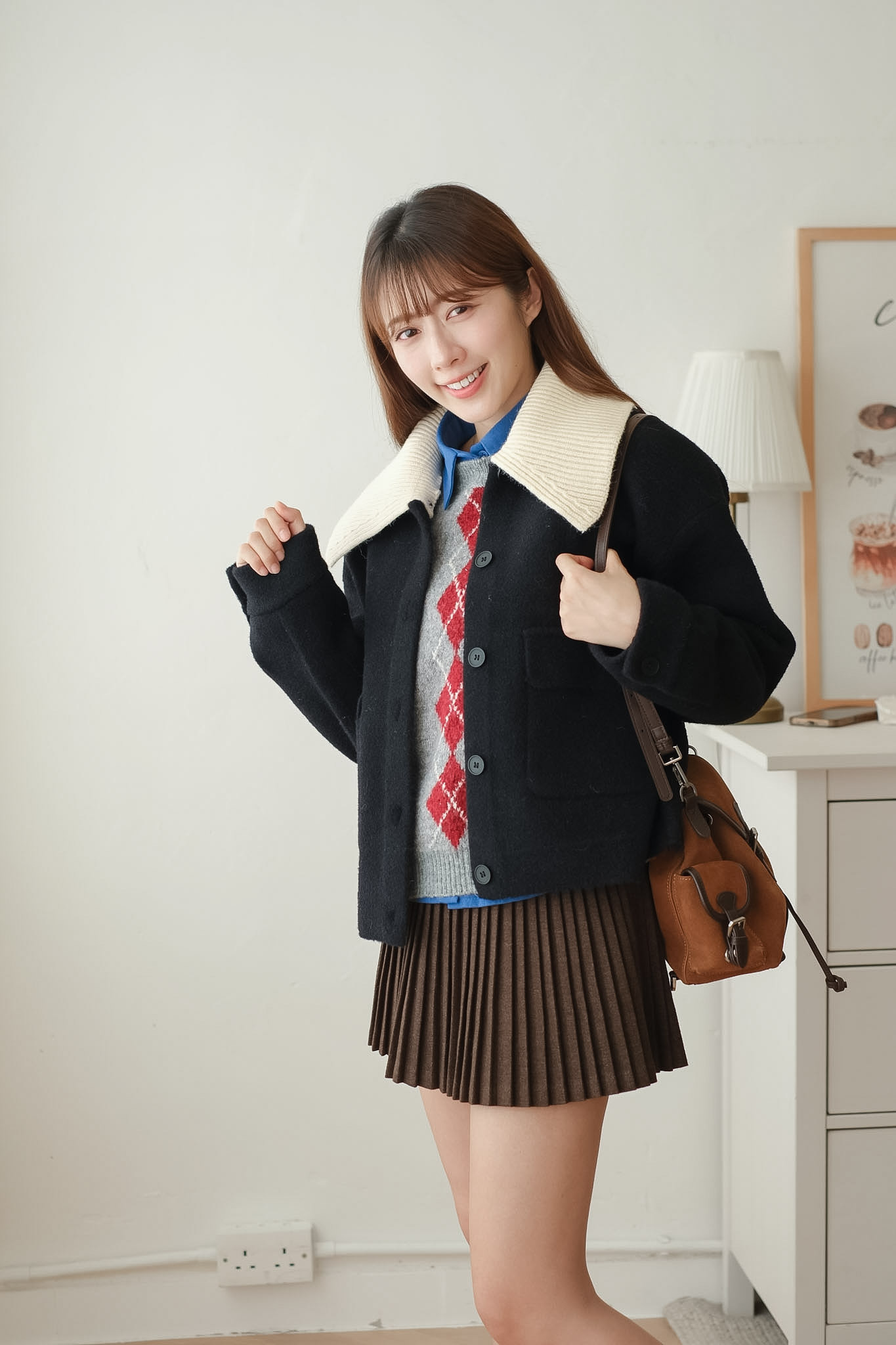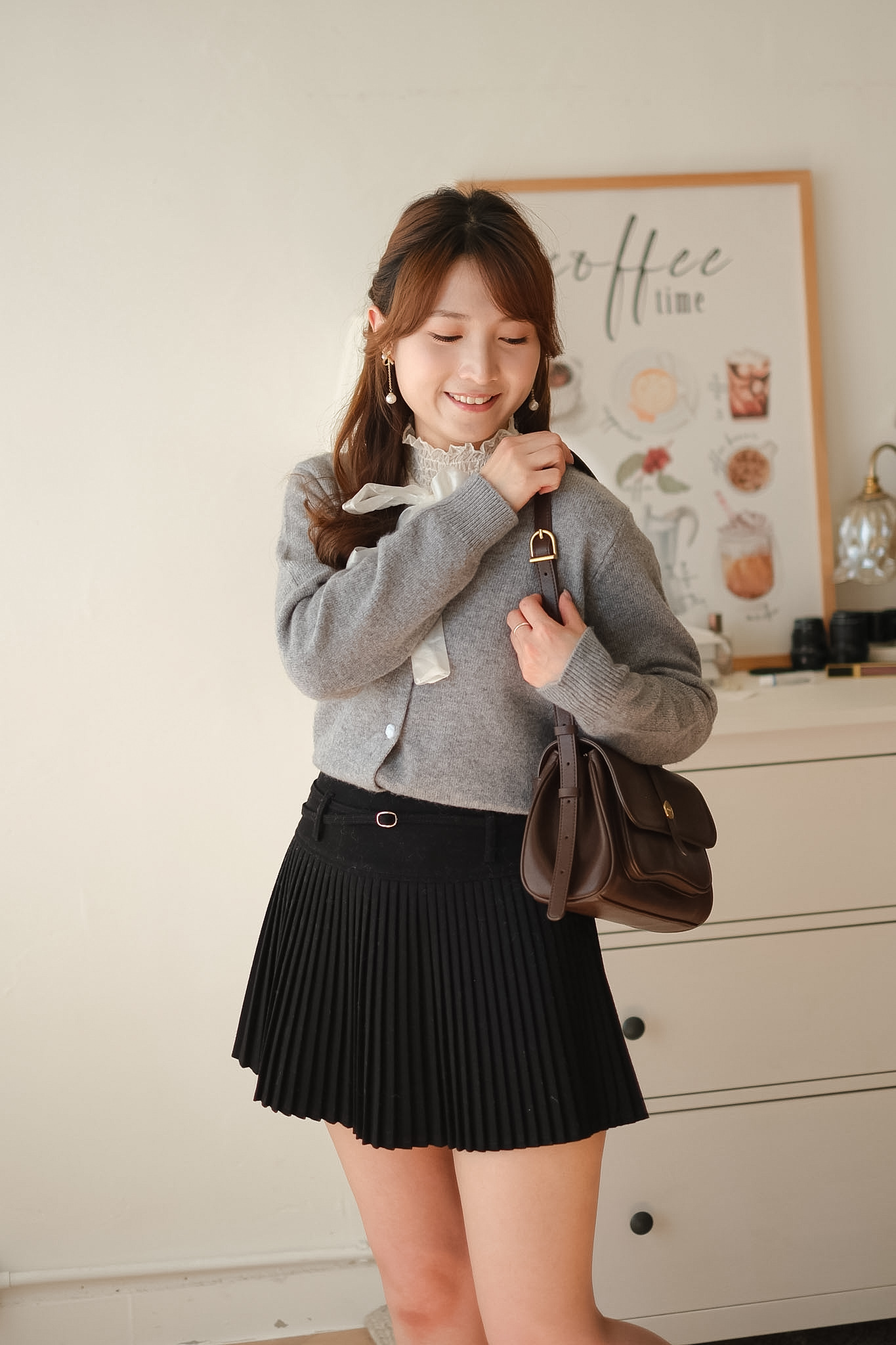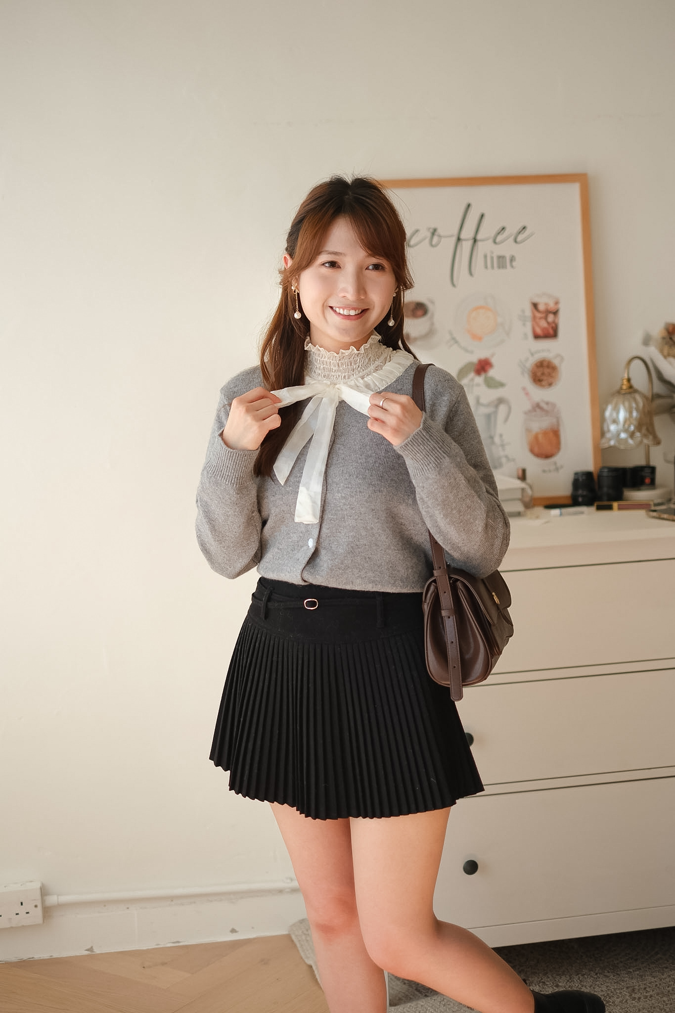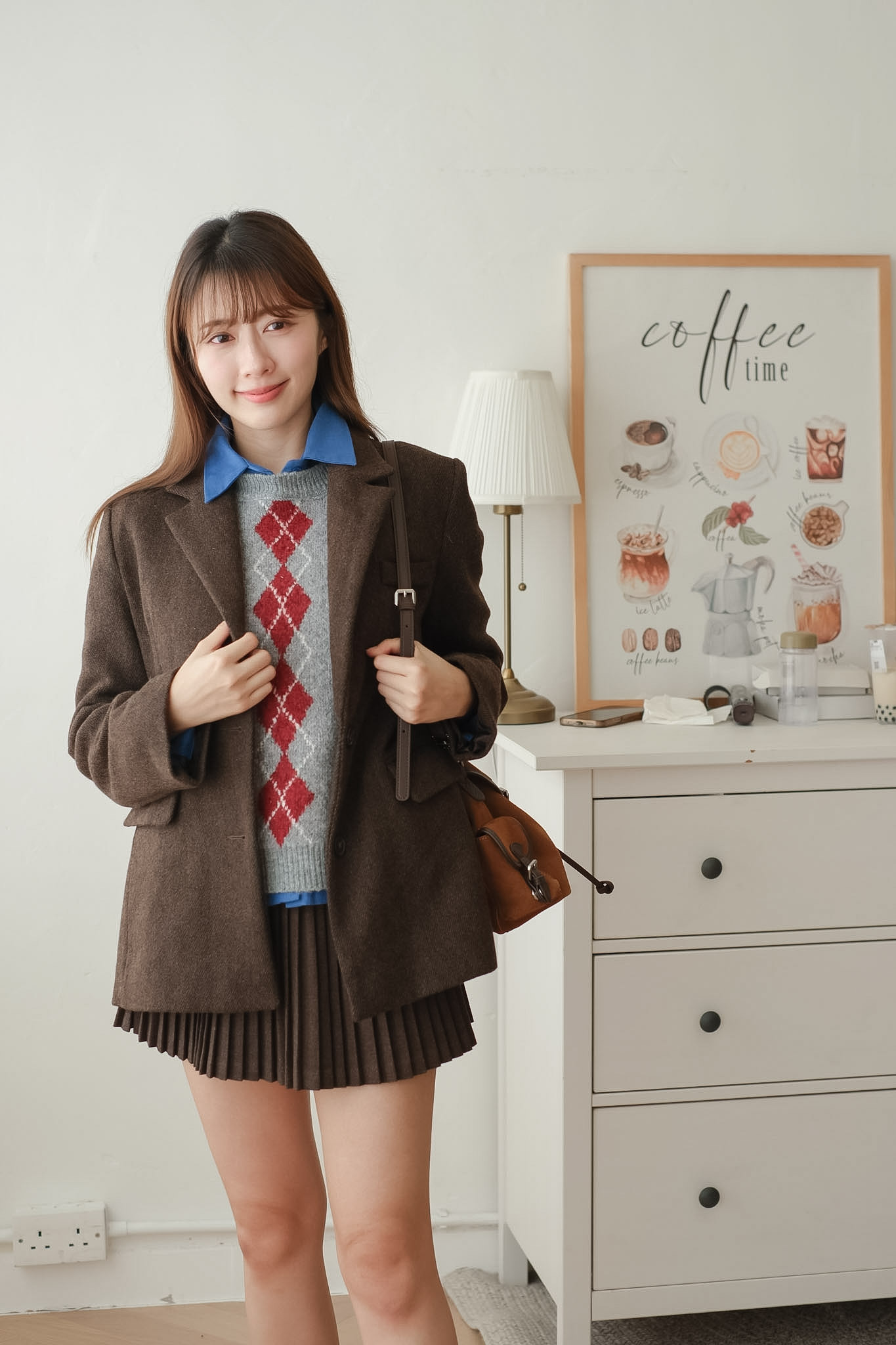 百搭!校園風壓紋短裙 (深棕/黑) BT437