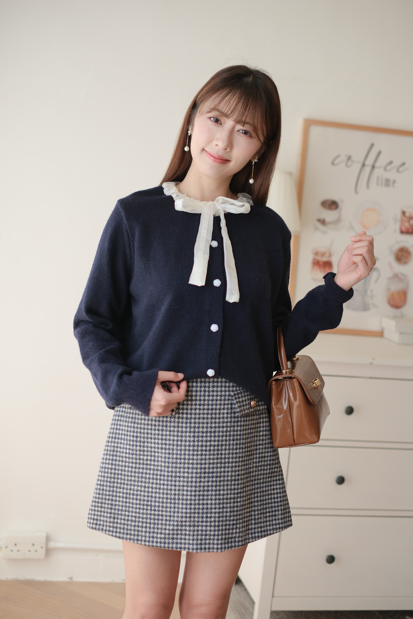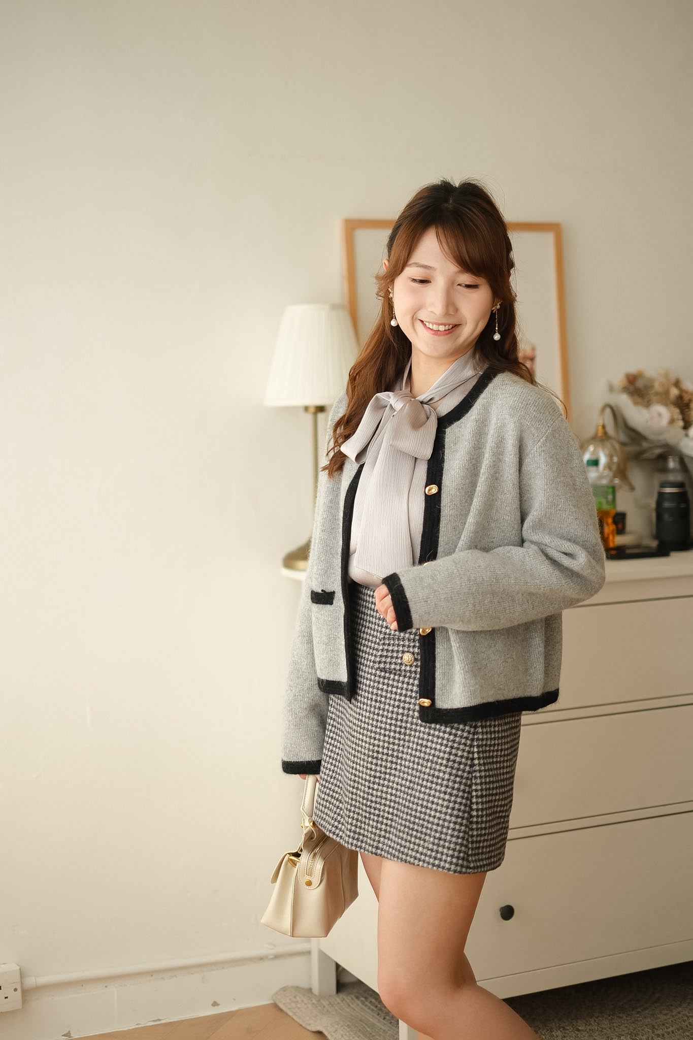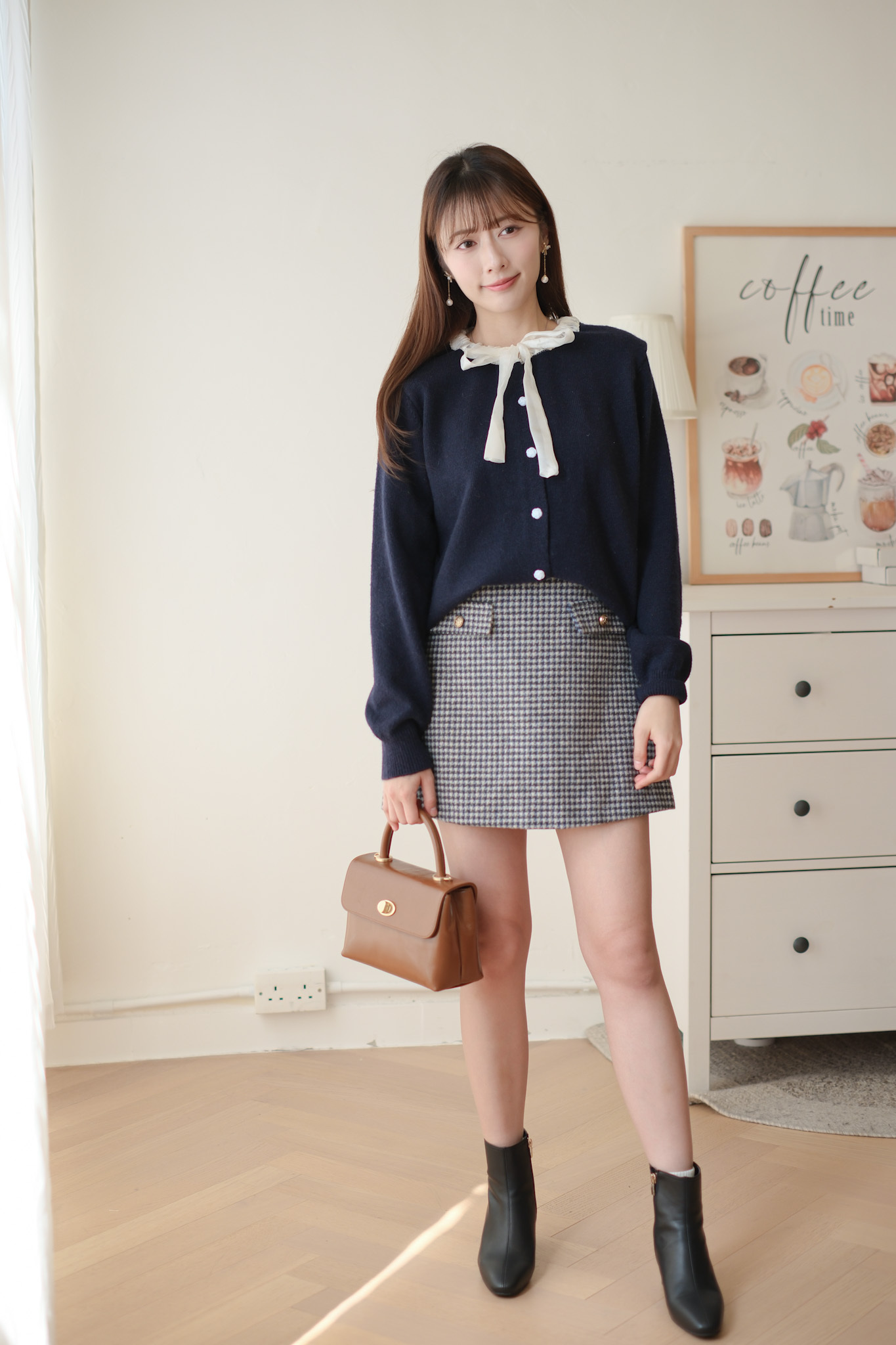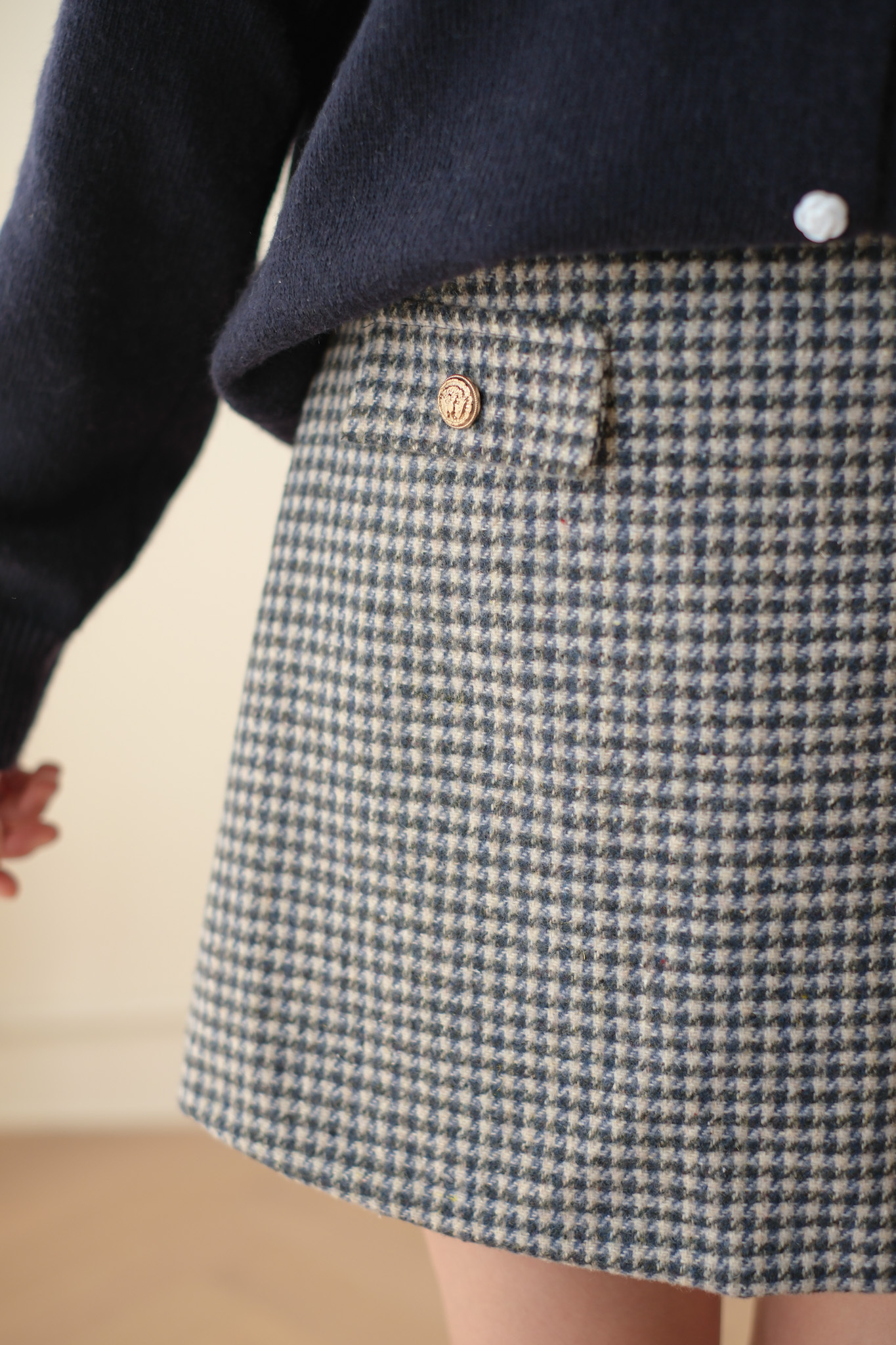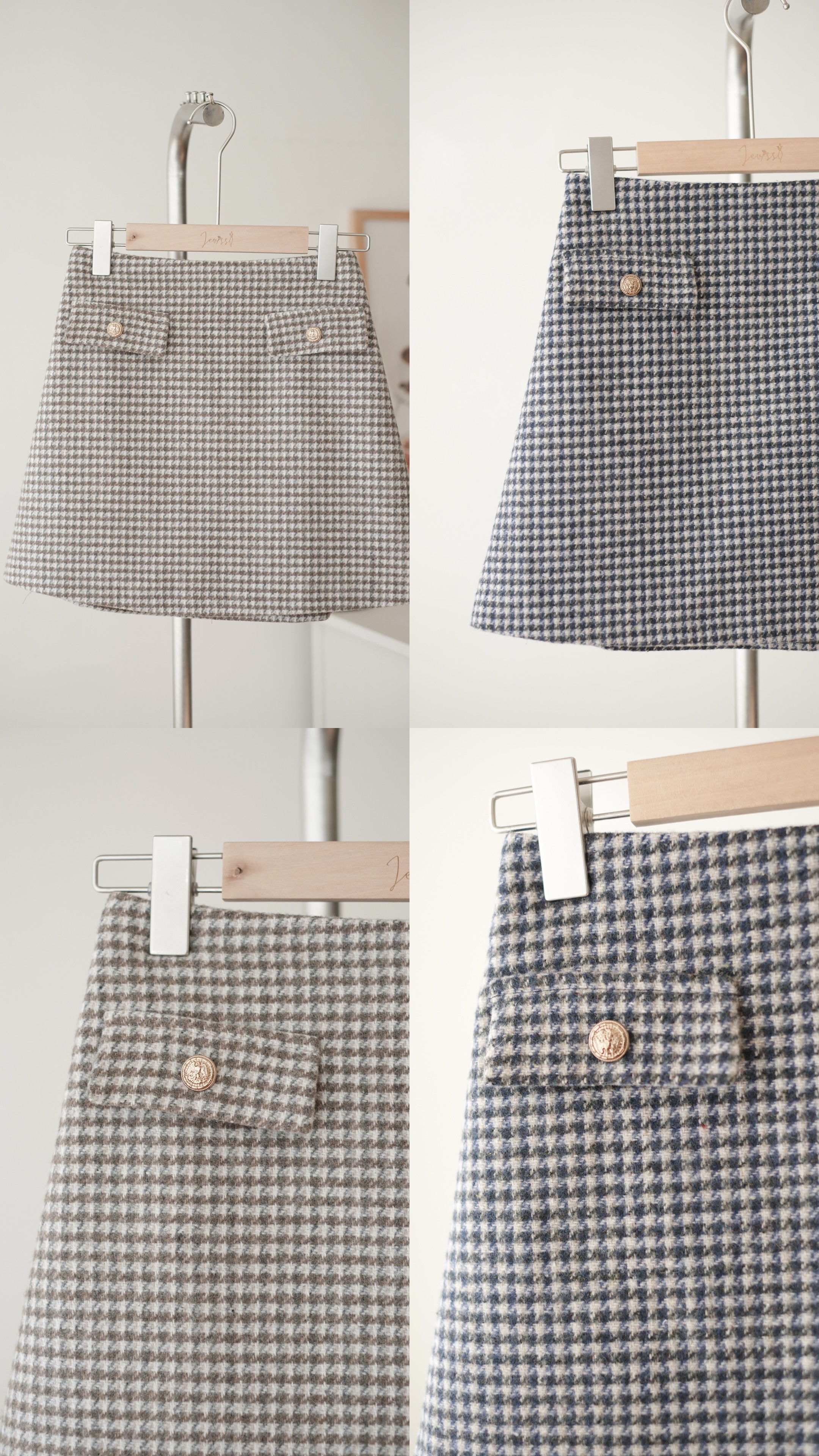 假口袋傘形氣質短裙 (混杏/混藍黑) BT438