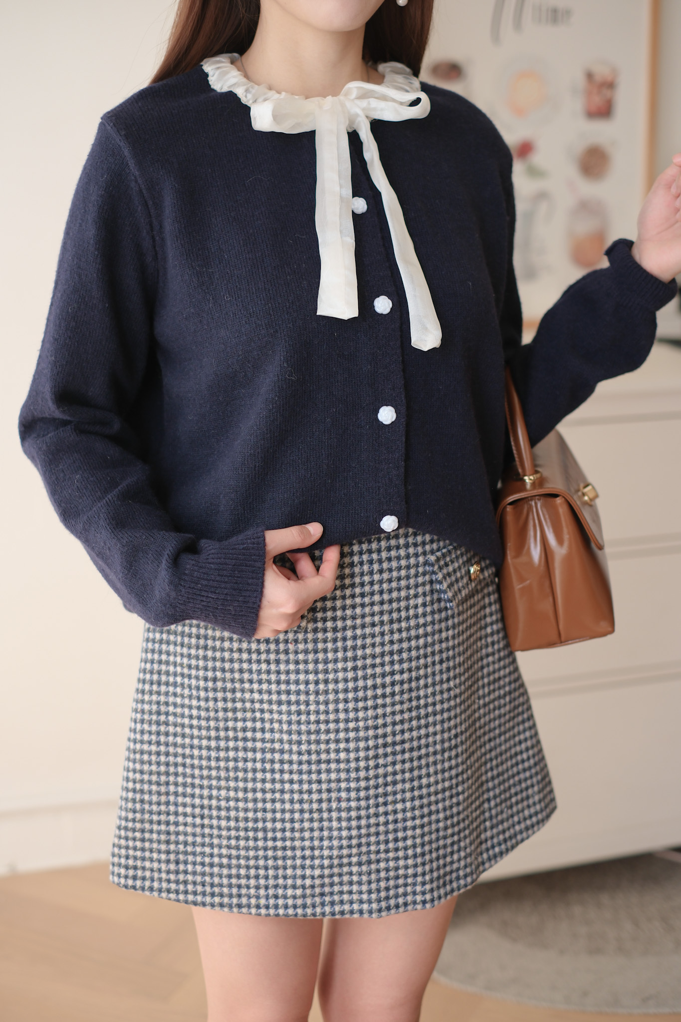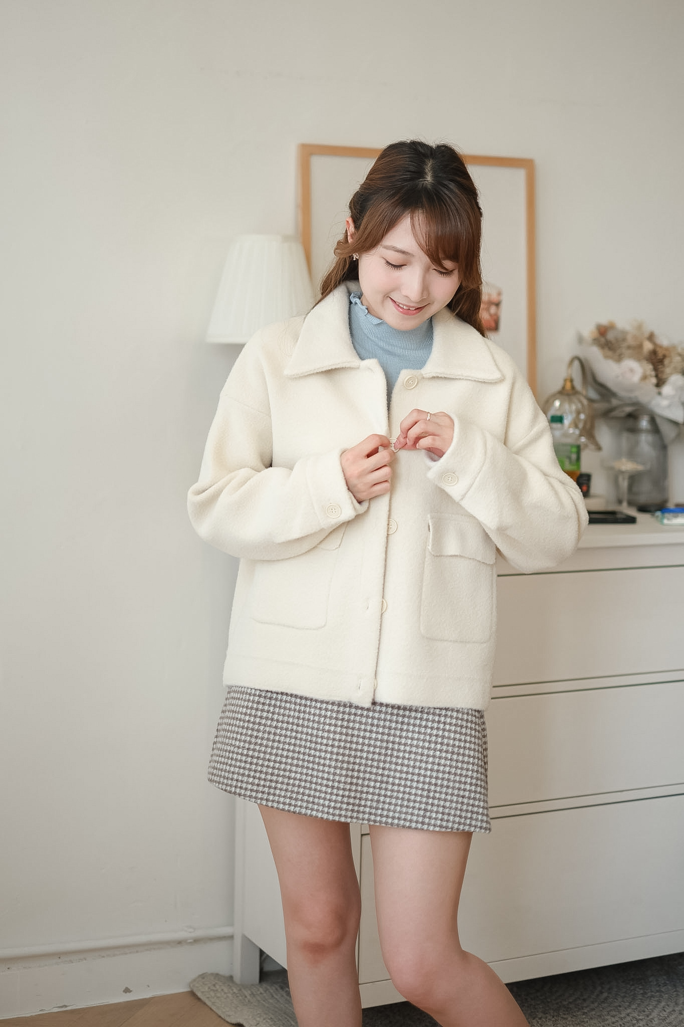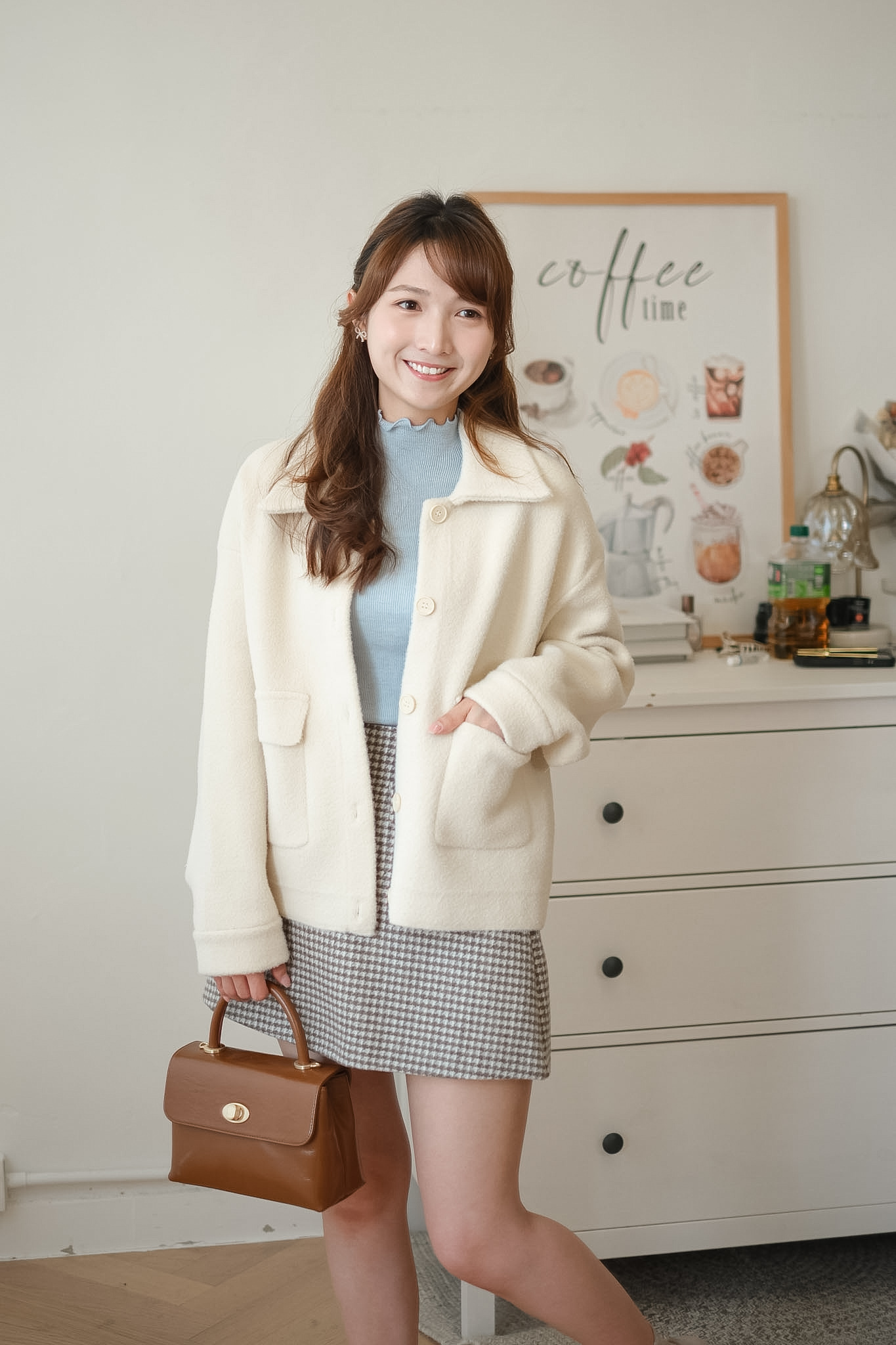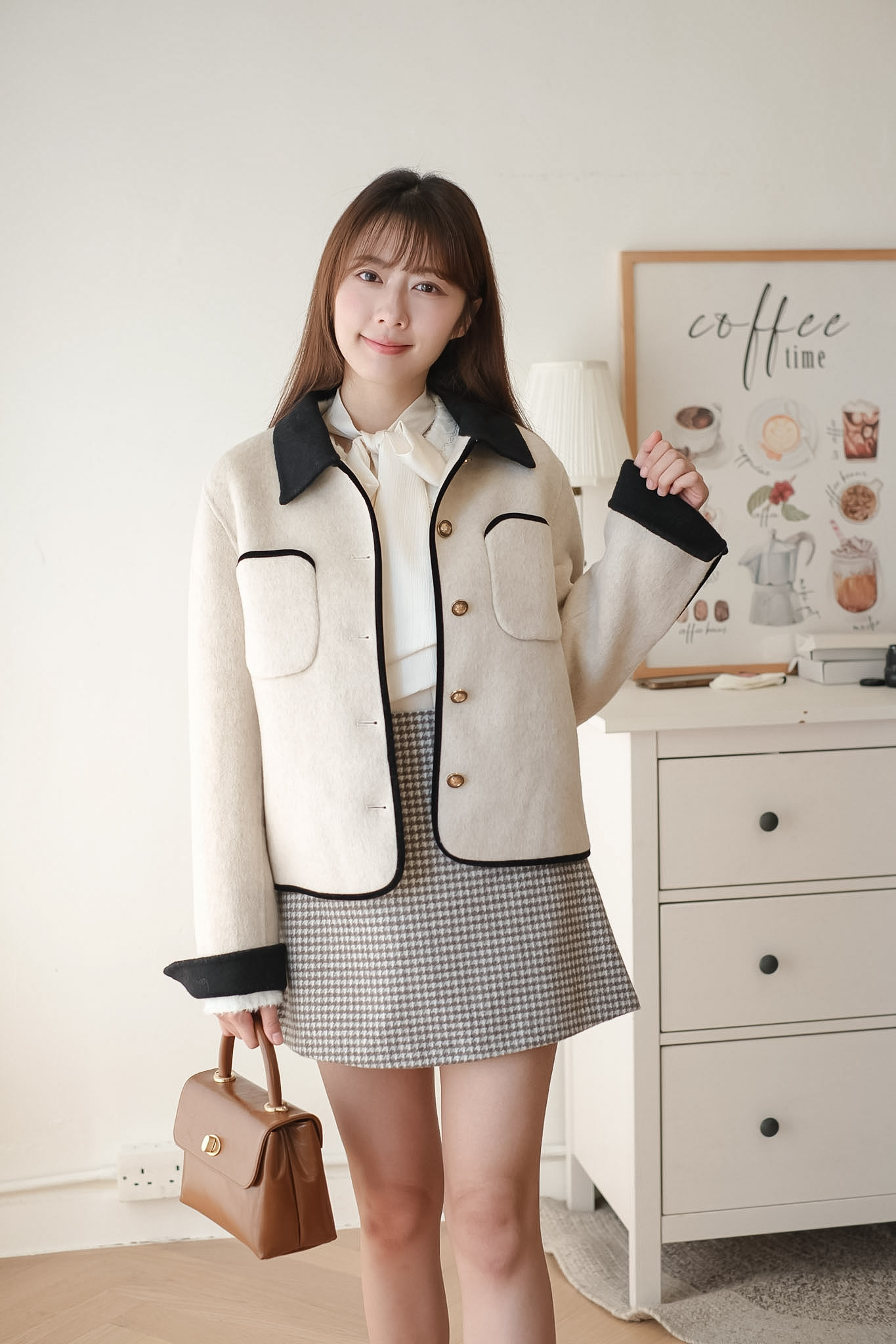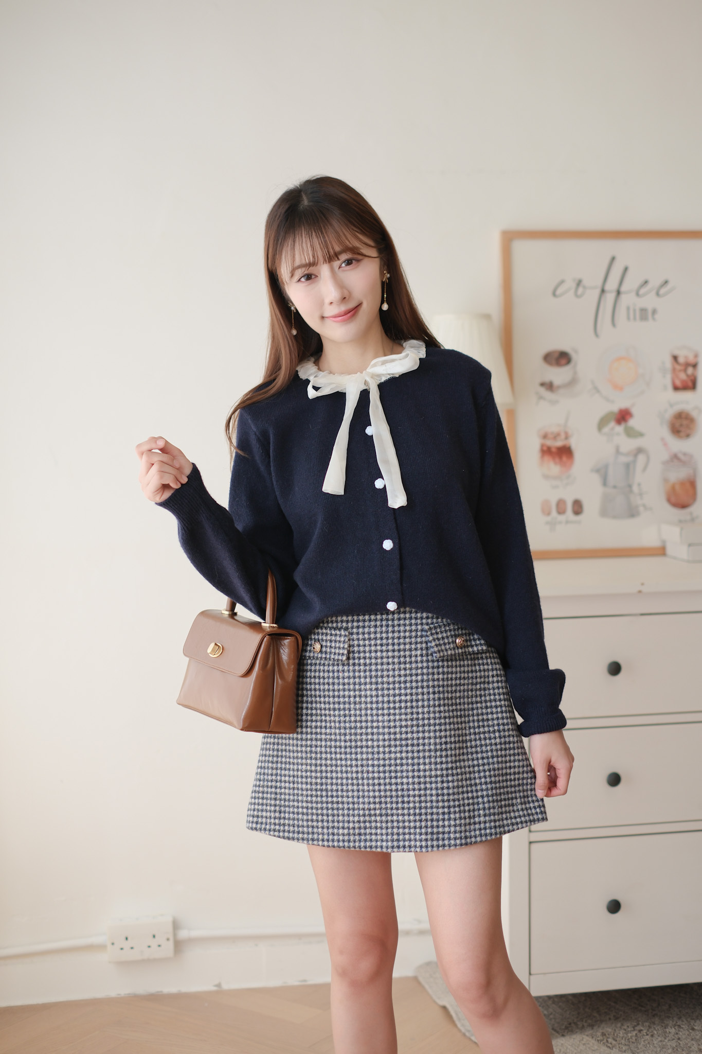 假口袋傘形氣質短裙 (混杏/混藍黑) BT438
