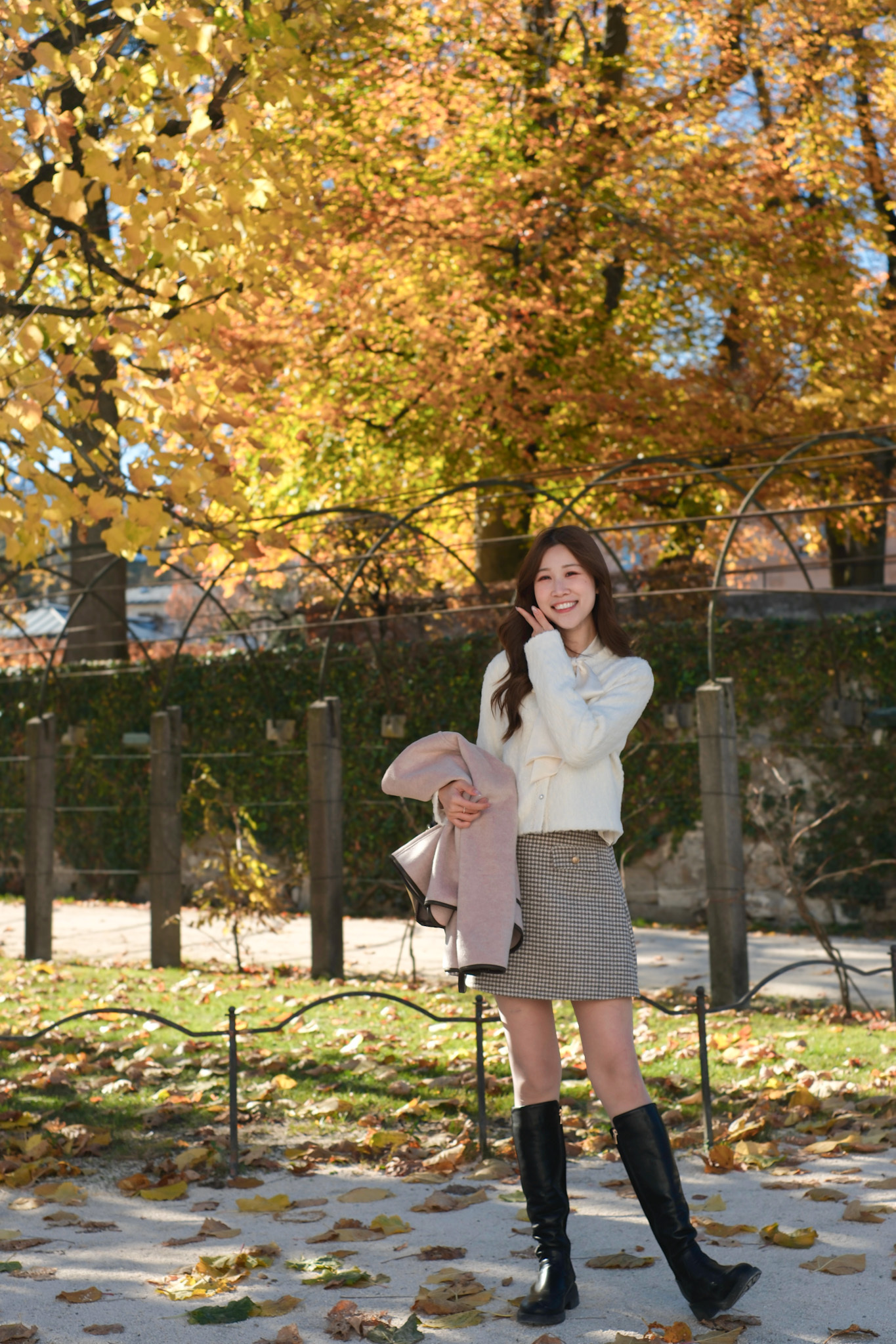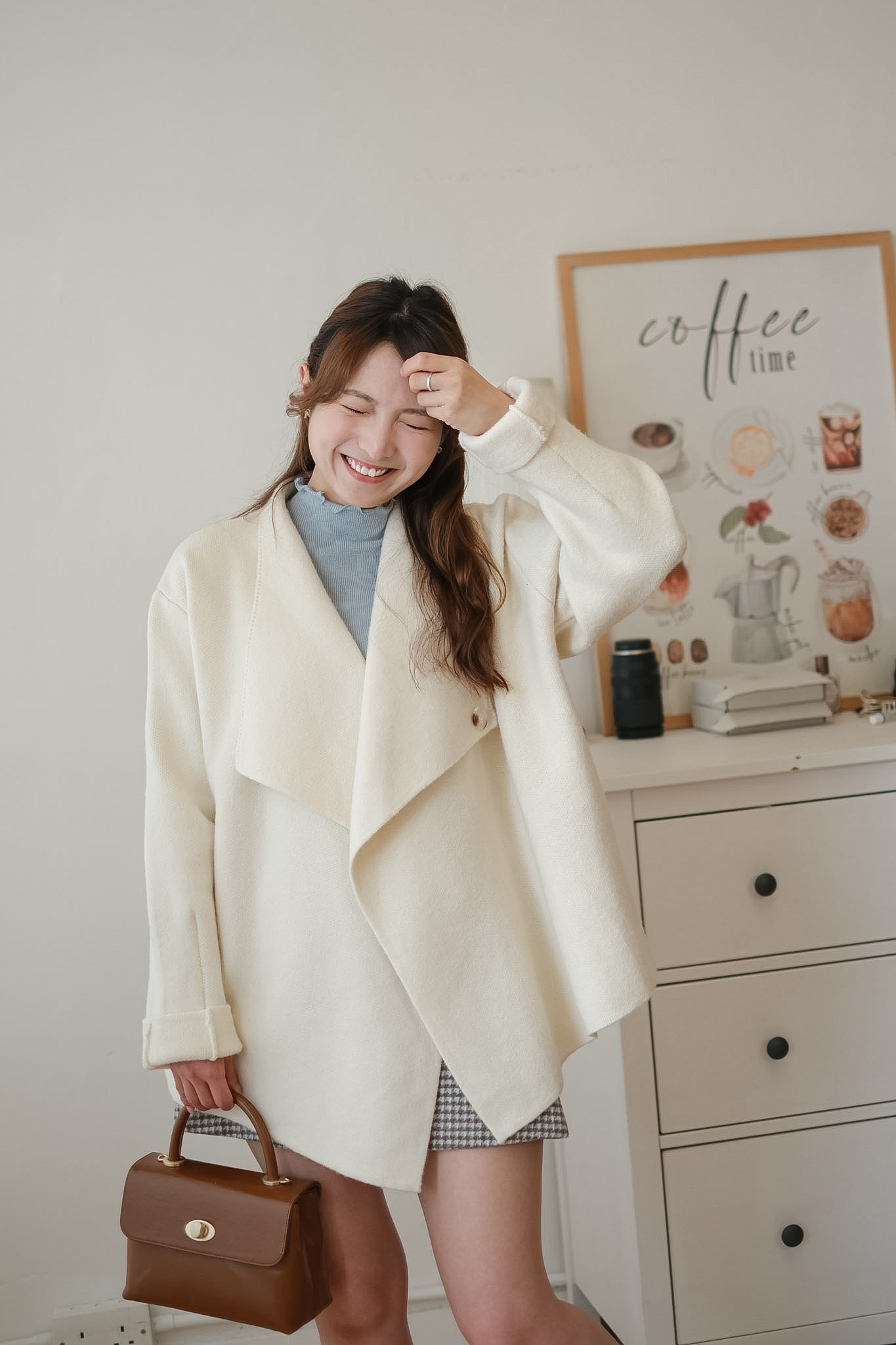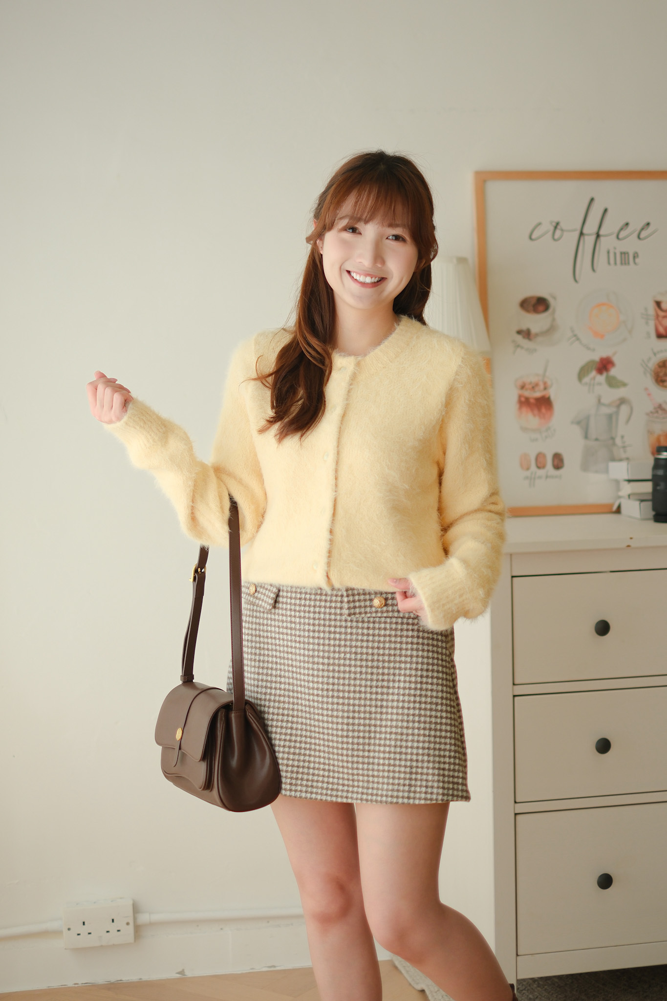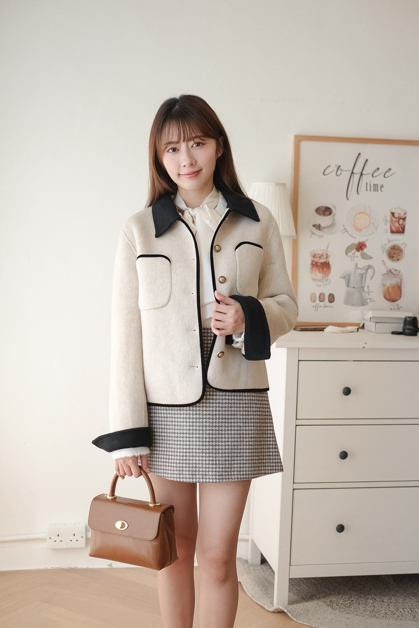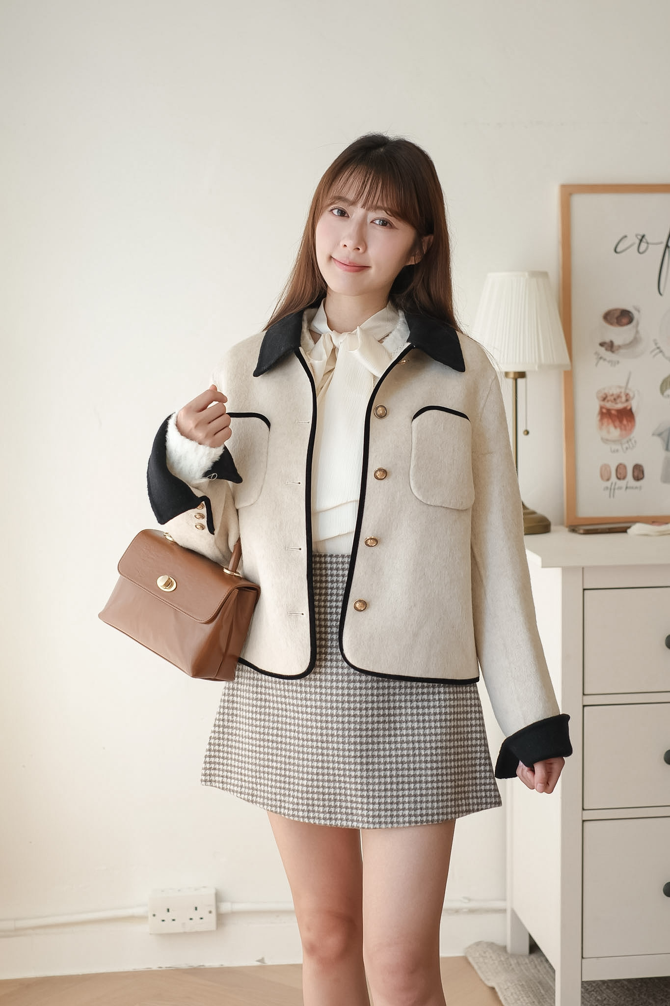 假口袋傘形氣質短裙 (混杏/混藍黑) BT438