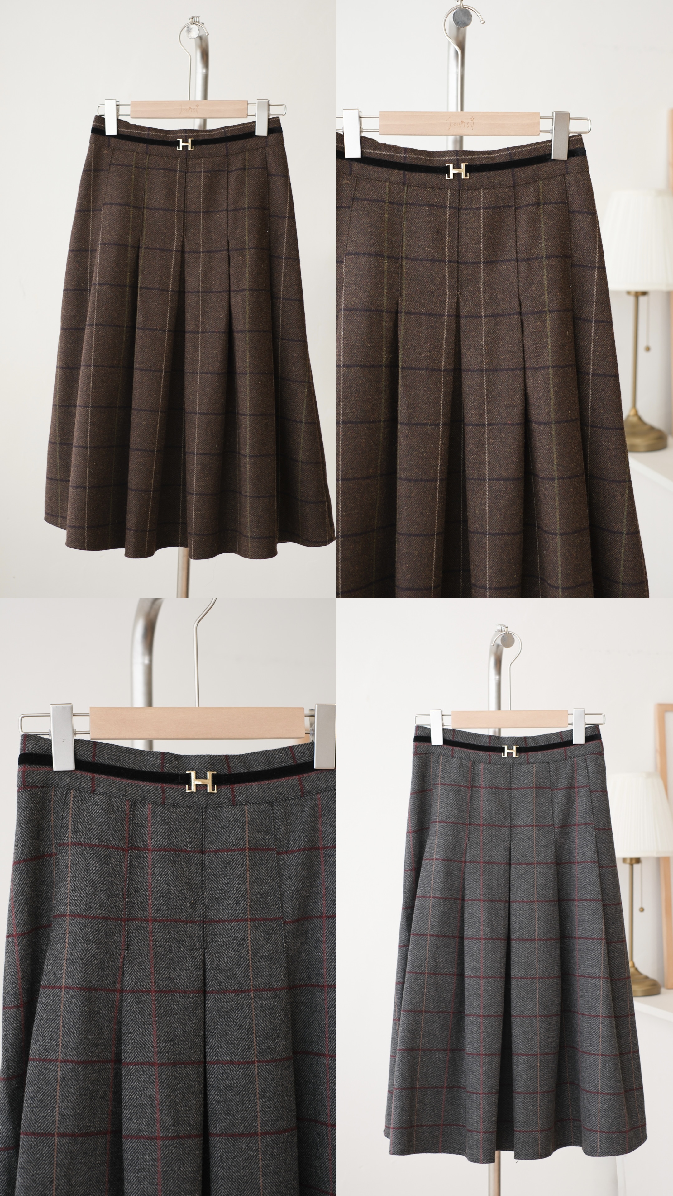 秋冬感小金扣格紋半裙 (深灰/深棕) BT441