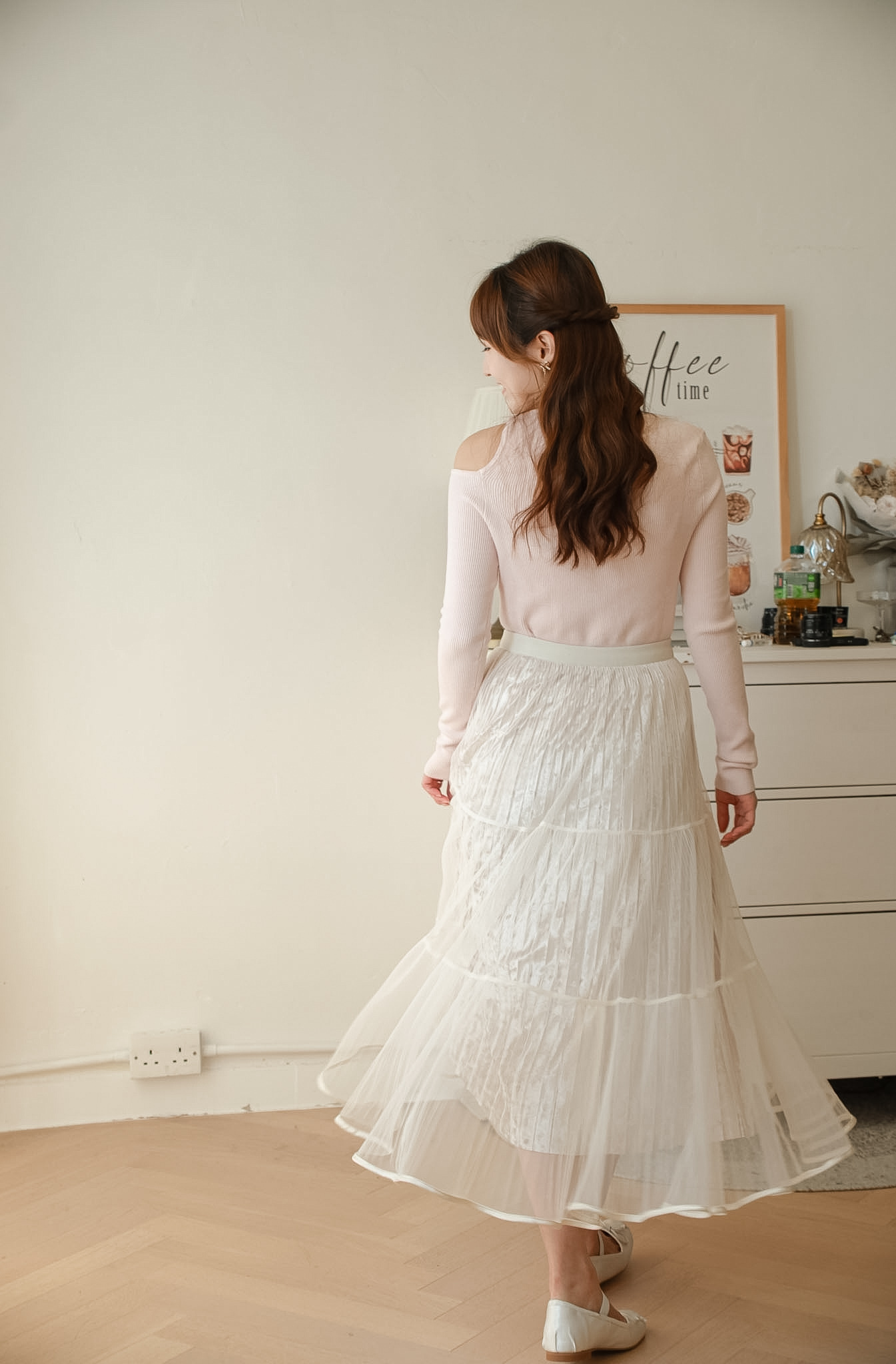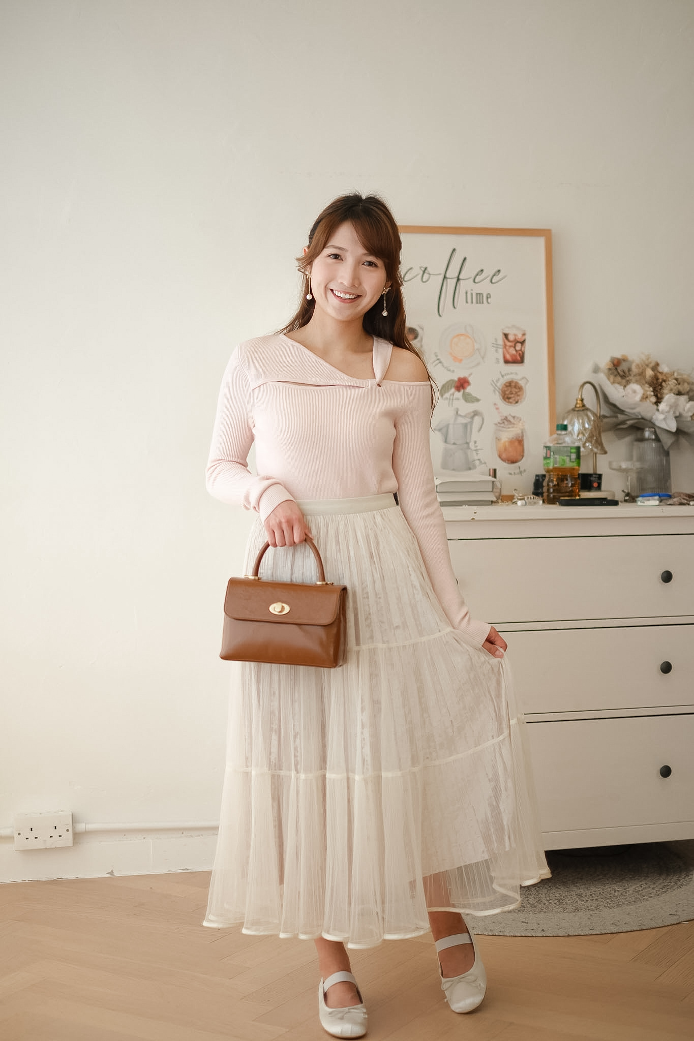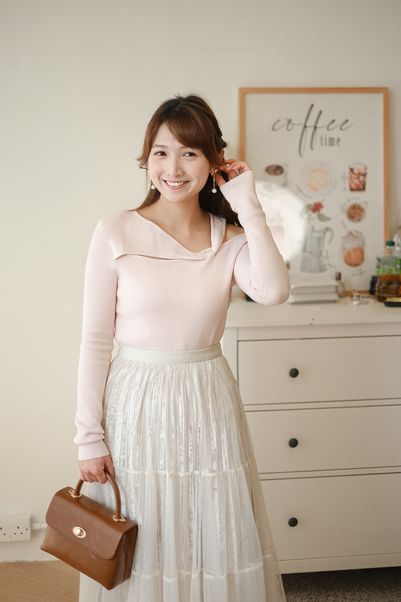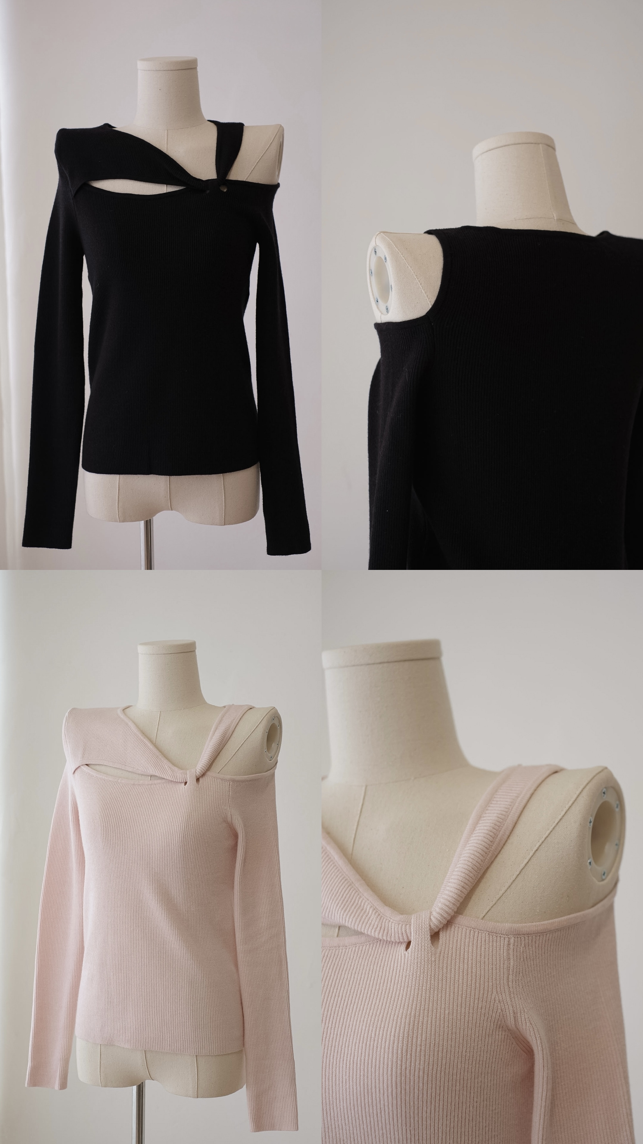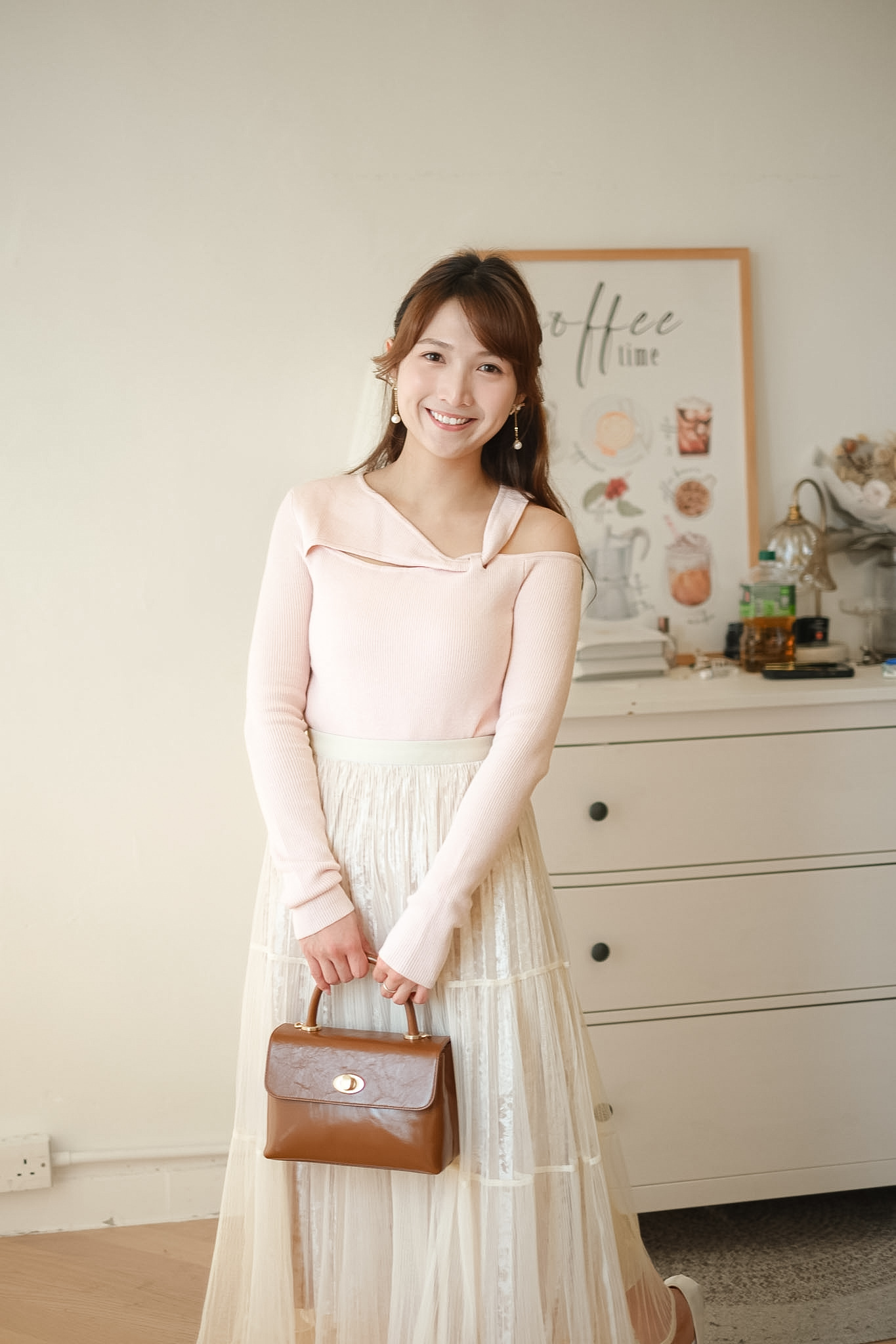 小性感露肩彈性上衣 (淡粉/黑) Top605