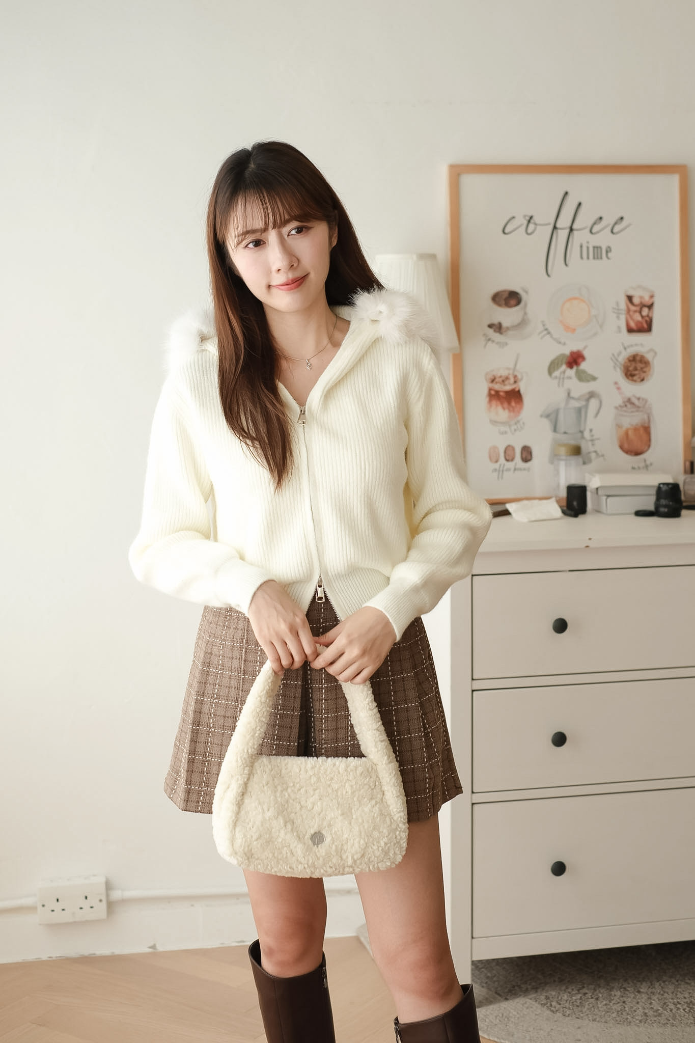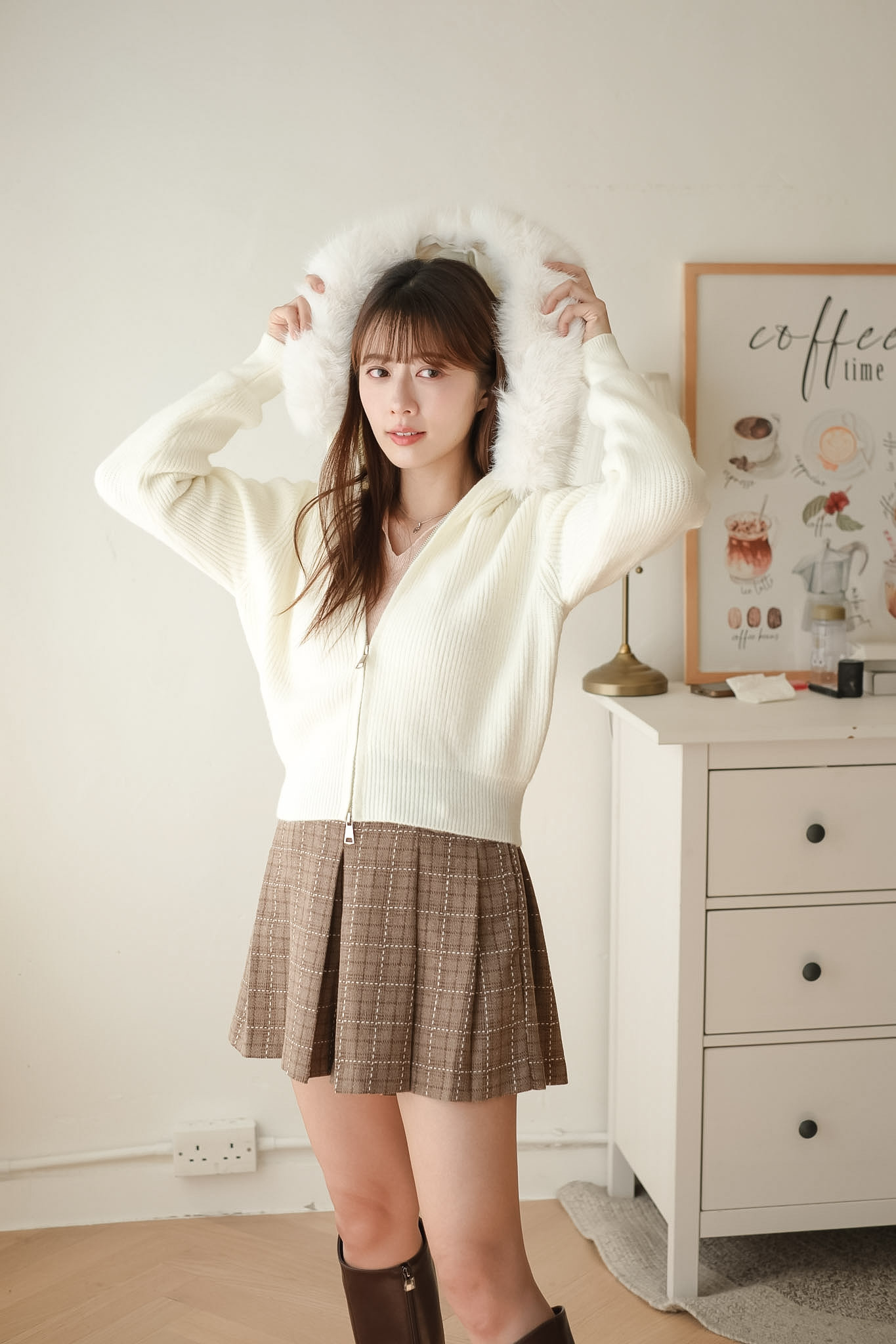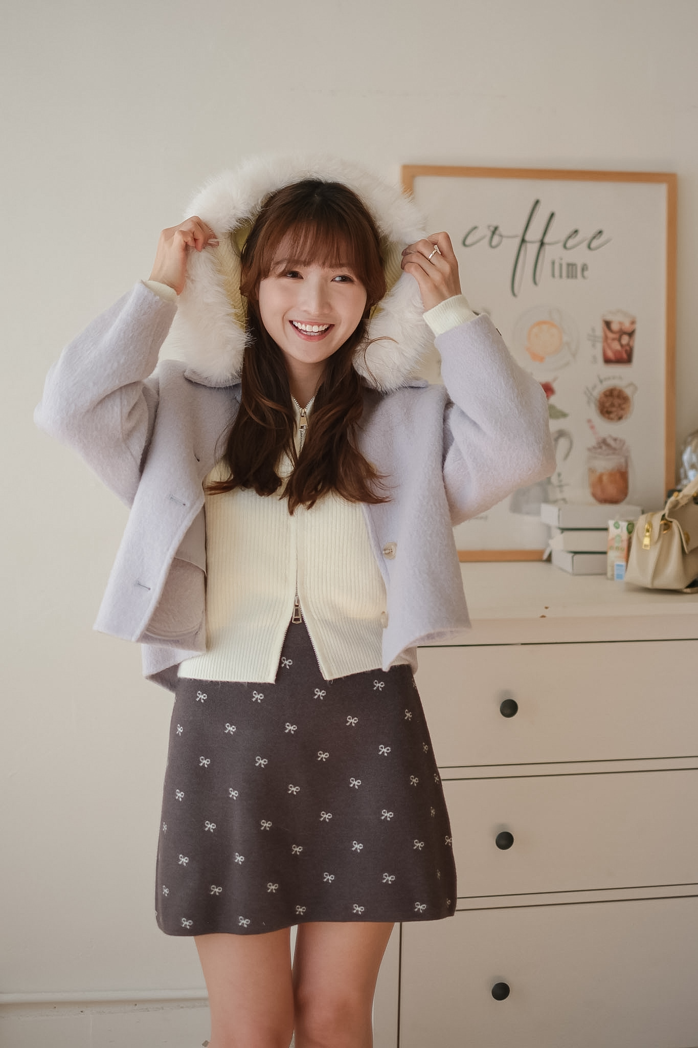 超浪漫毛毛針織拉鏈外套 (米白/淺灰) Top607