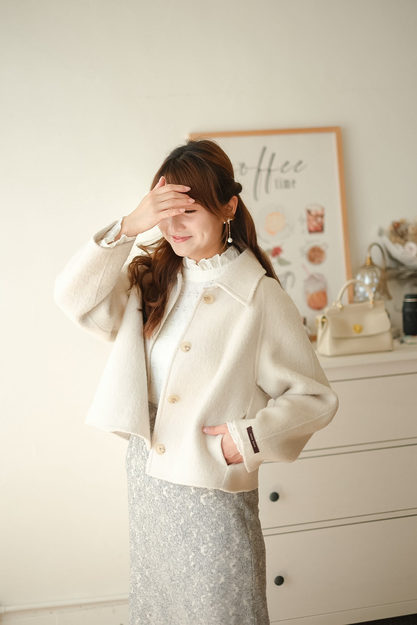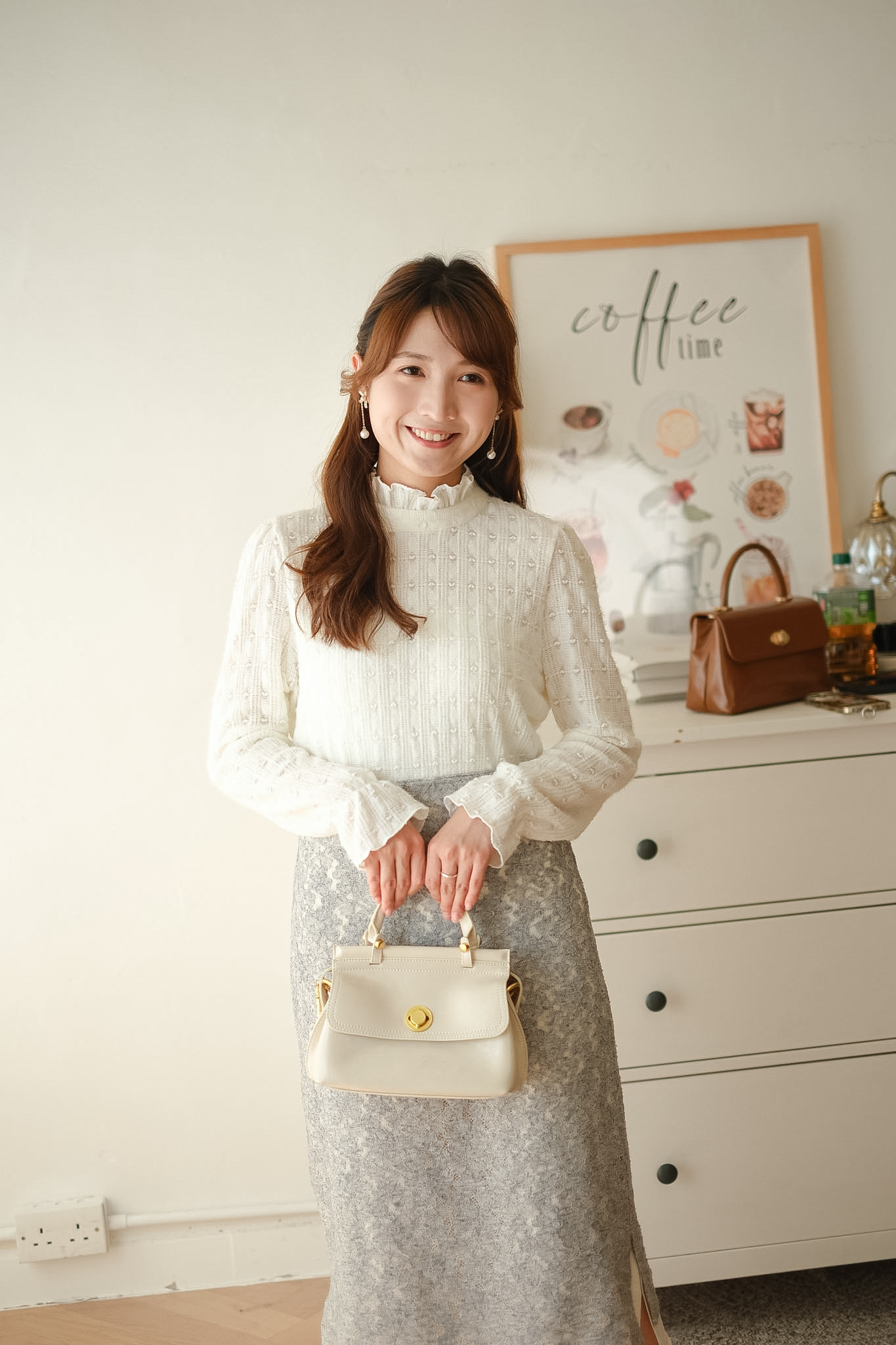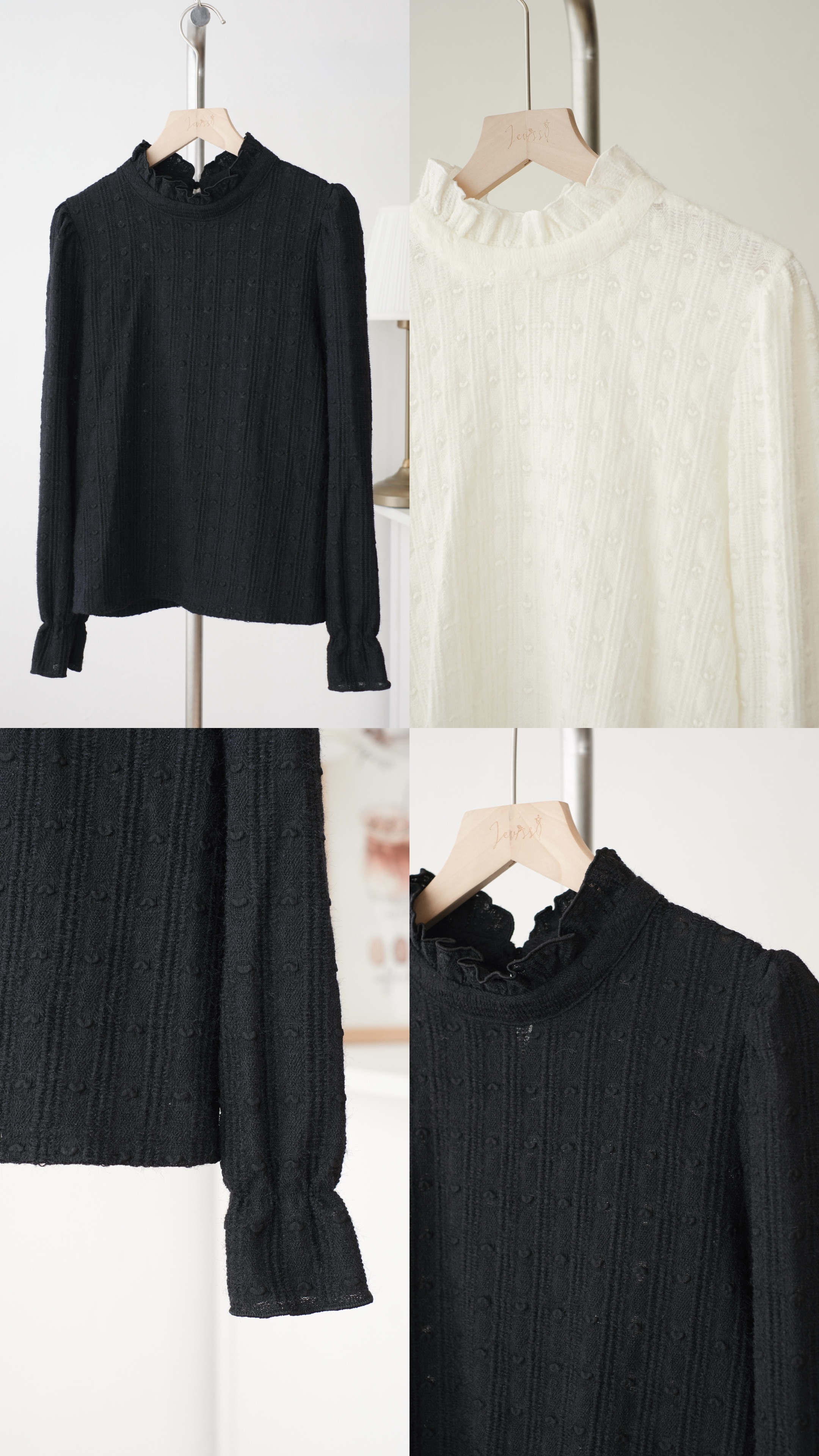 Ruffle小立領暗紋上衣 (米白/黑) Top608