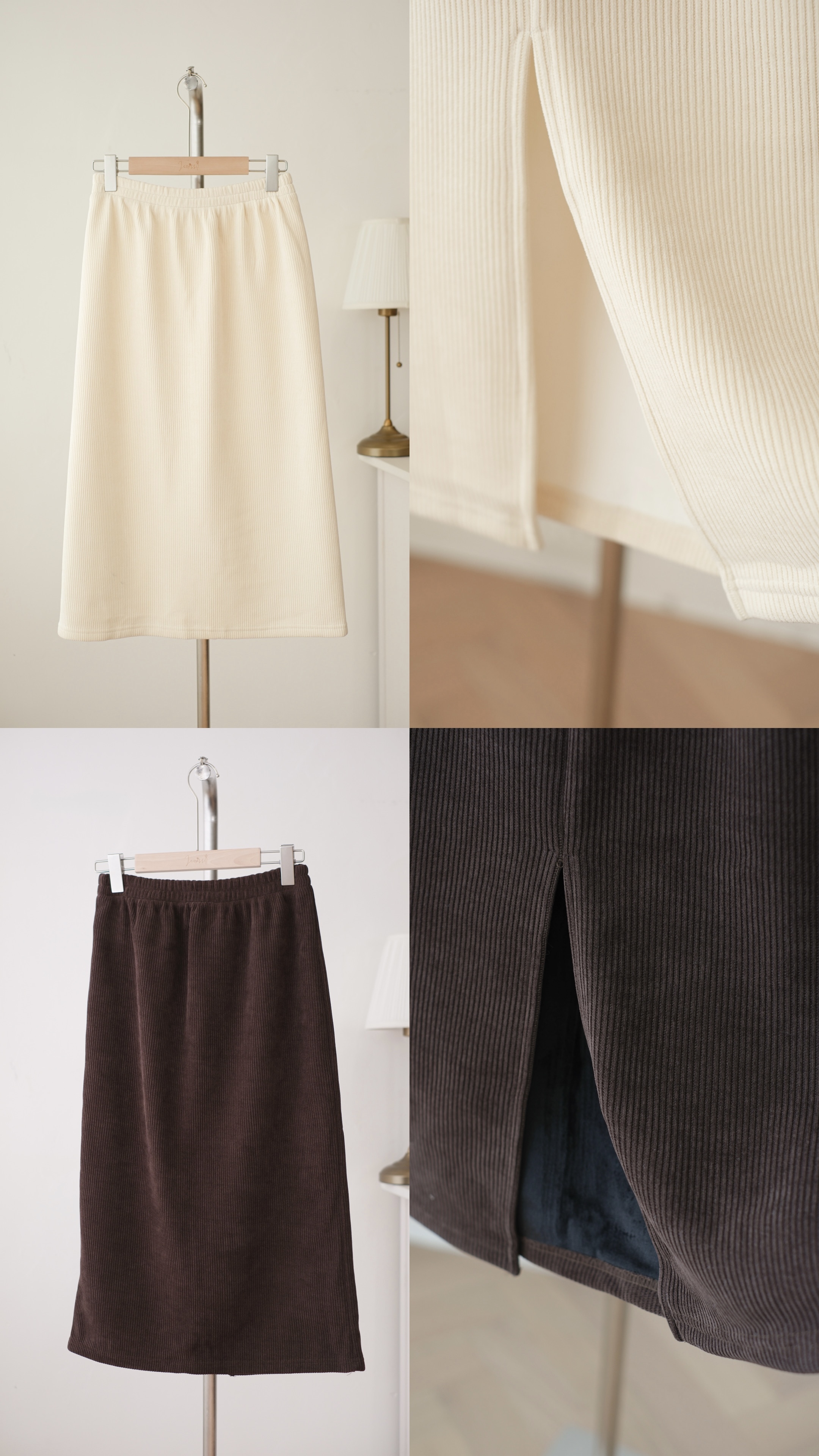 燈芯絨款!彈性腰後開叉半裙 (奶白/棕) BT450