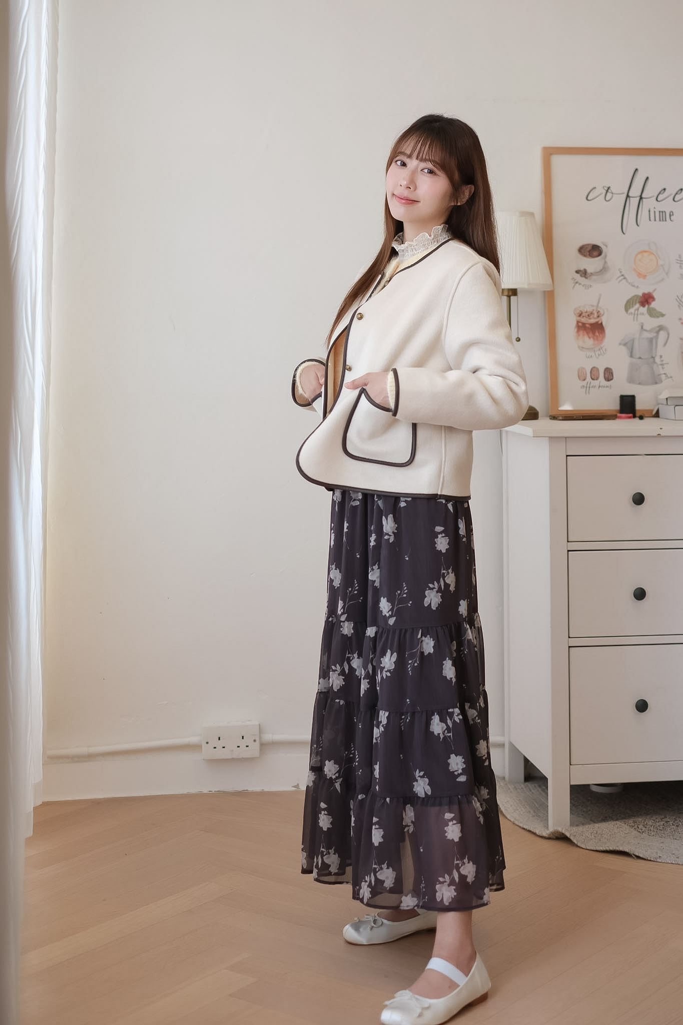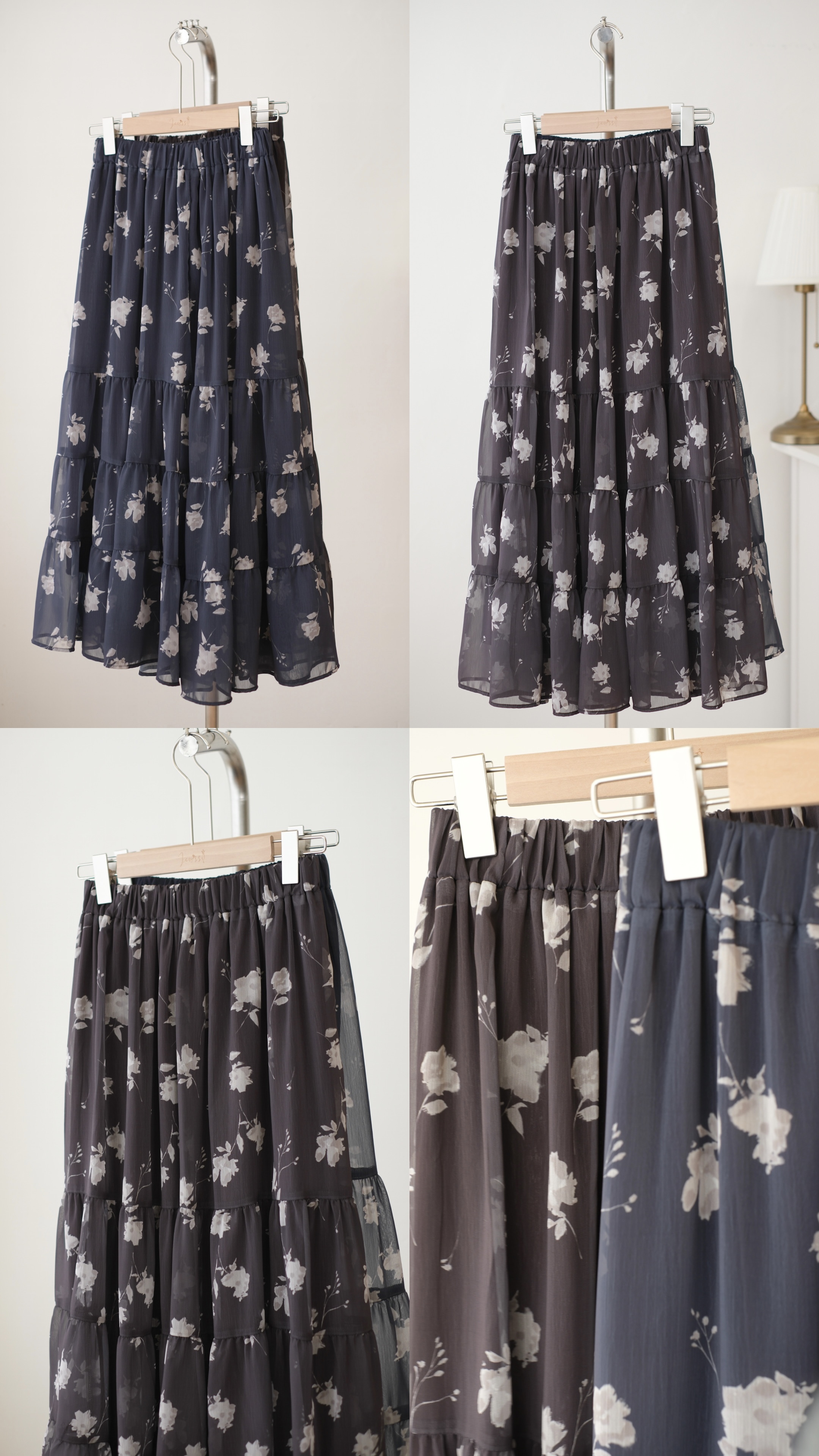 浪漫花朵層次雪紡半裙 (深棕/灰黑) BT451