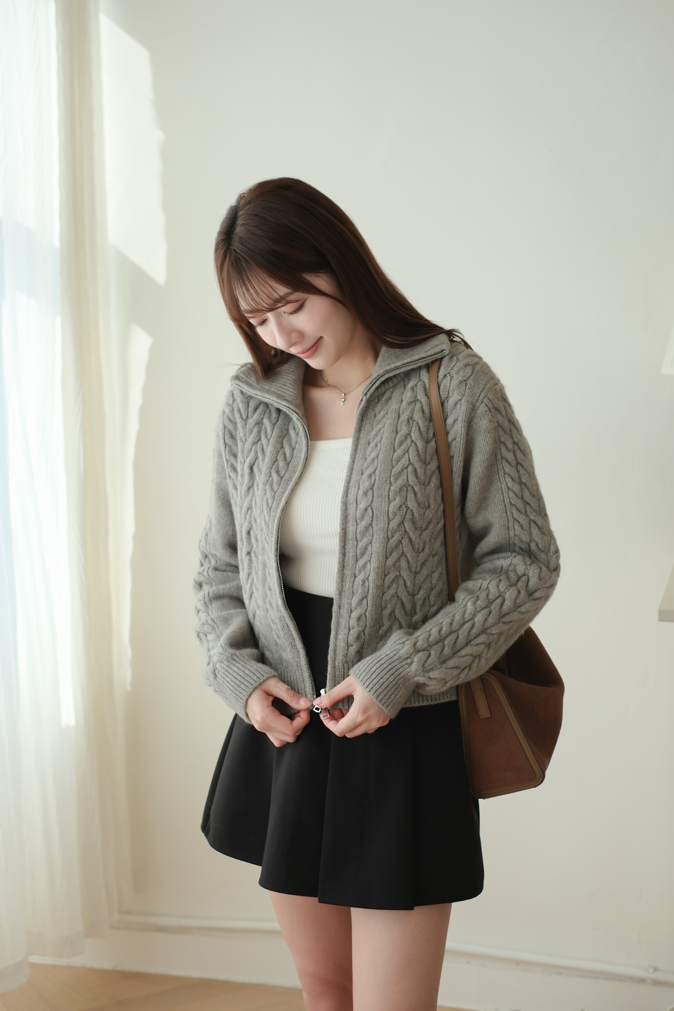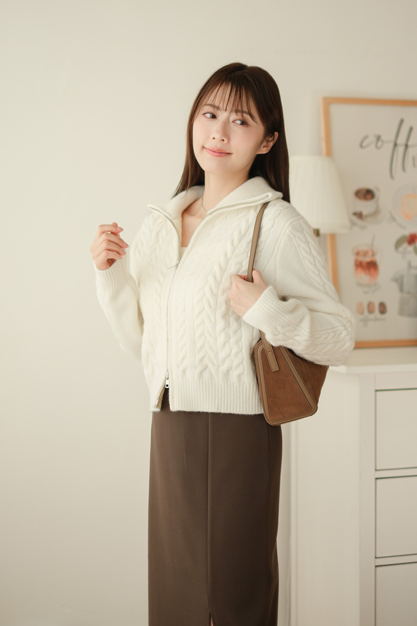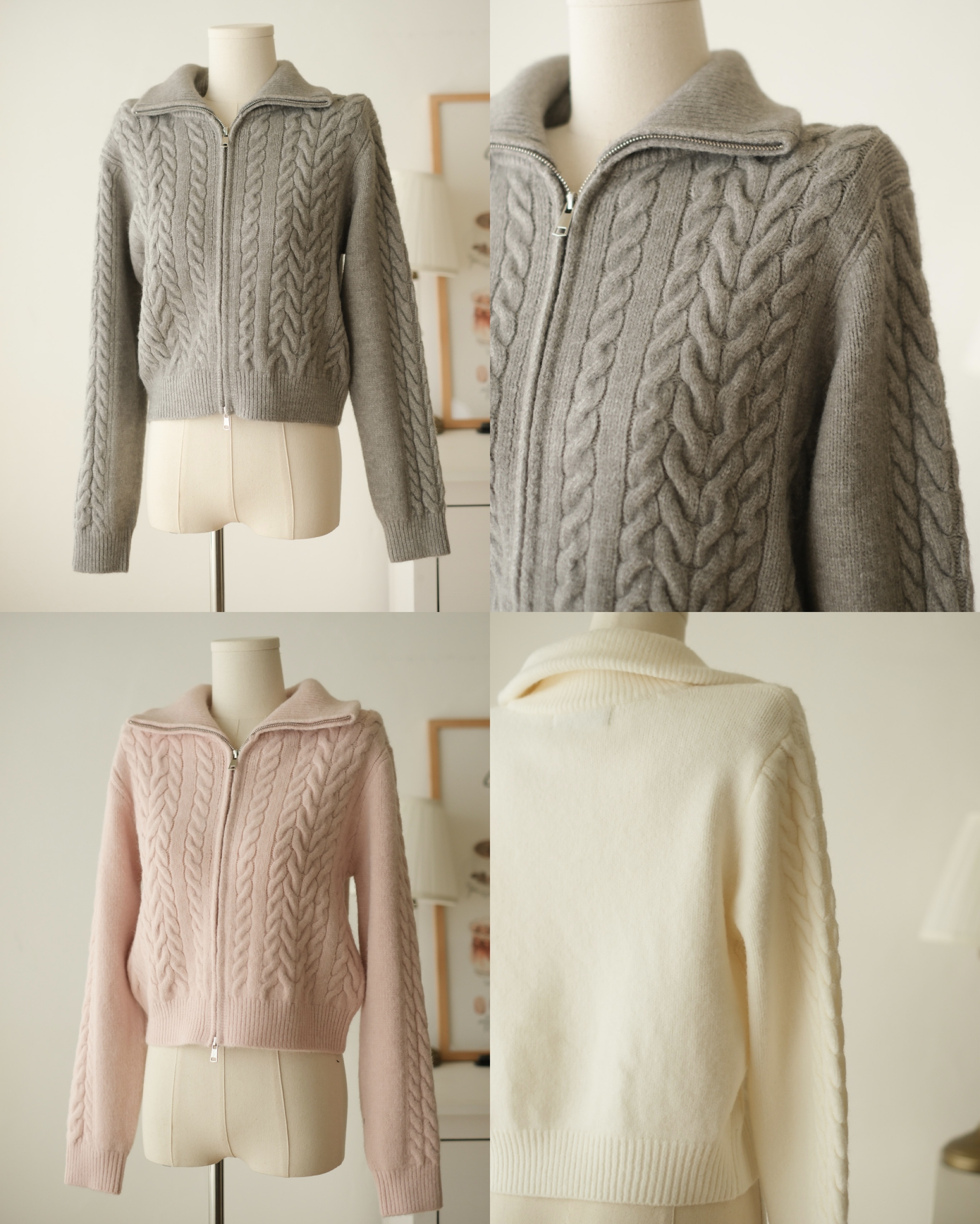 大反領麻花雙拉鍊針織外套 (米白/淡粉/灰) TOP617
