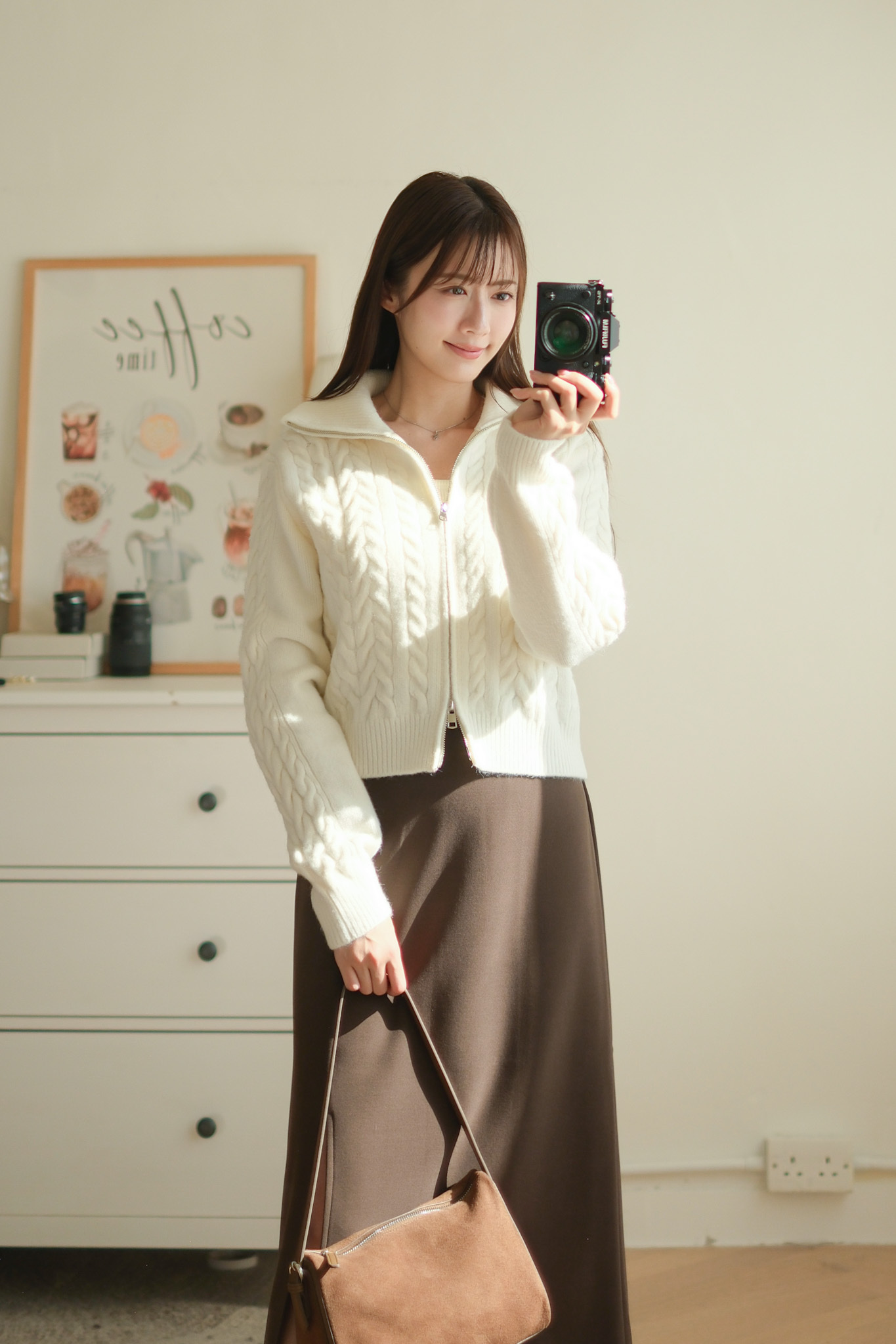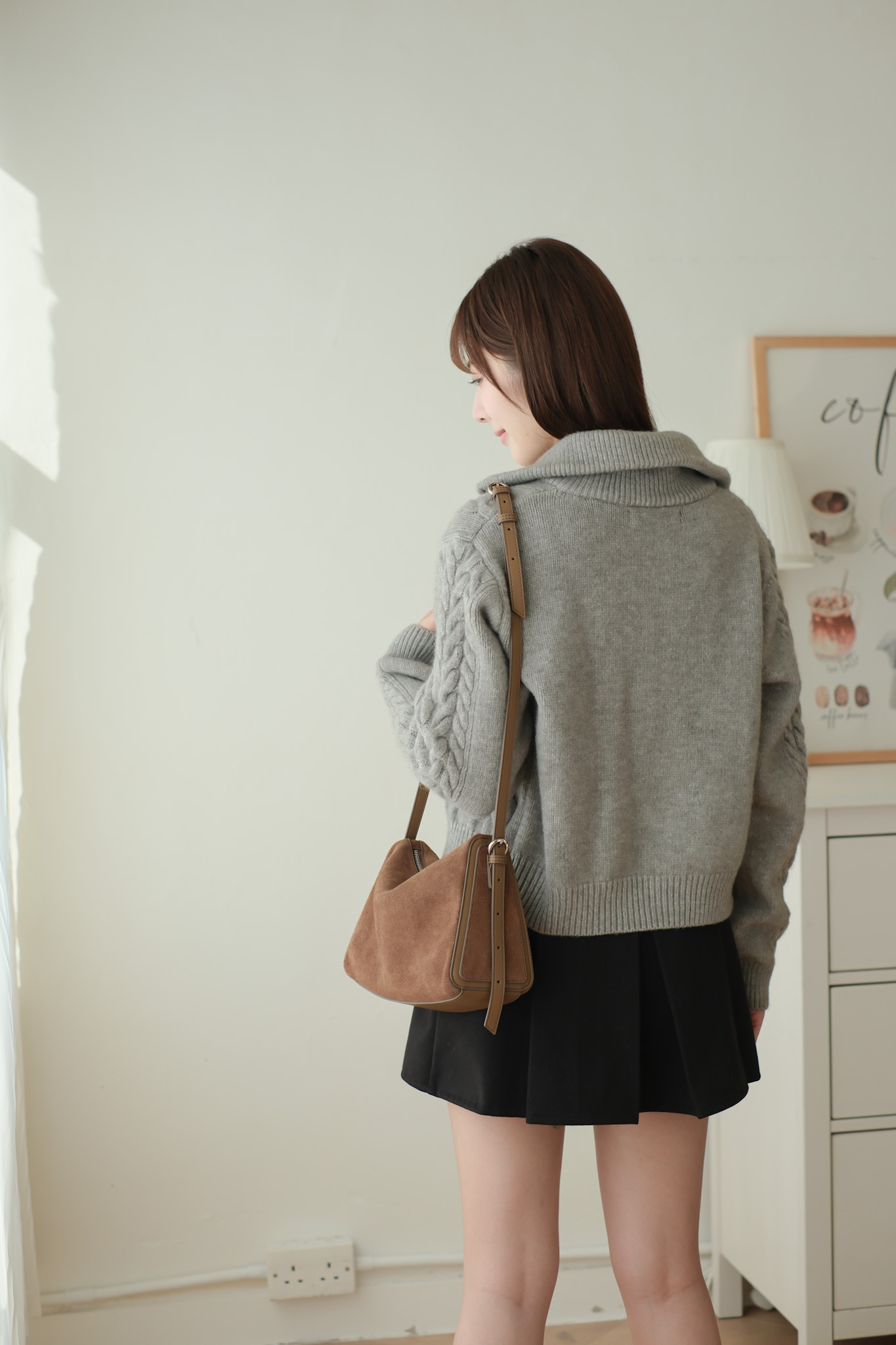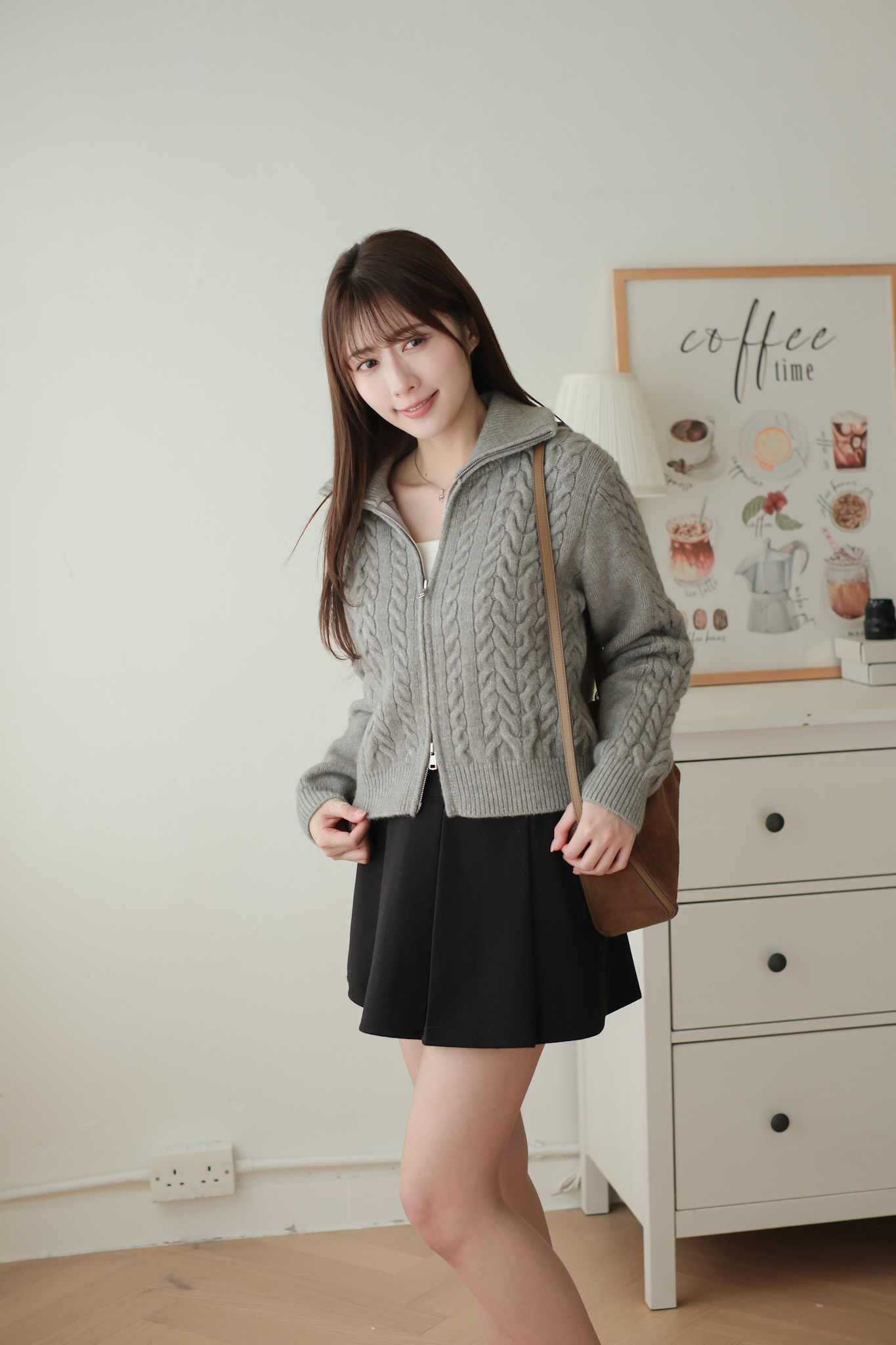 大反領麻花雙拉鍊針織外套 (米白/淡粉/灰) TOP617