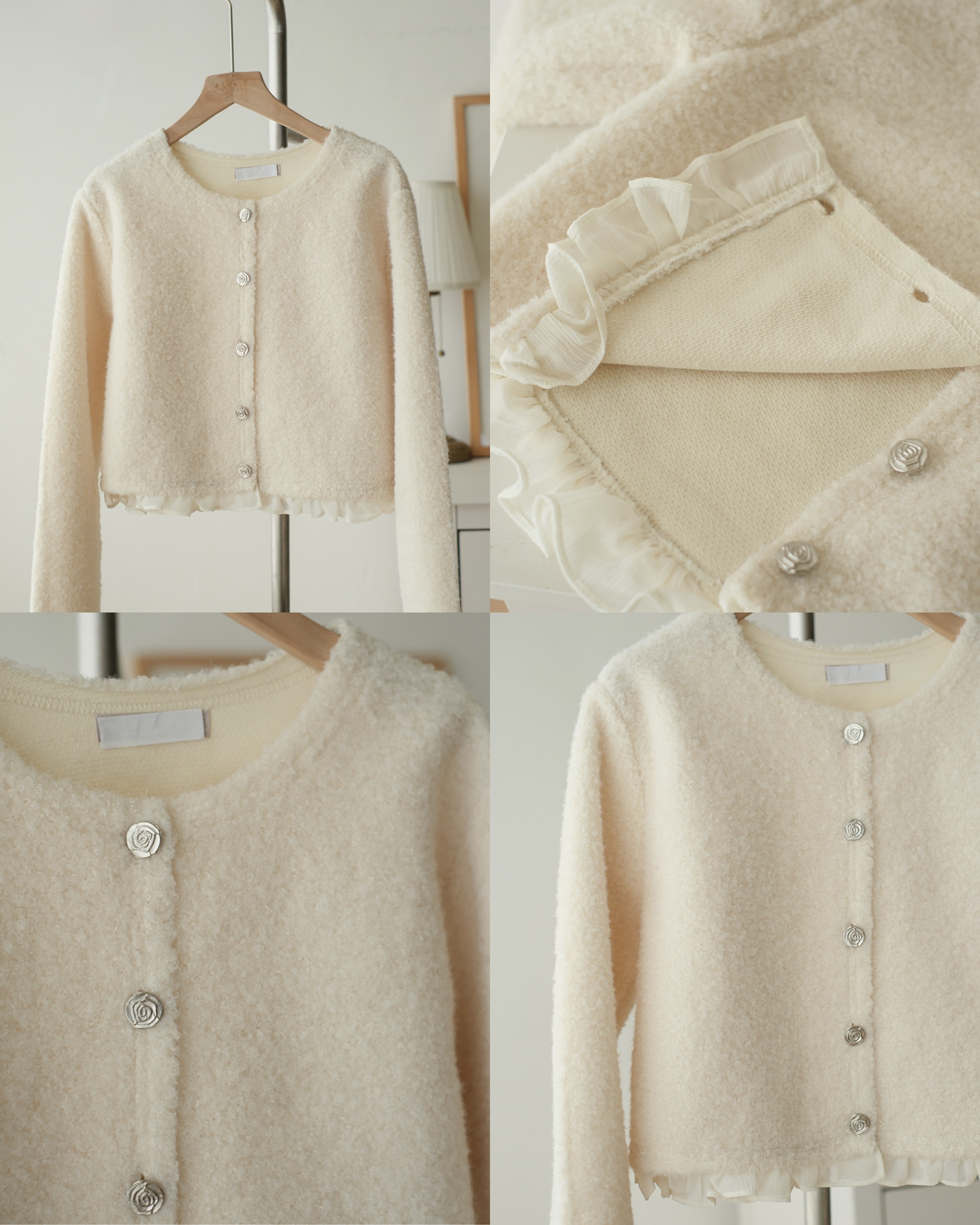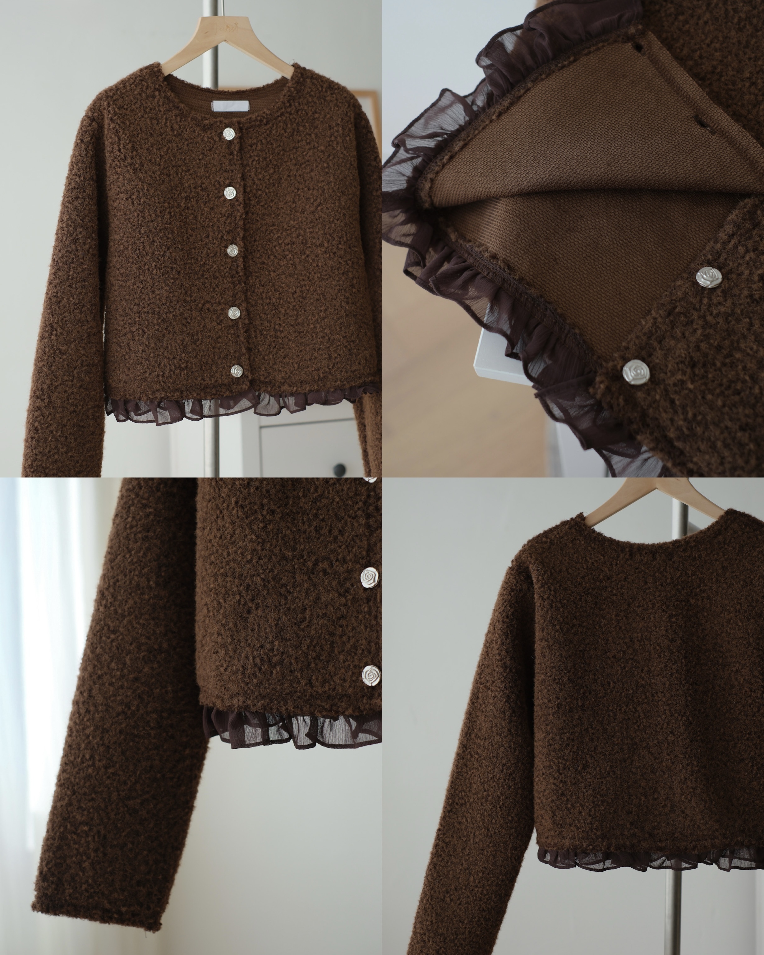 Ruffle拼接短版小外套 (米白/棕) TOP626