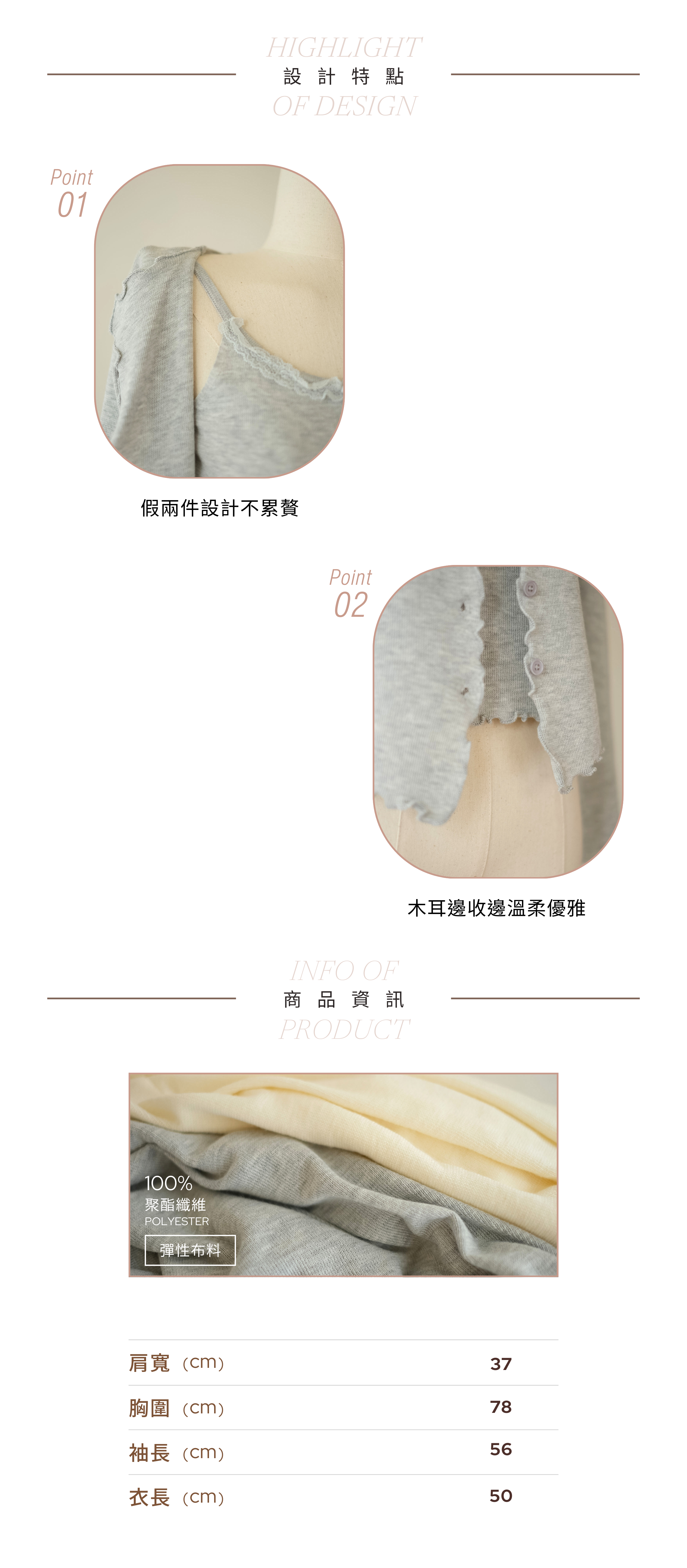 波浪木耳邊修身針織假兩件 (奶白/淺灰) TOP655