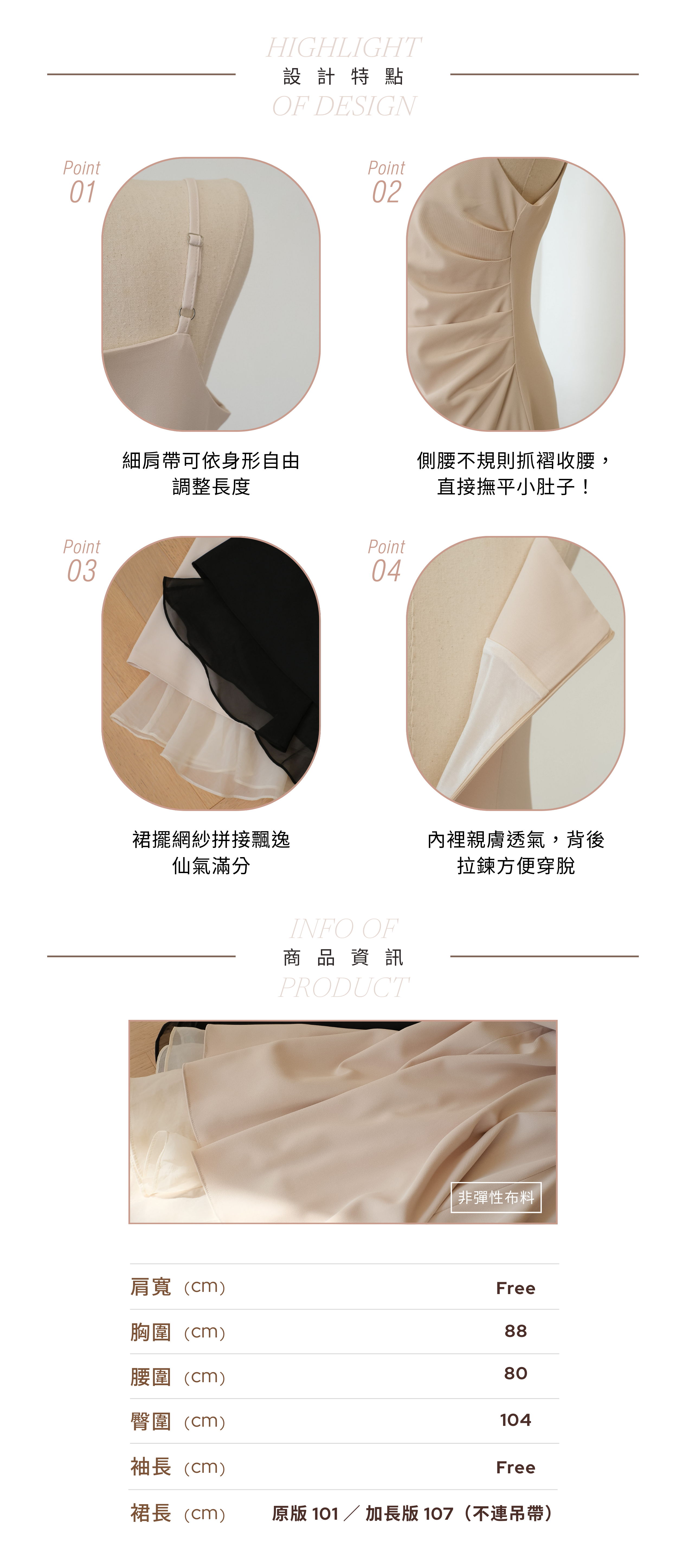 超收腰!拼紗側褶皺細肩帶洋裝 (淺杏/黑) OPS208