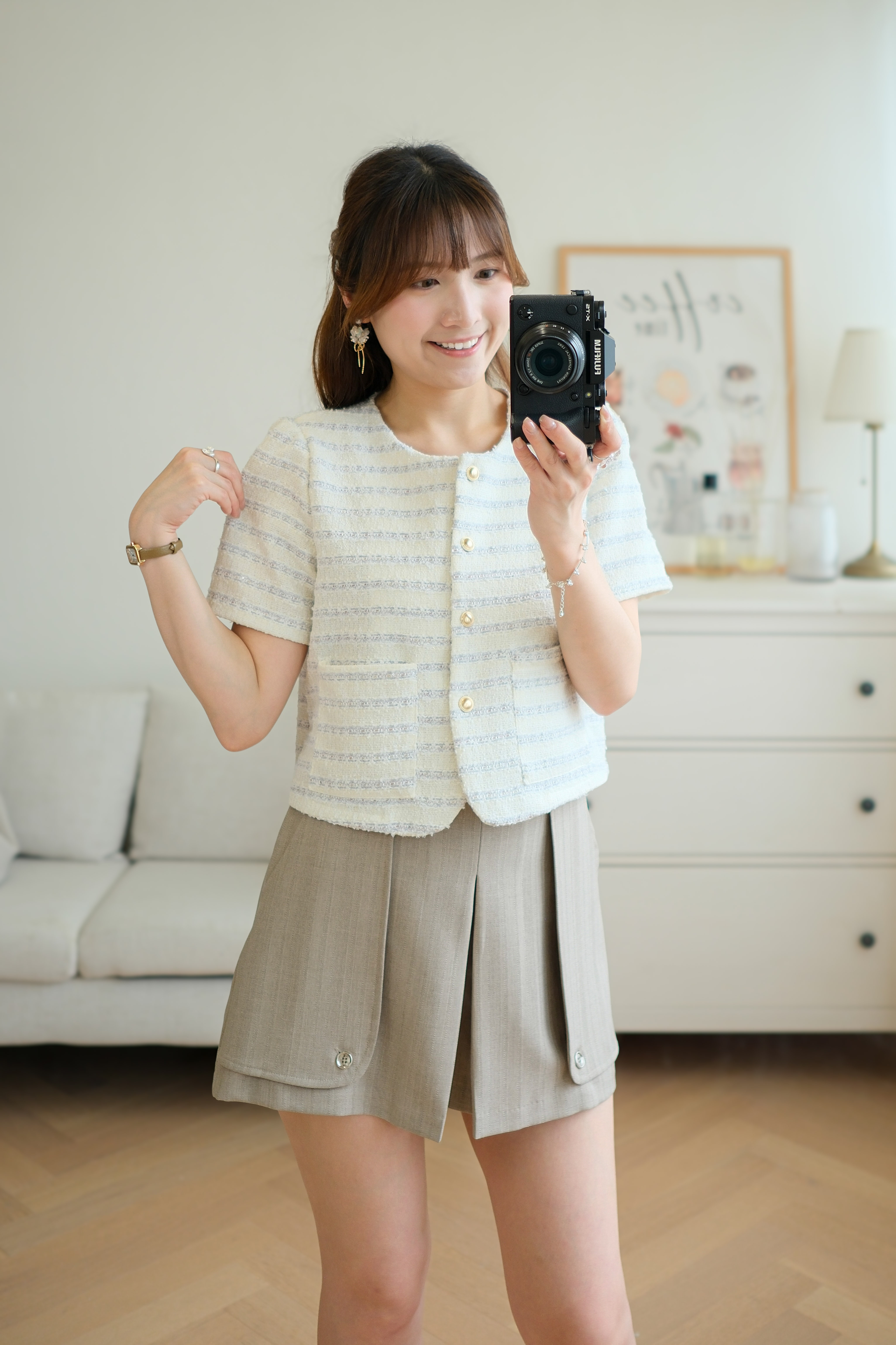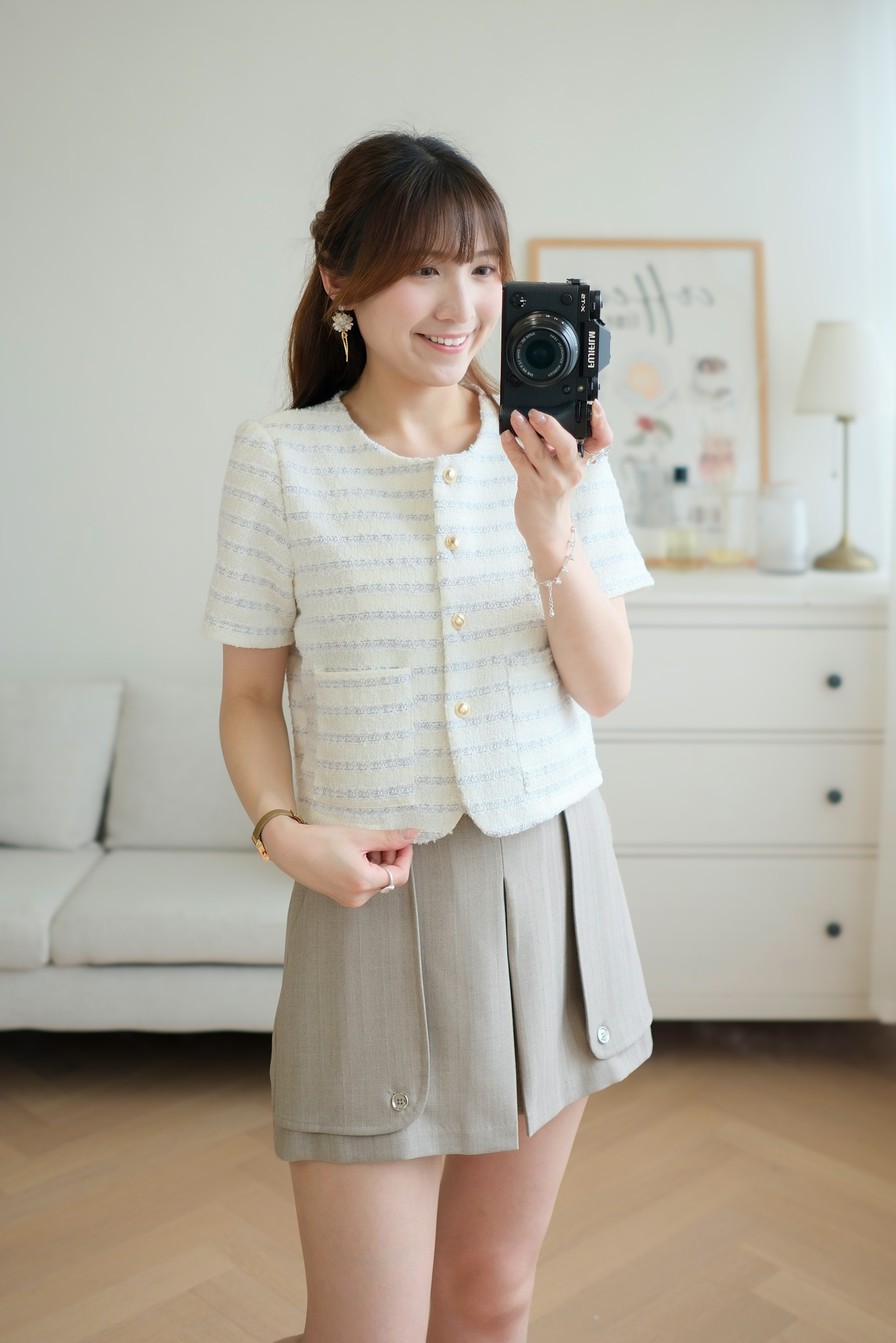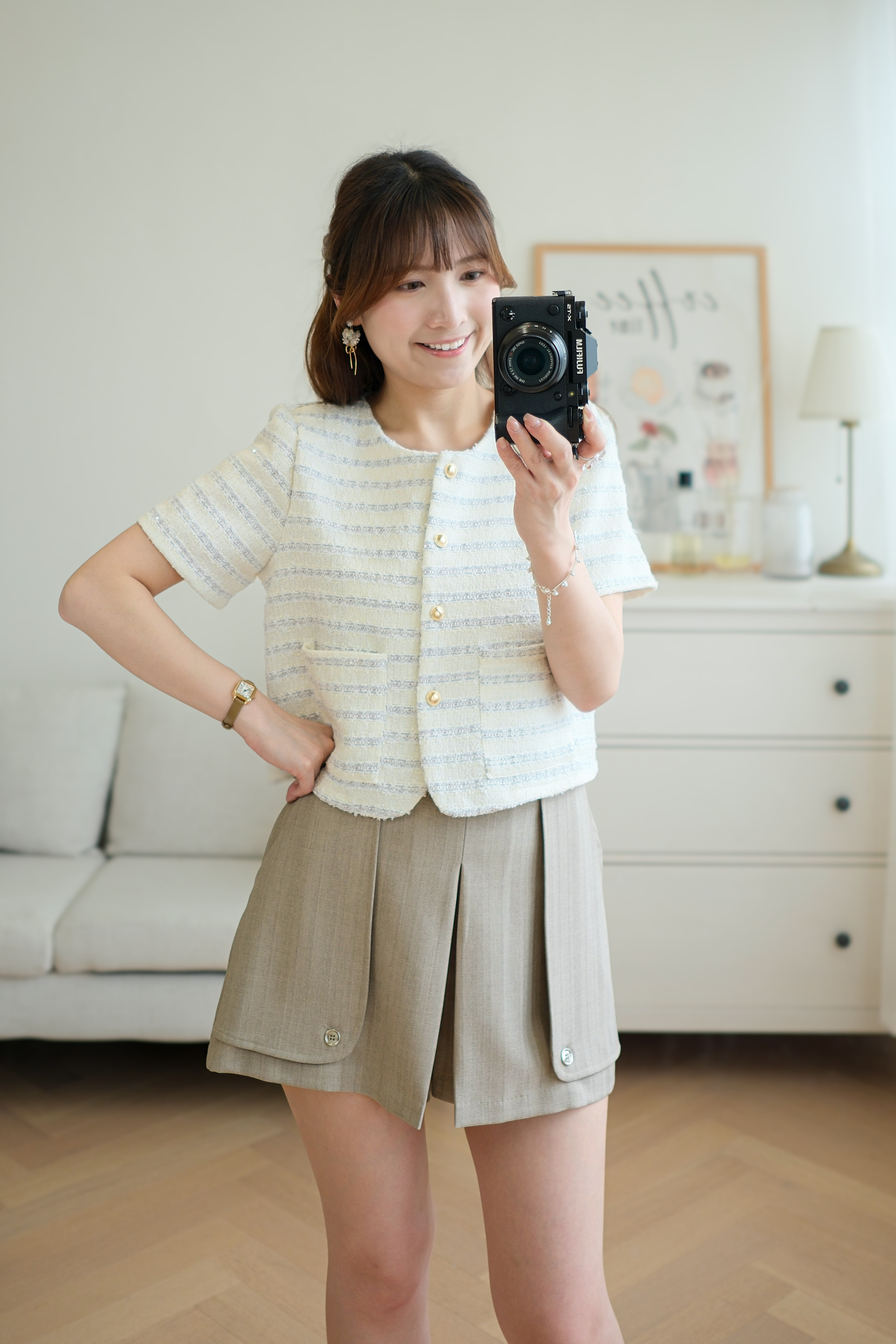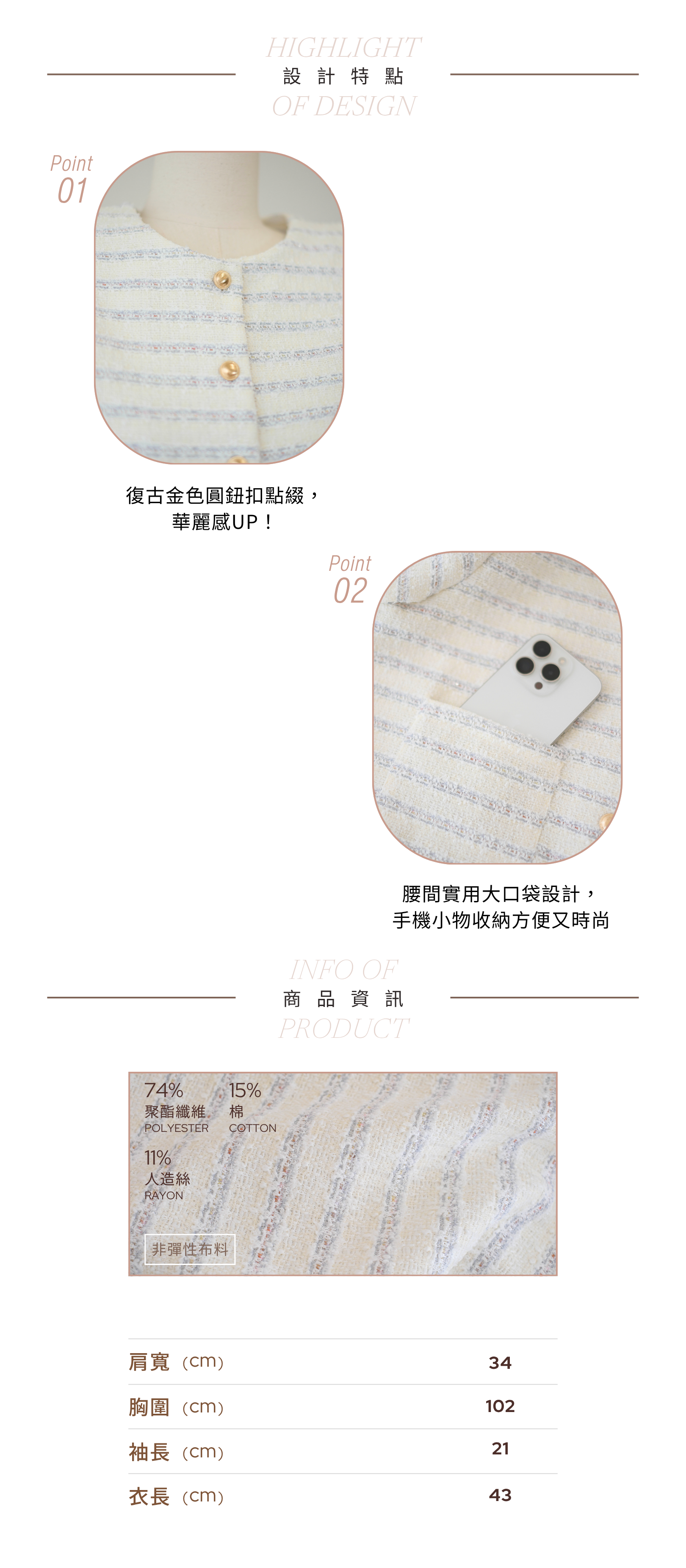 版形靚!經典條紋粗花呢金釦上衣 TOP684