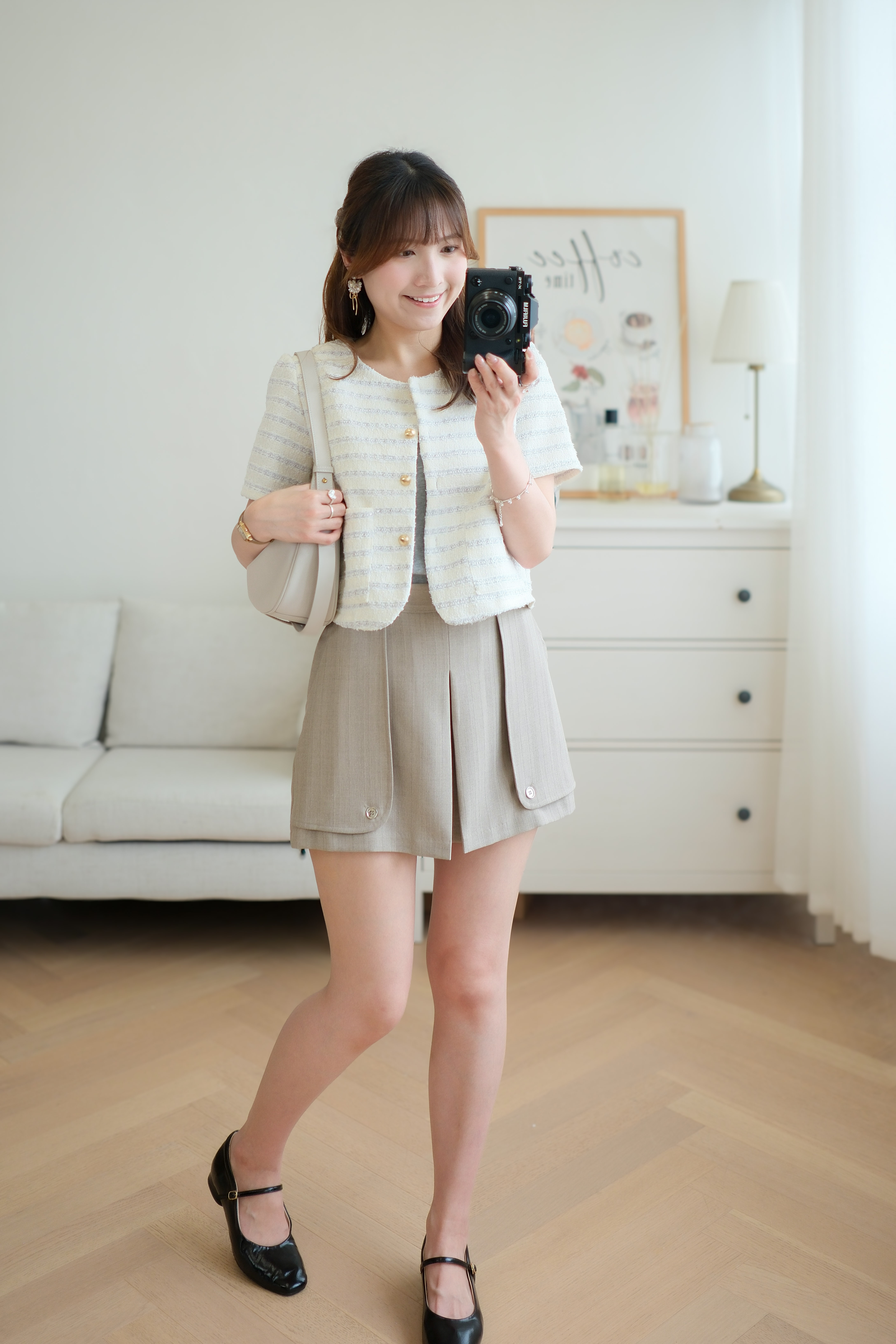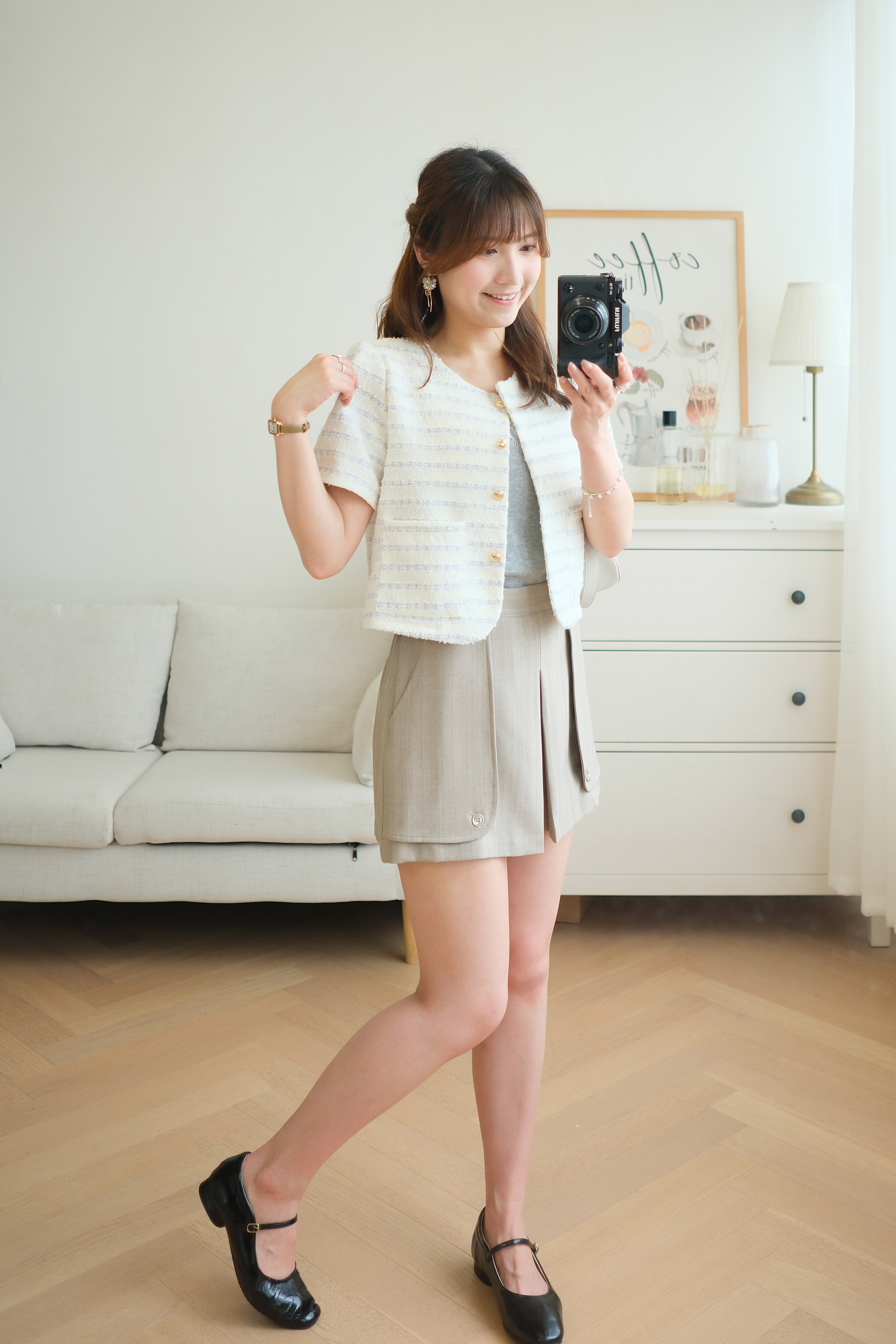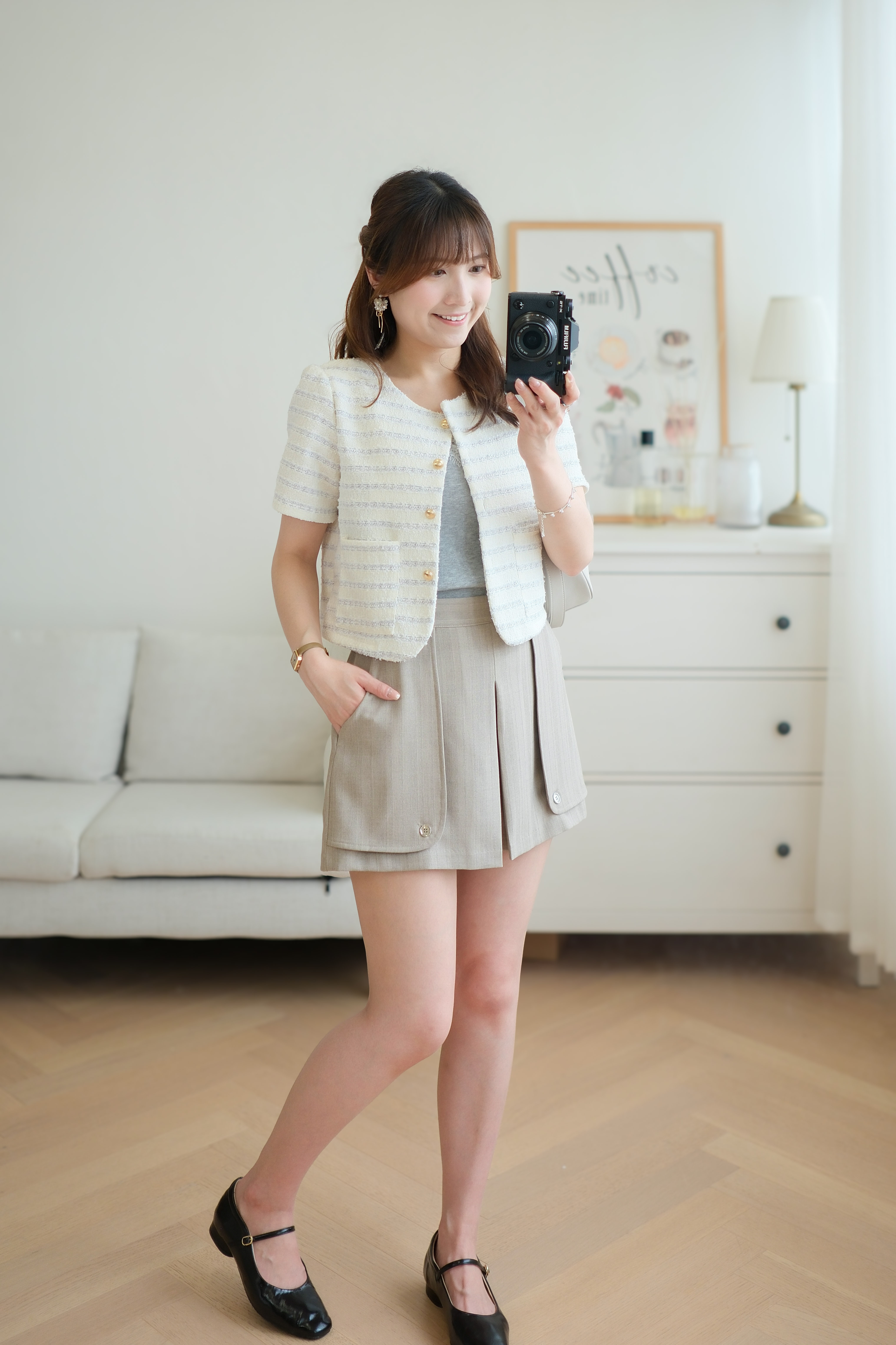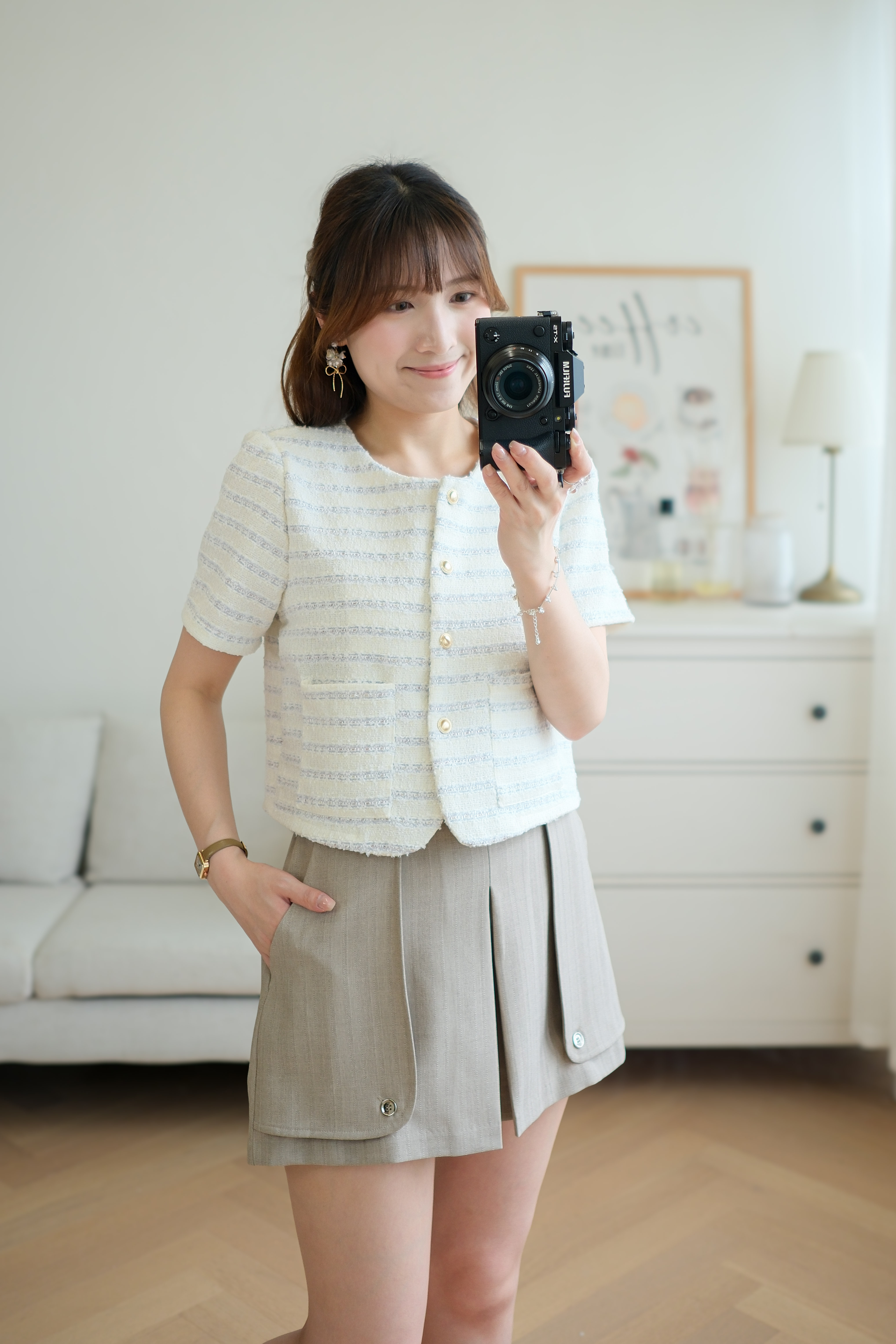 版形靚!經典條紋粗花呢金釦上衣 TOP684