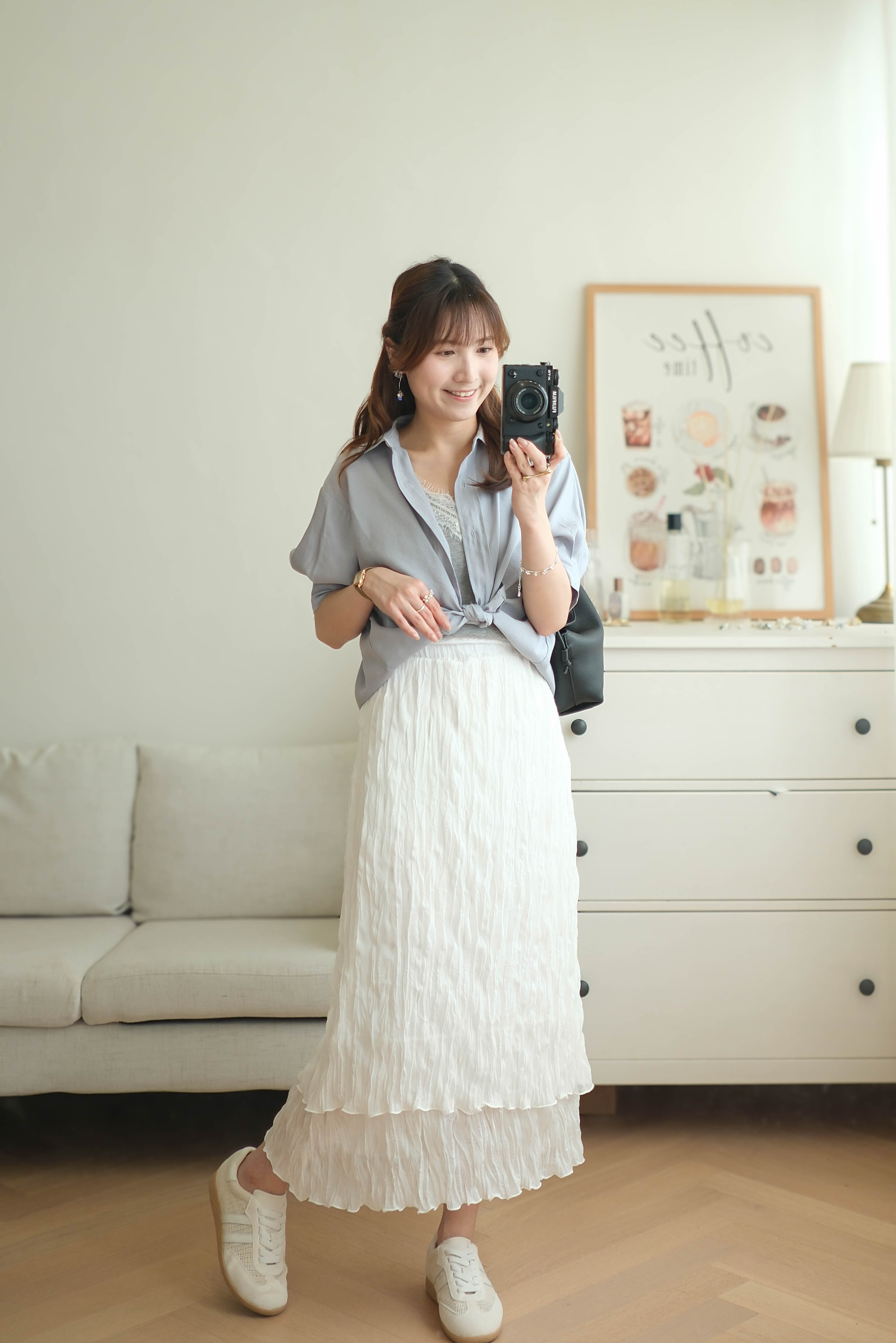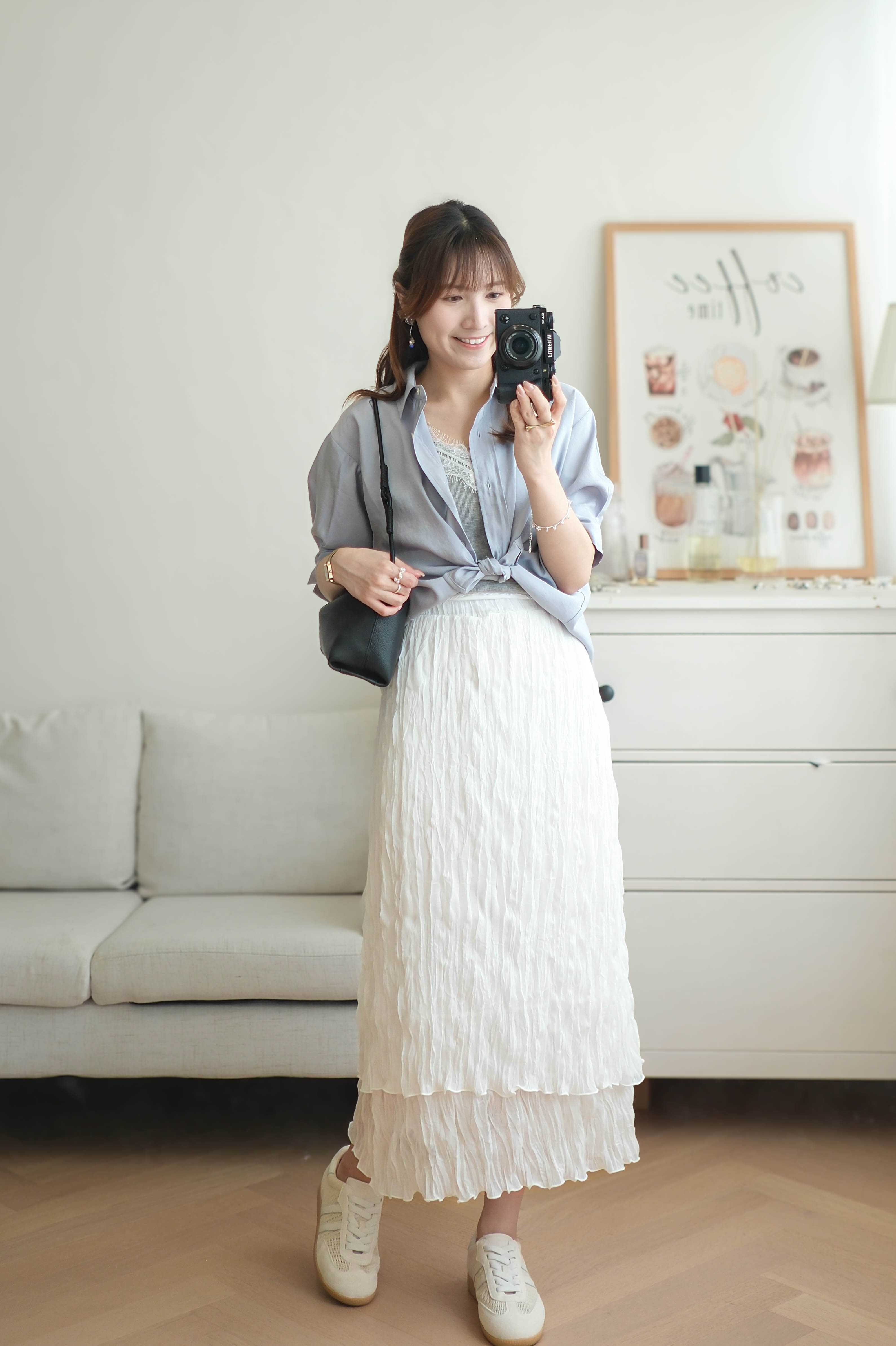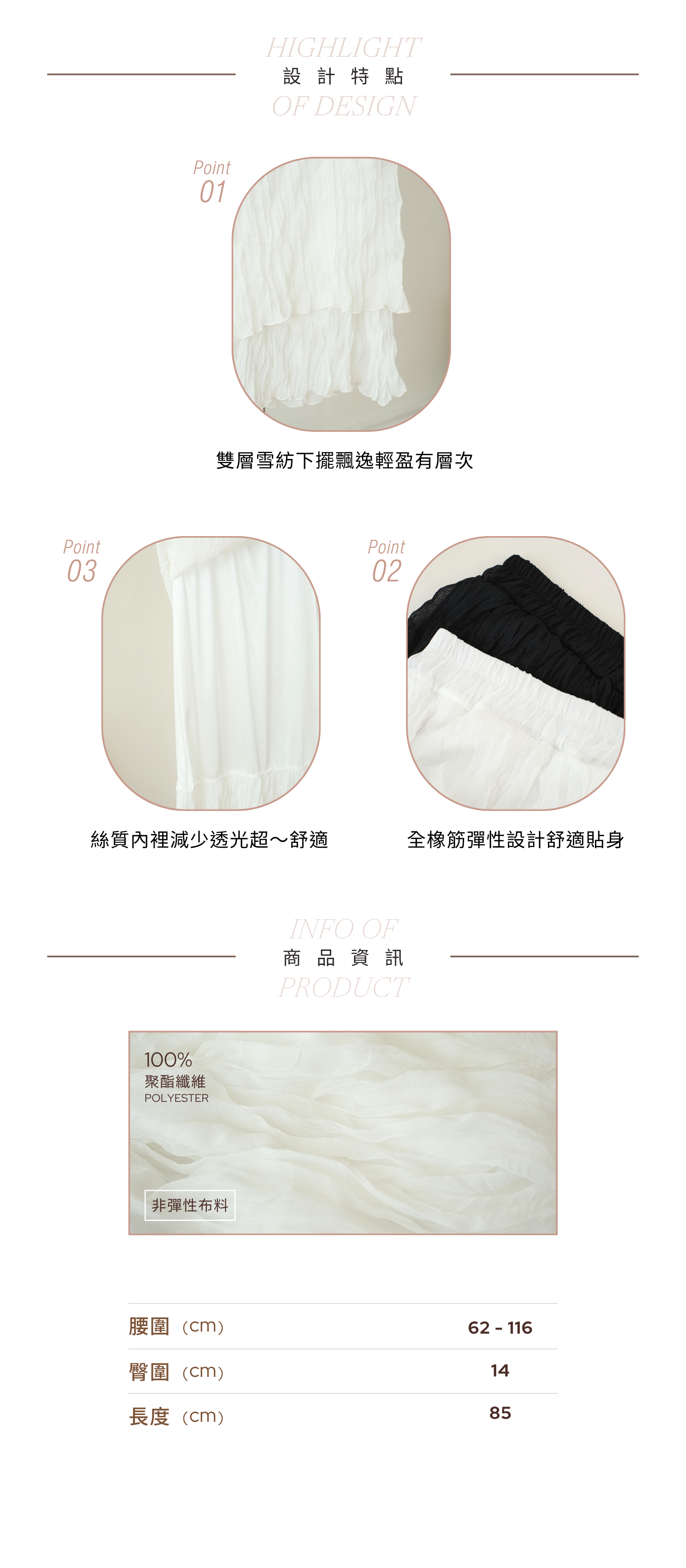 百搭雙層輕盈皺皺雪紡裙 (純白/黑) BT476
