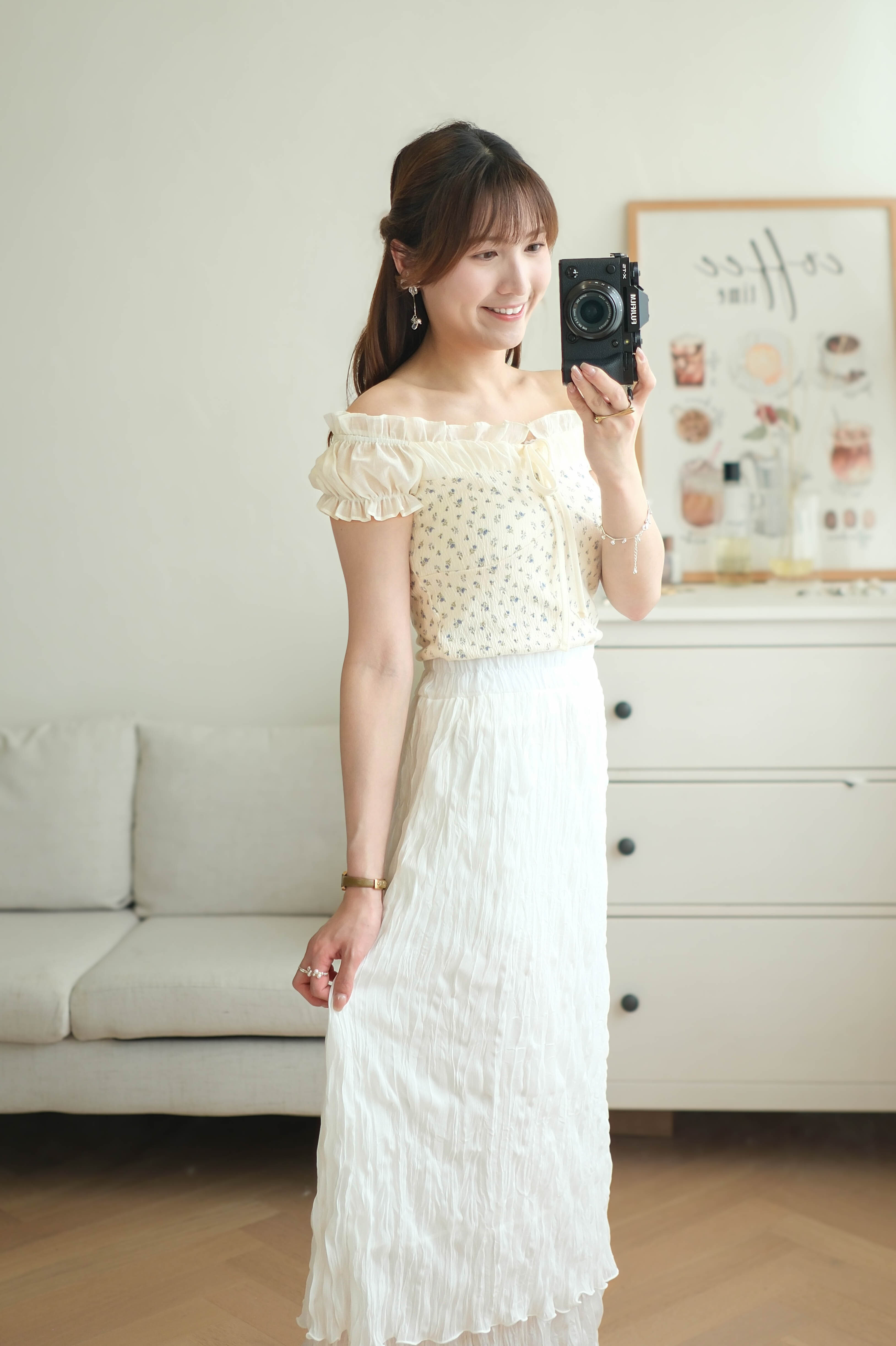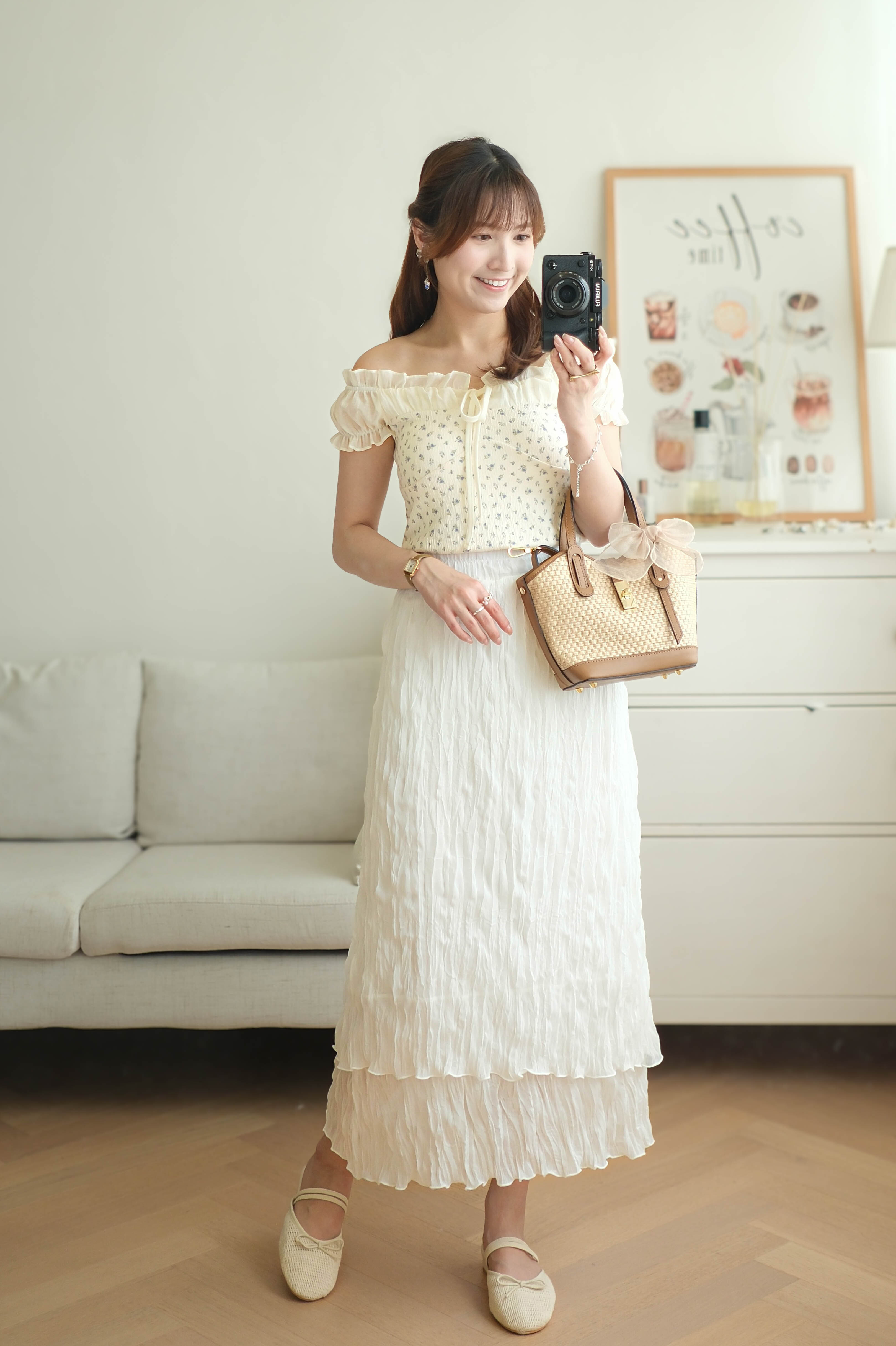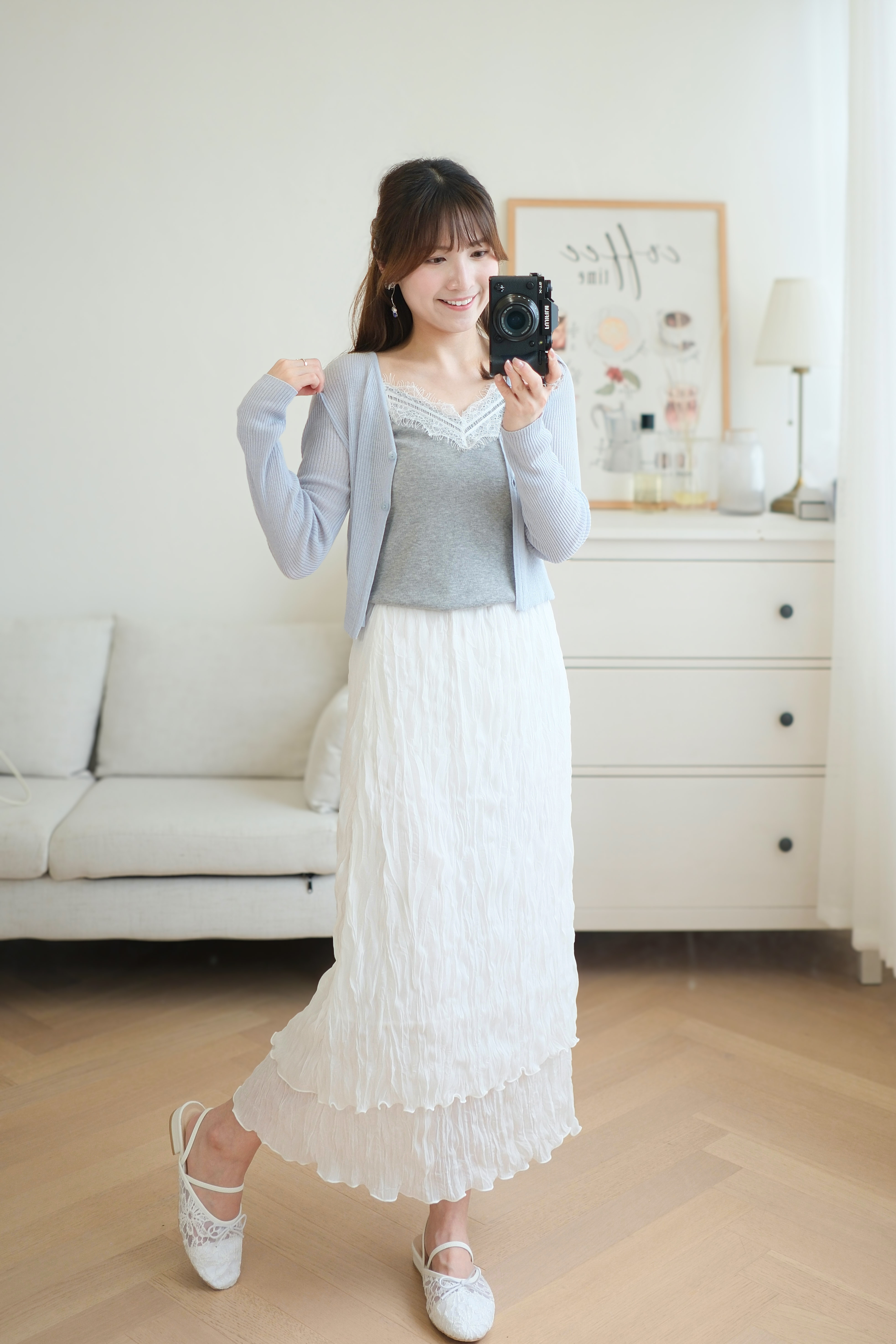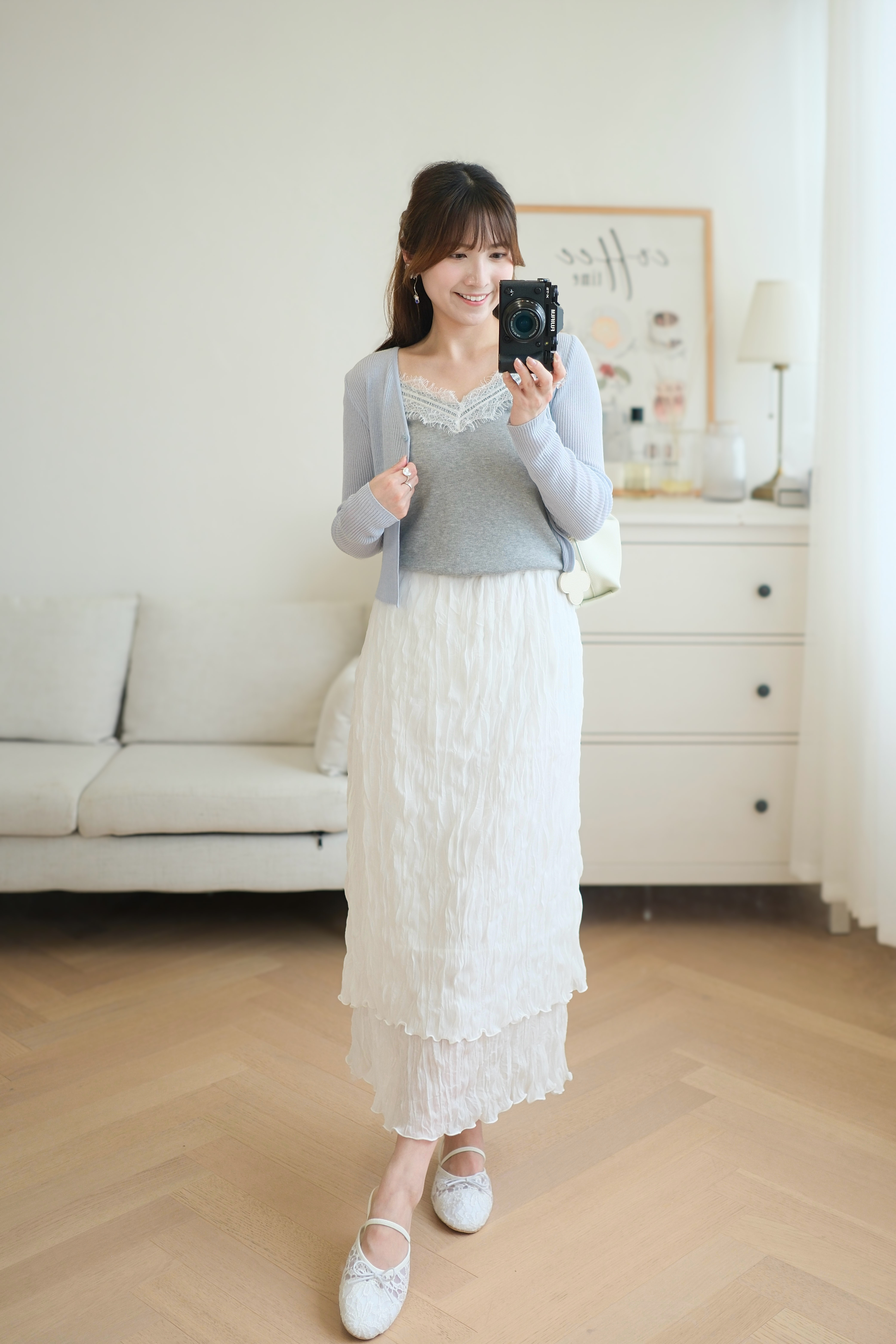 百搭雙層輕盈皺皺雪紡裙 (純白/黑) BT476