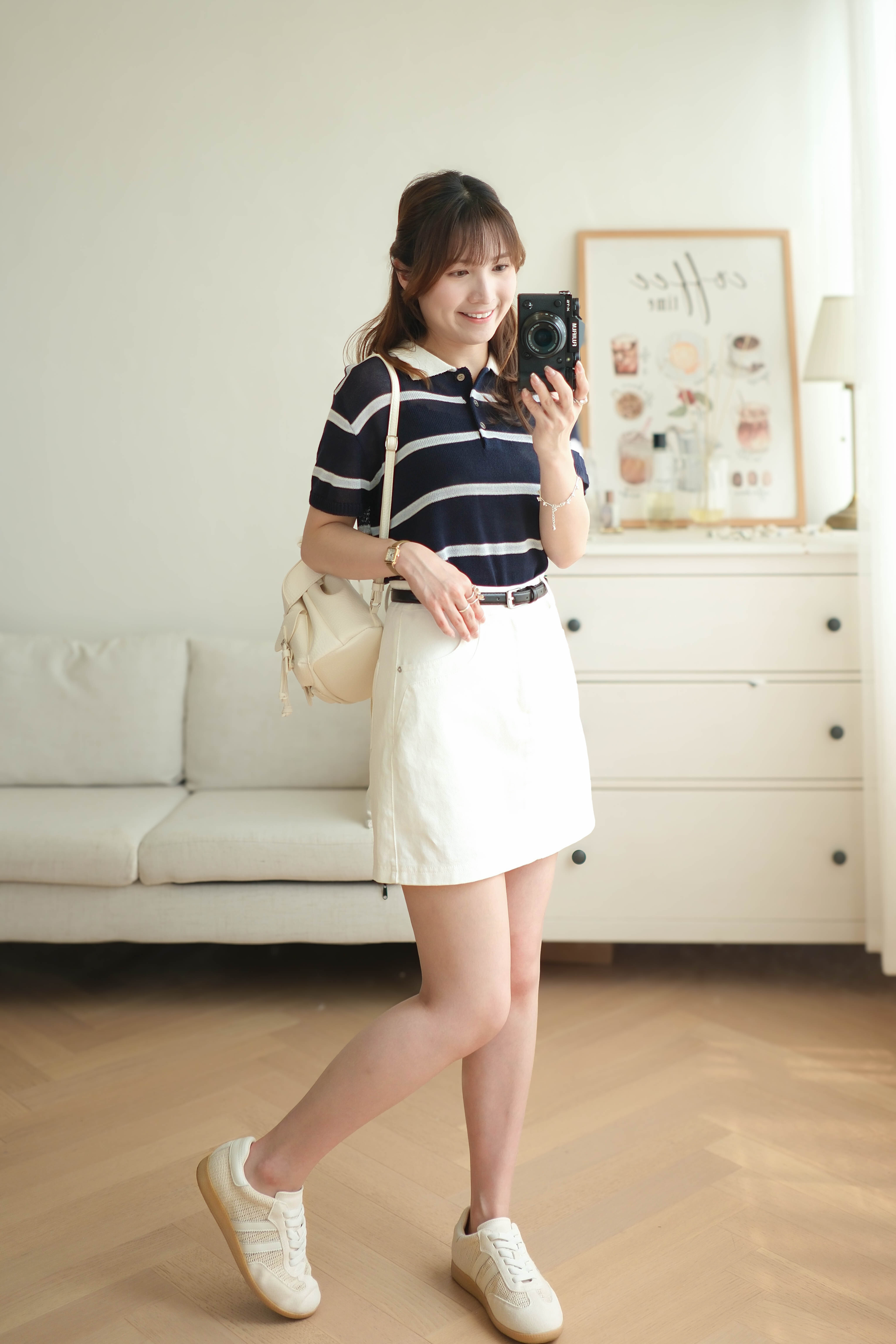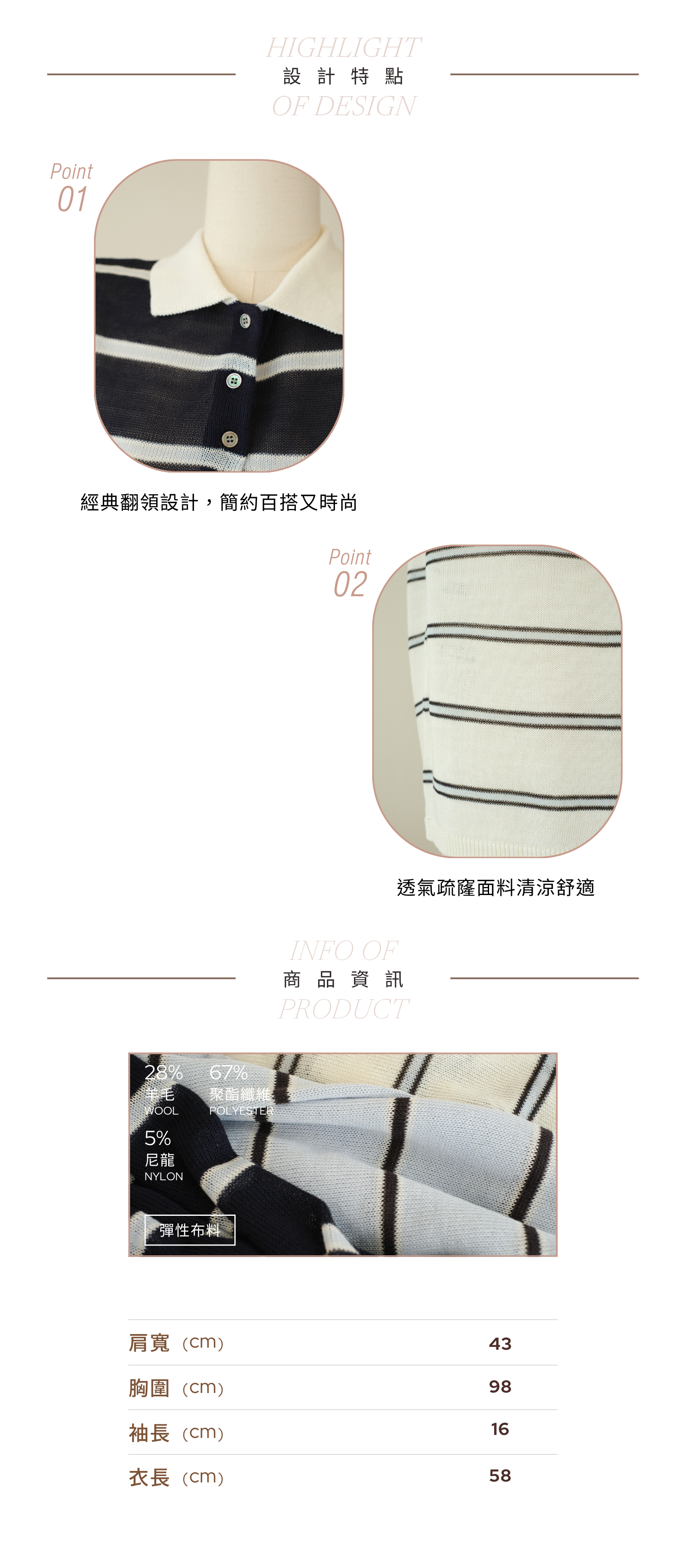 經典學院風!撞色Polo領清爽透氣上衣 (米白/天藍/深藍) TOP667